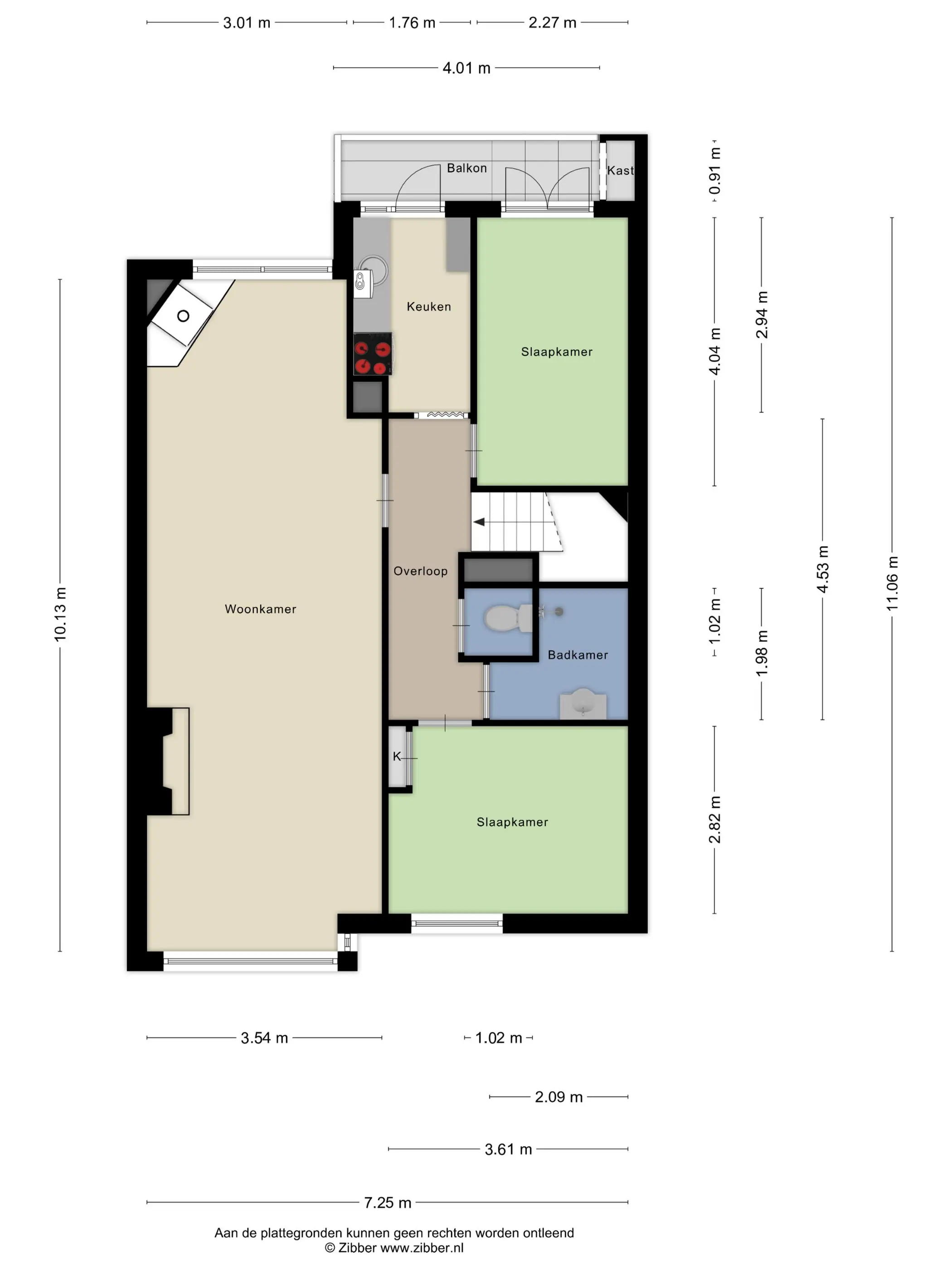Via de eigen voordeur op de eerste etage betreed je de woning, waarna een vaste trap je brengt naar de tweede verdieping, waar het appartement zich bevindt. Je komt binnen in een ruime hal die toegang geeft tot alle vertrekken.