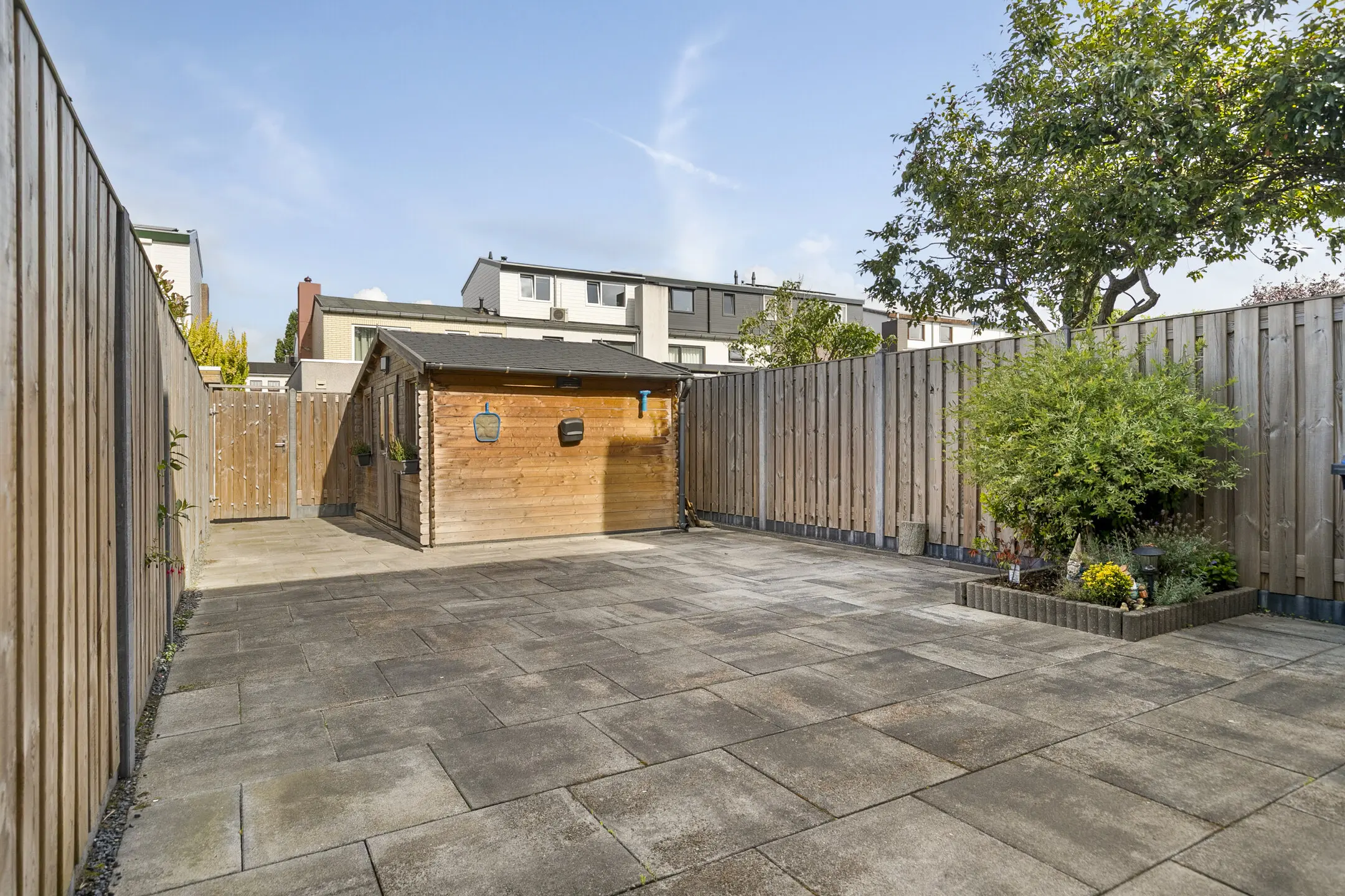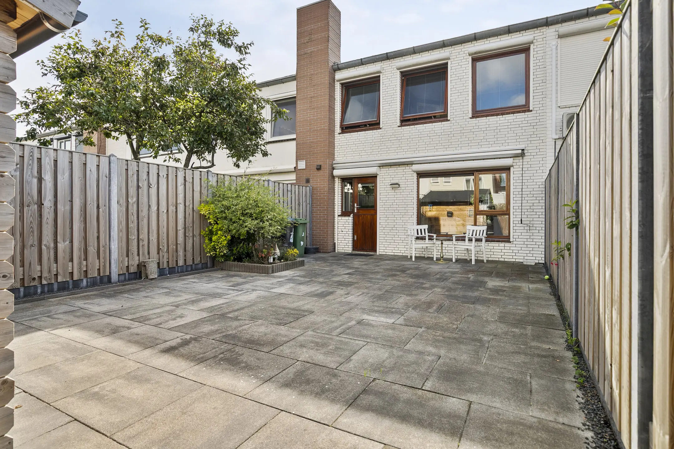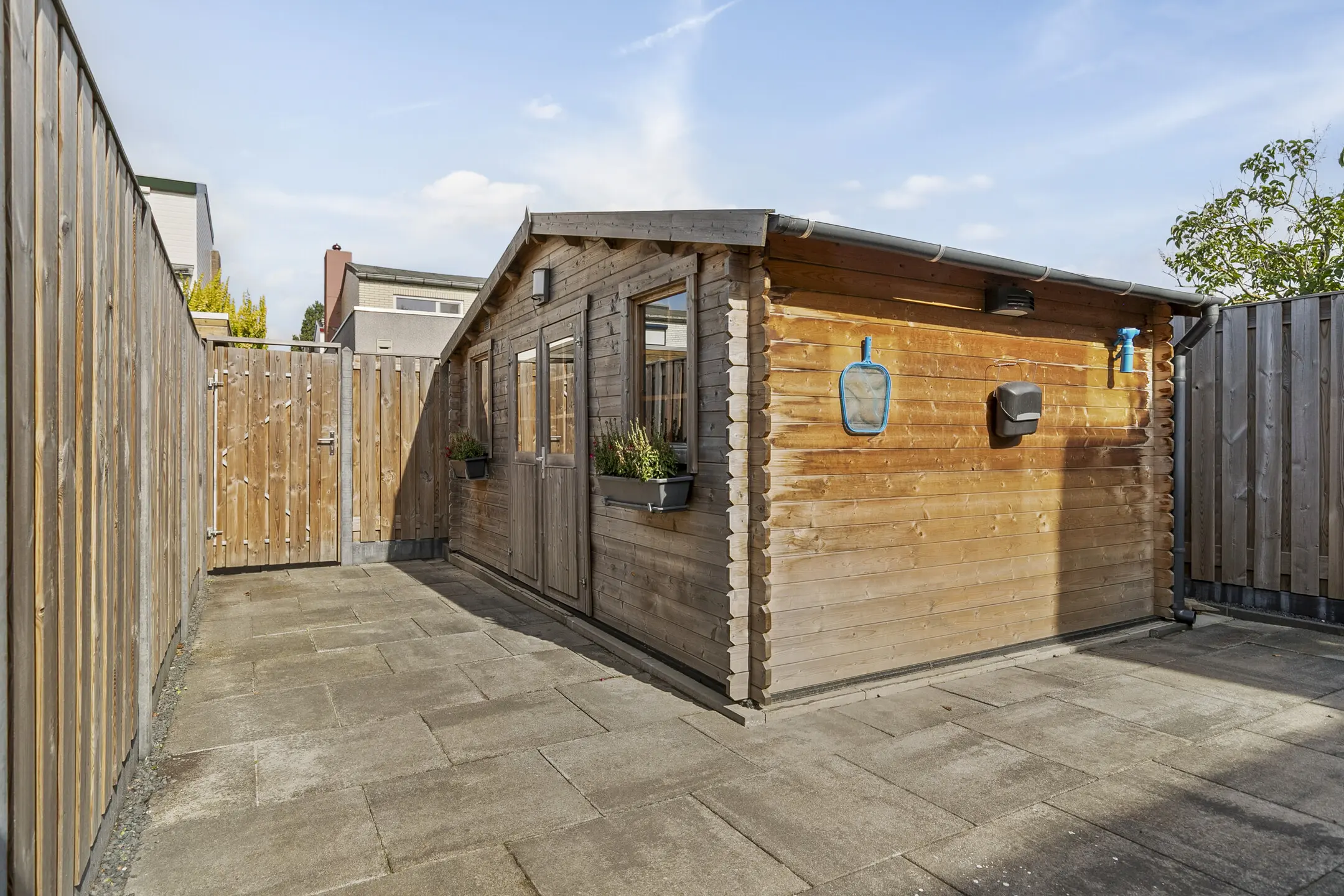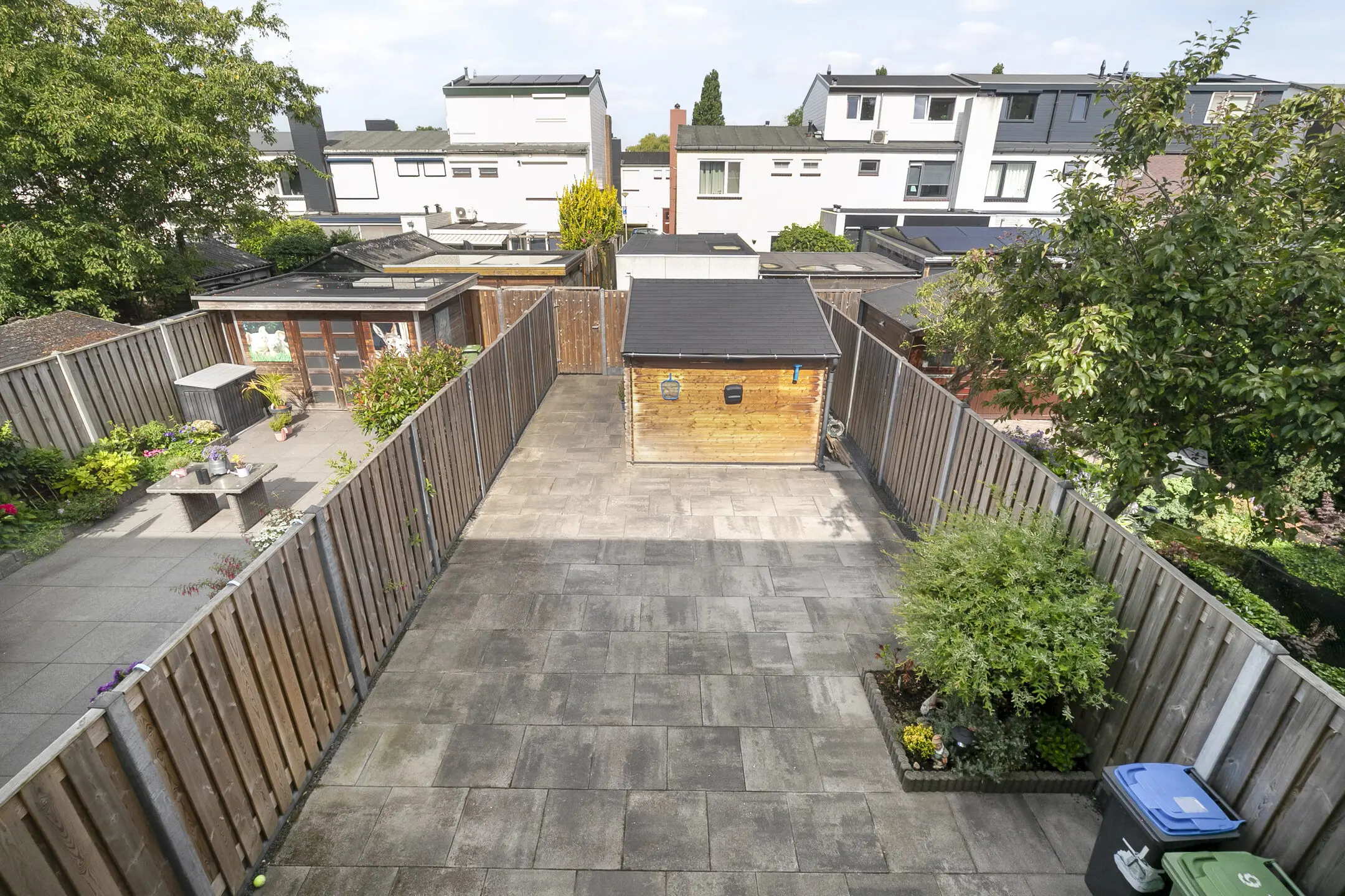 Vanuit de keuken heb je direct toegang tot de achtertuin met achterom, houten berging met elektra en nieuwe schuttingen. De woning is bovendien aan zowel de voor- als achterzijde voorzien van zonwering voor optimaal comfort.