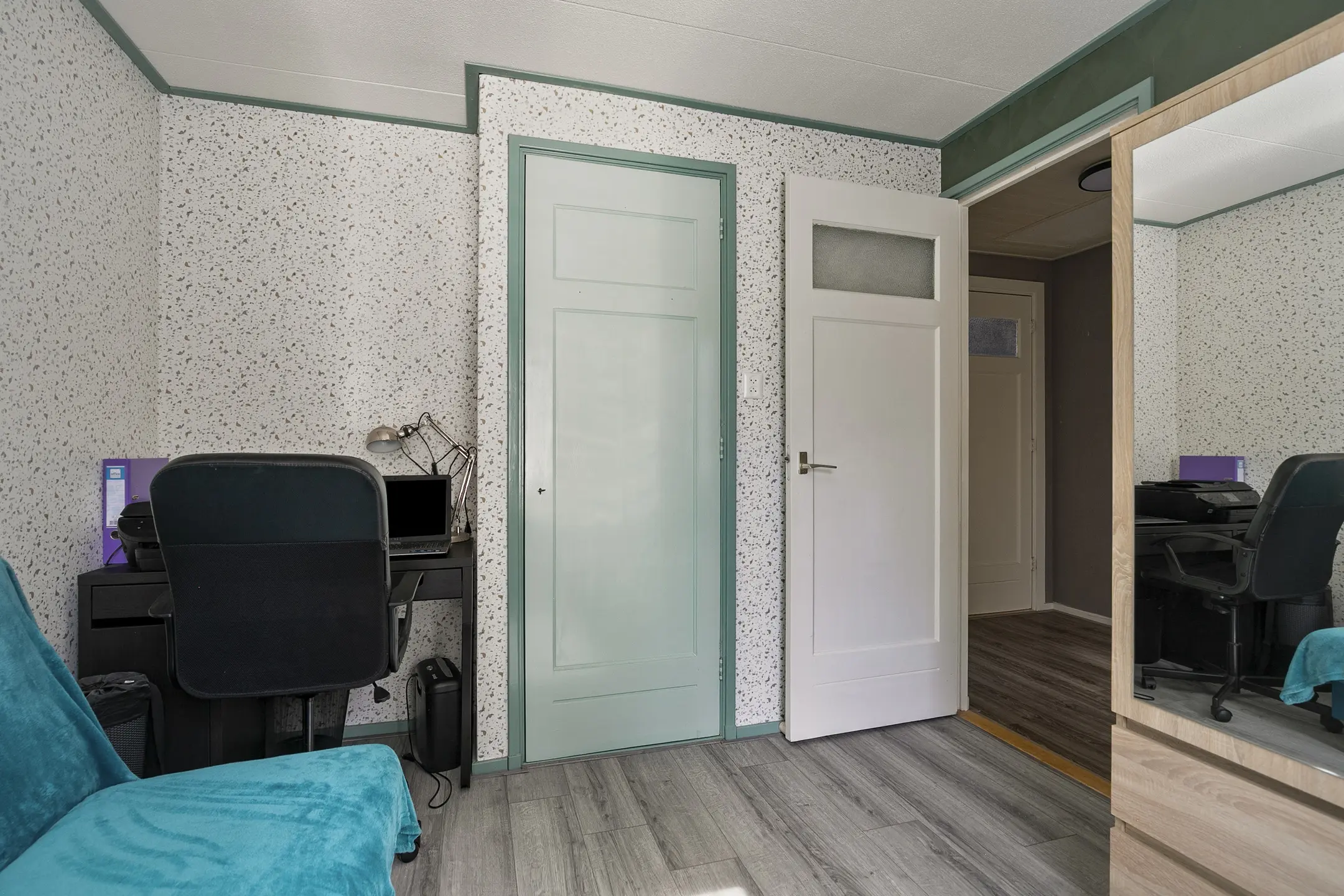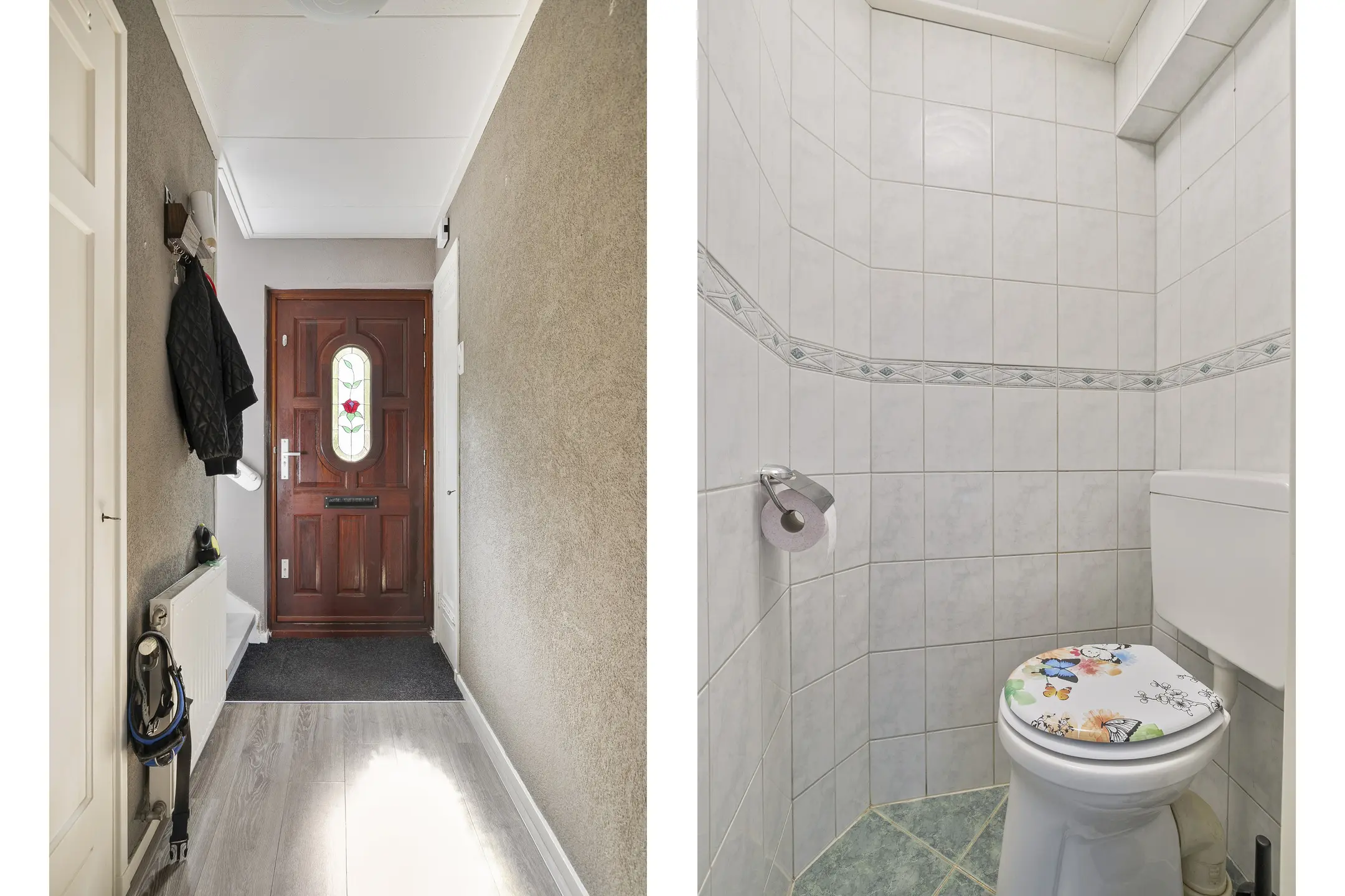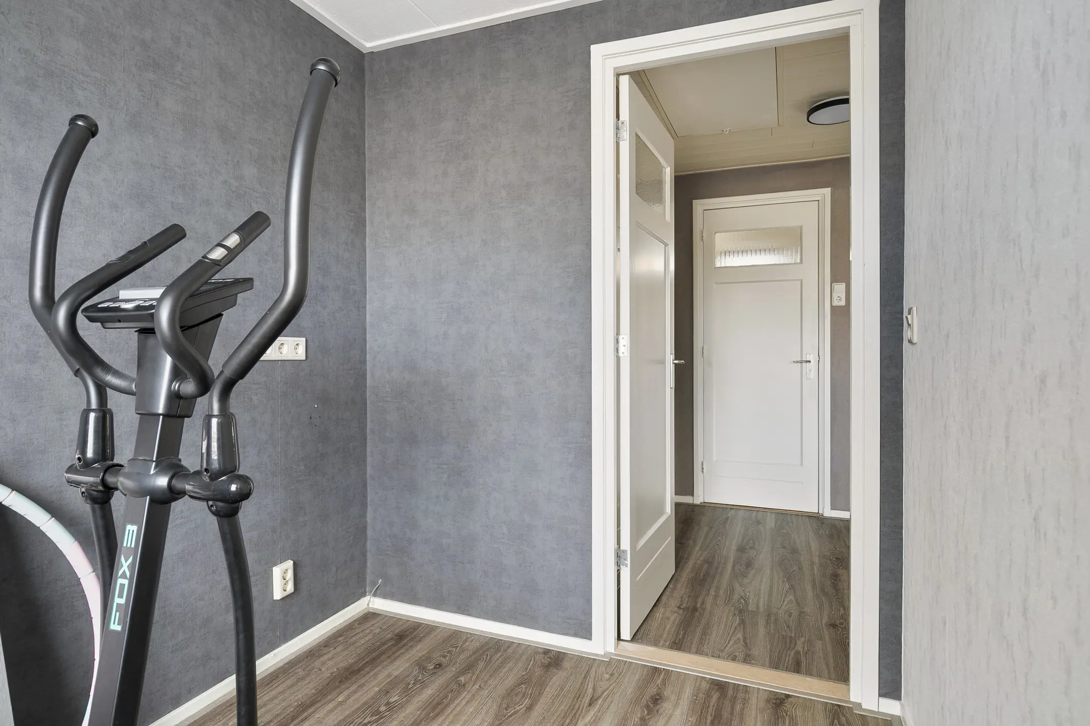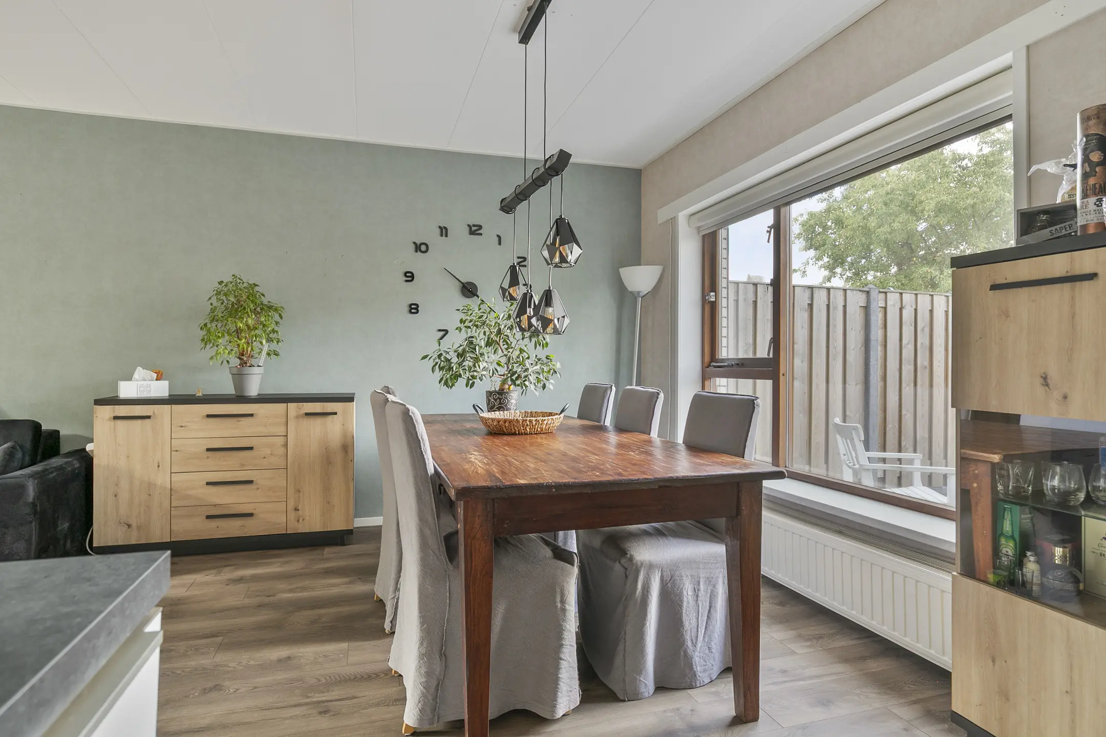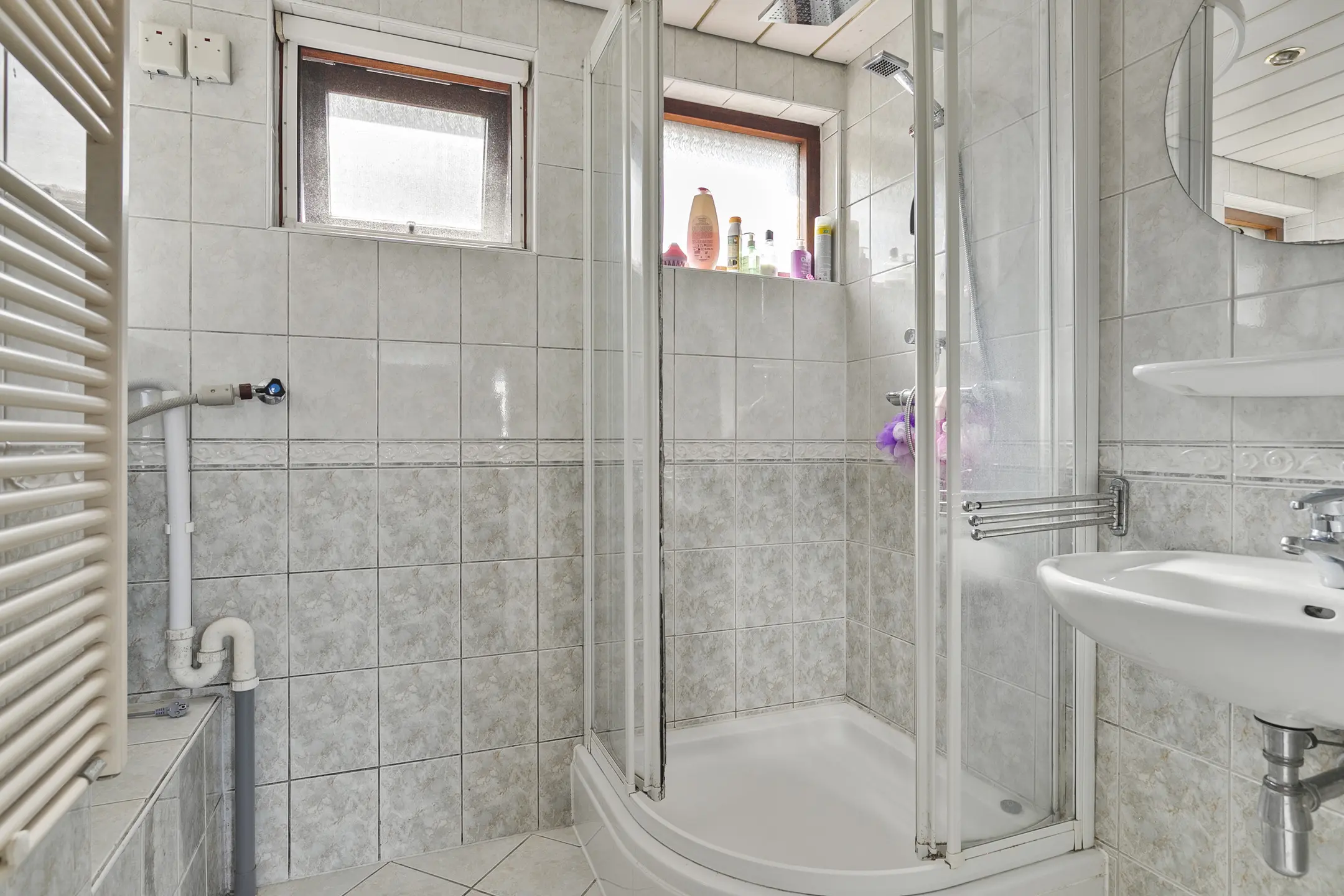 Vanuit de keuken heb je direct toegang tot de achtertuin met achterom, houten berging met elektra en nieuwe schuttingen. De woning is bovendien aan zowel de voor- als achterzijde voorzien van zonwering voor optimaal comfort.