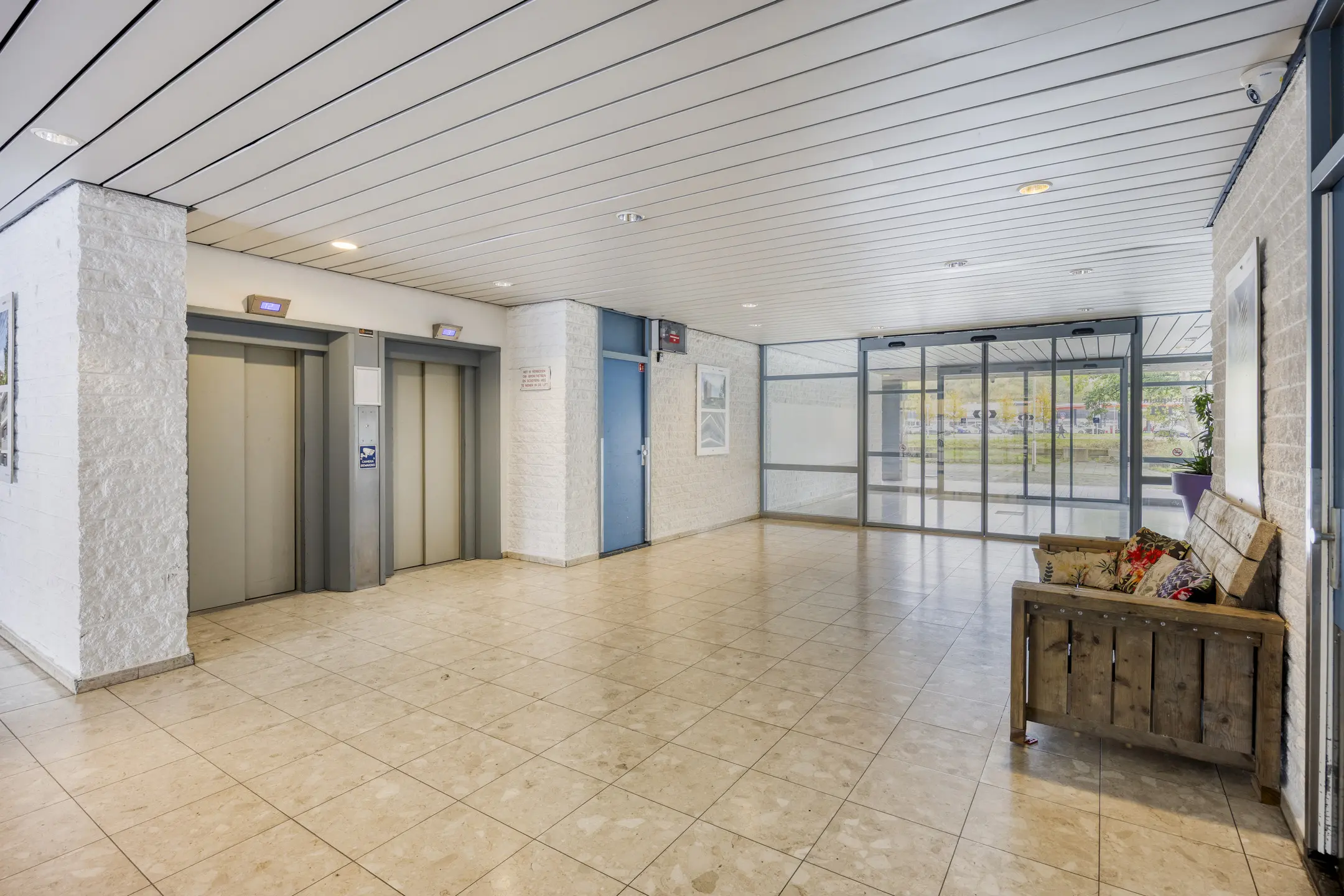 Het complex beschikt over een ruime entree die van twee zijden toegankelijk is. Vanuit hier brengt de lift u comfortabel naar de zestiende verdieping. Een brede, inpandige galerij biedt toegang tot de verschillende appartementen, waaronder nummer 142.
