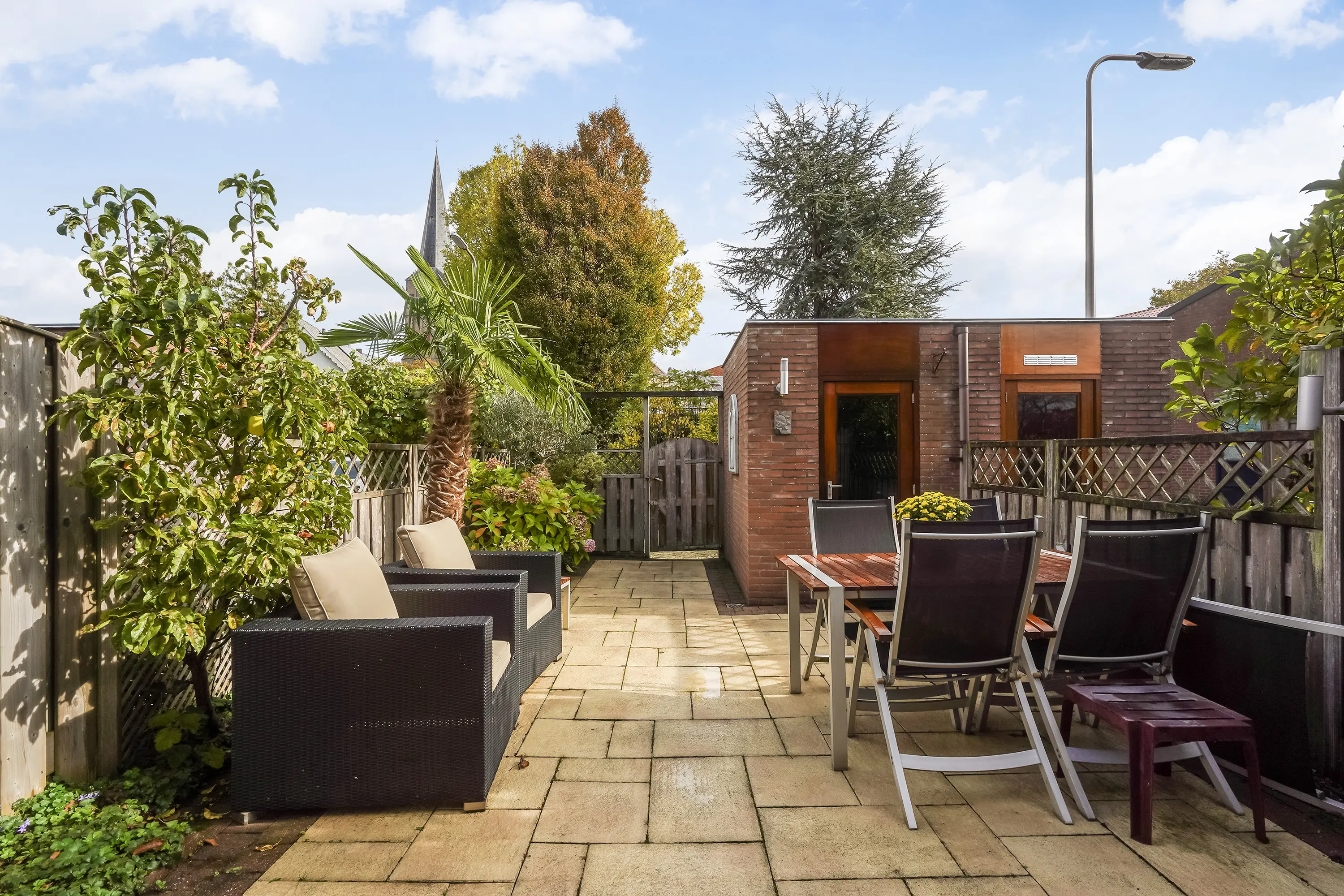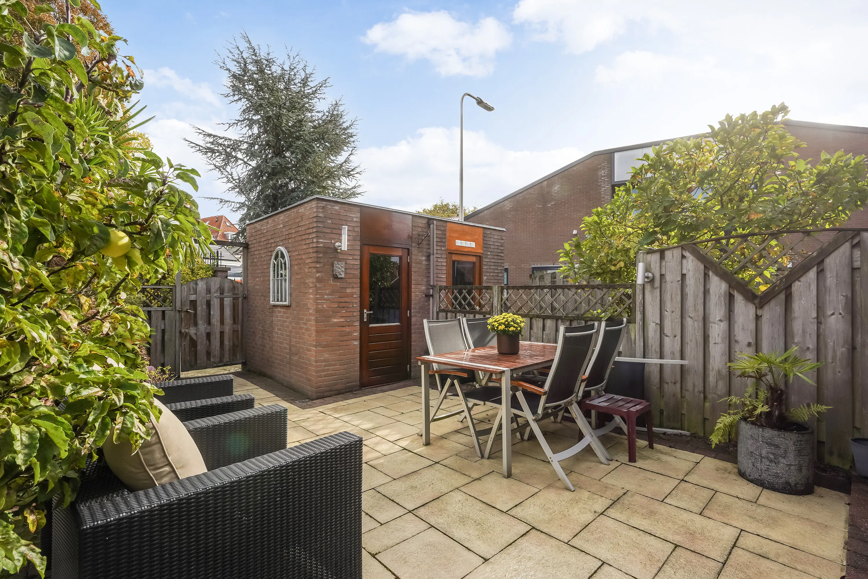 - Tuin met berging en achterom en buitenkraan