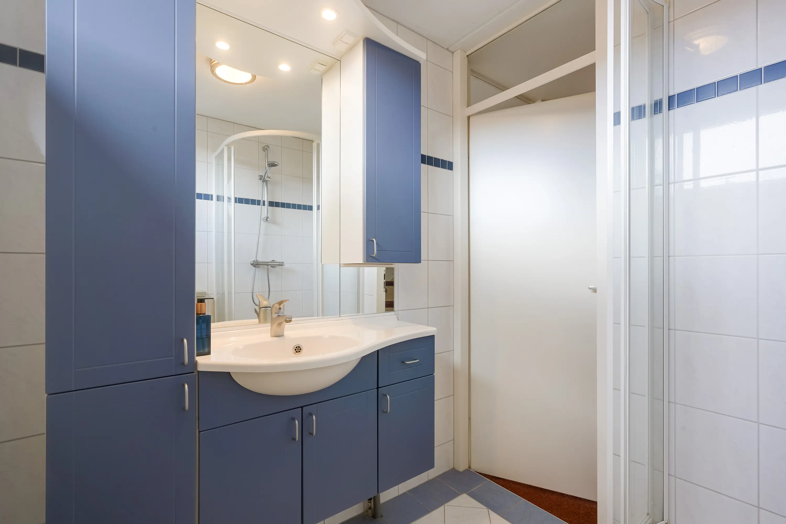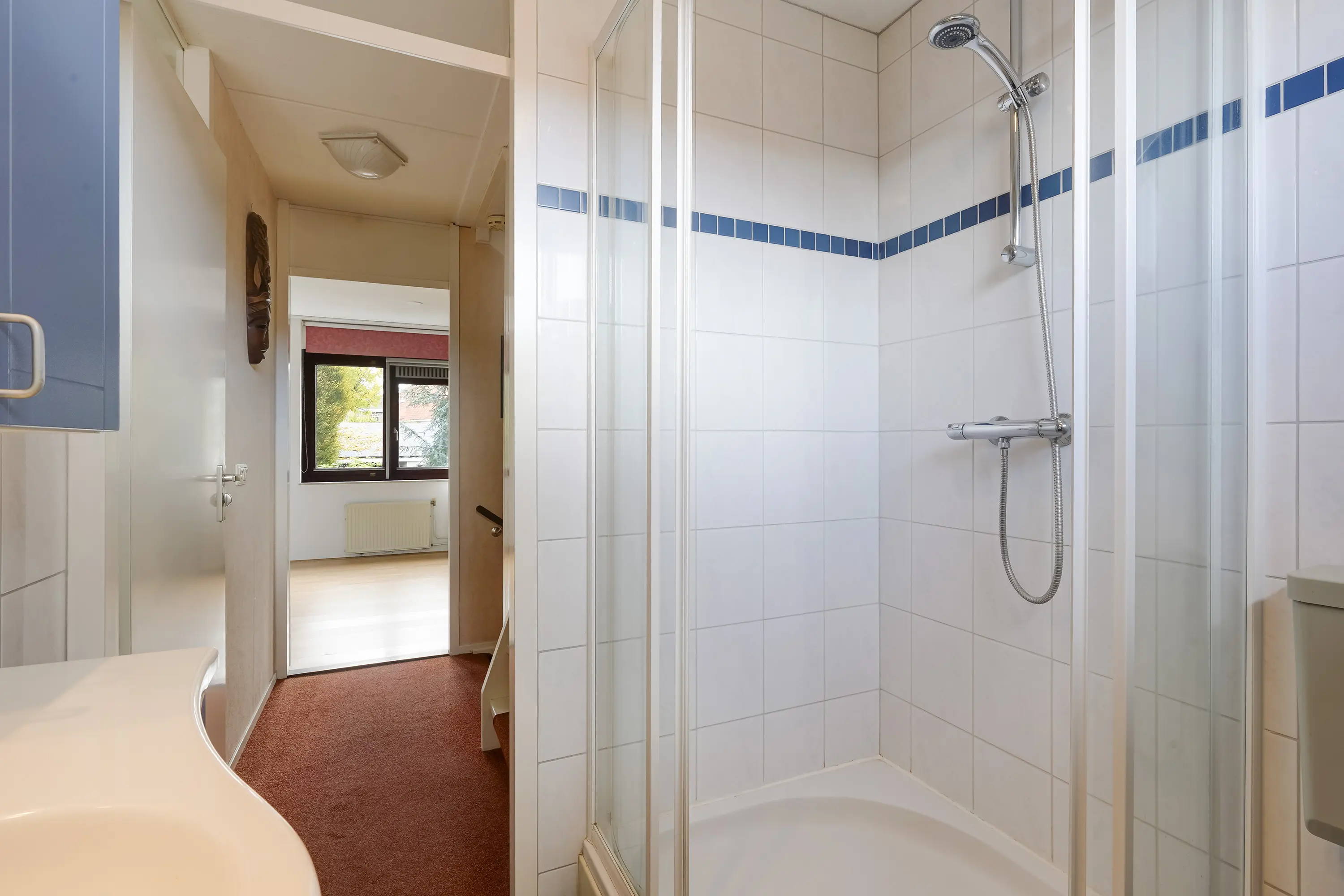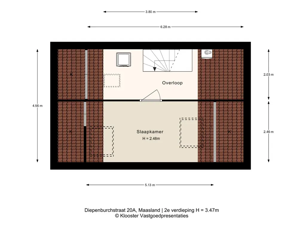De tweede verdieping beschikt over een derde slaapkamer, opstelplaats voor de cv-ketel en aansluiting voor wasmachine en droger. Achter de knieschotten is volop bergruimte aanwezig.