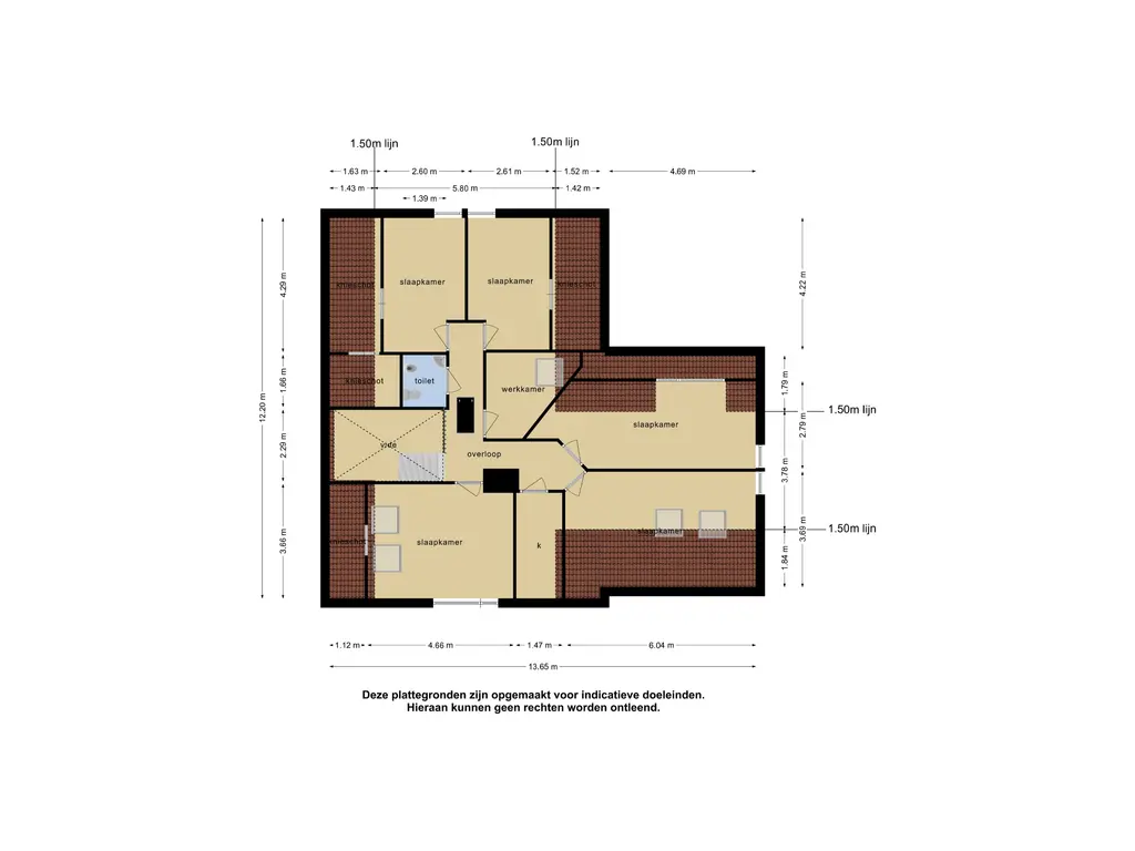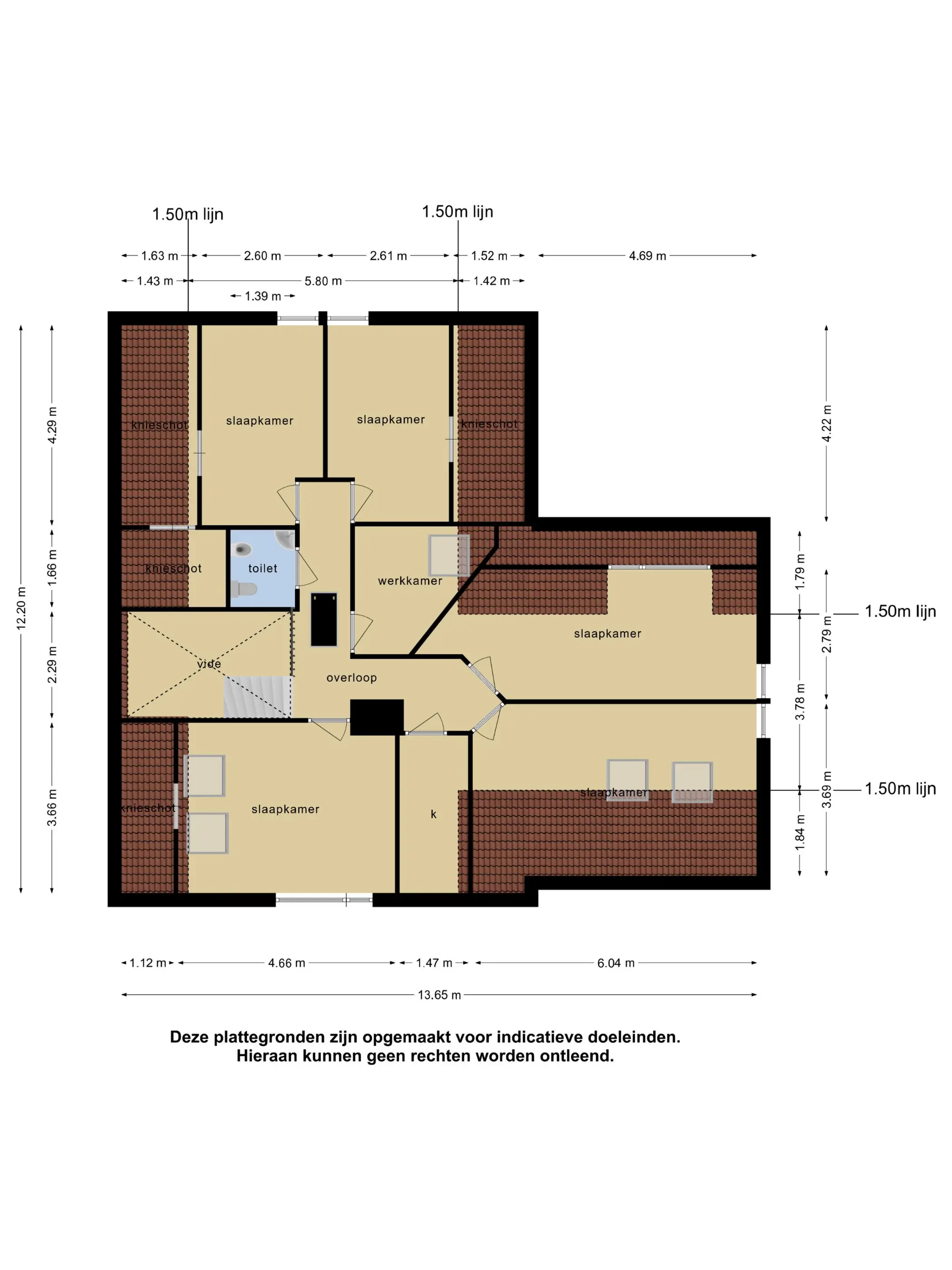 Er bevinden zich op deze verdieping diverse slaapkamers, zes in totaal variërend in grote van 5 m2 tot wel 17 m2. Een aantal van de slaapkamers beschikt over een rolluik.