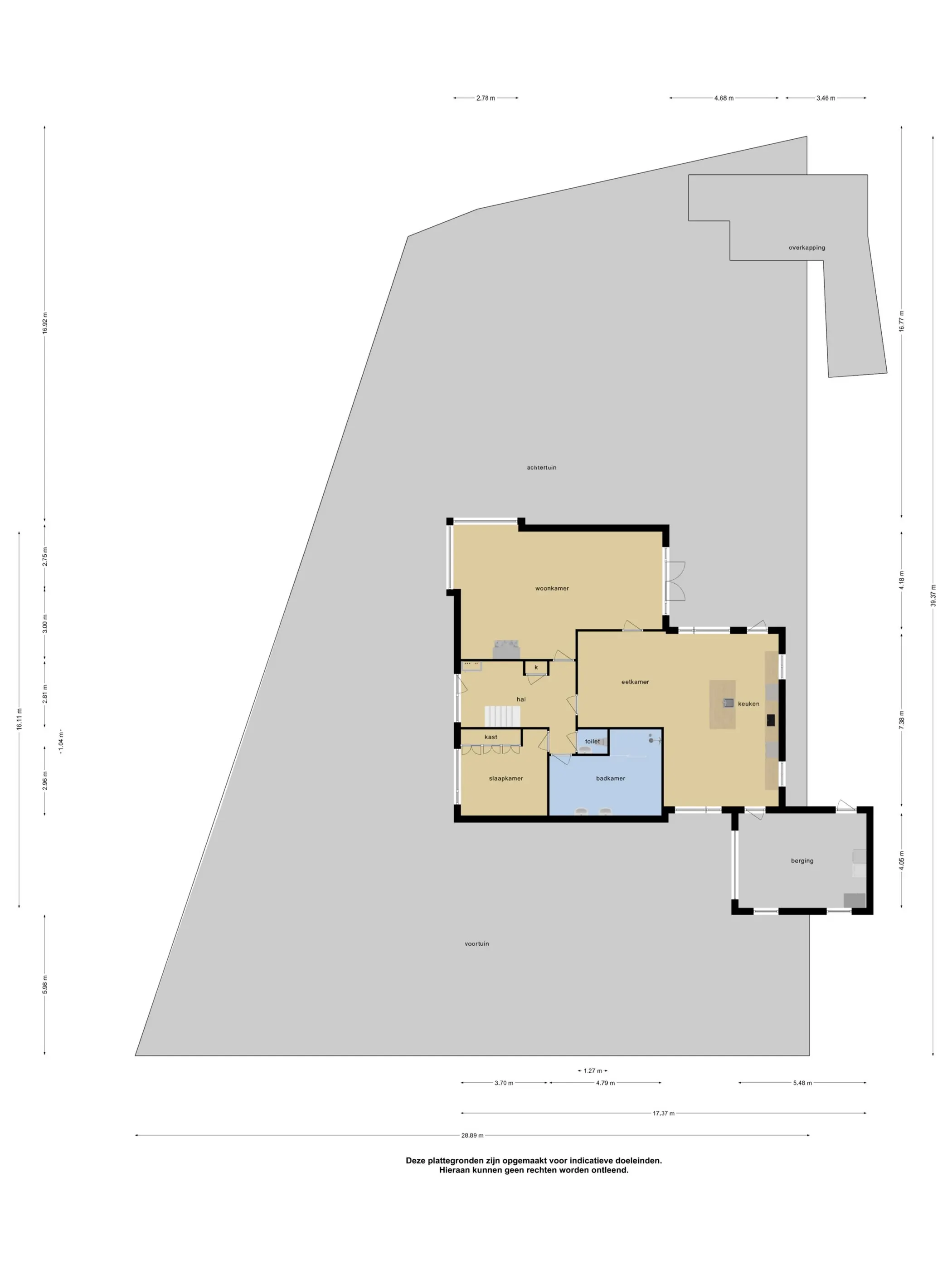 Vanuit de voordeur betreedt u een ruime hal welke de diverse vertrekken met elkaar verbindt en waar zich de meterkast, de trapopgang naar de eerste verdieping en het toilet zich bevindt.