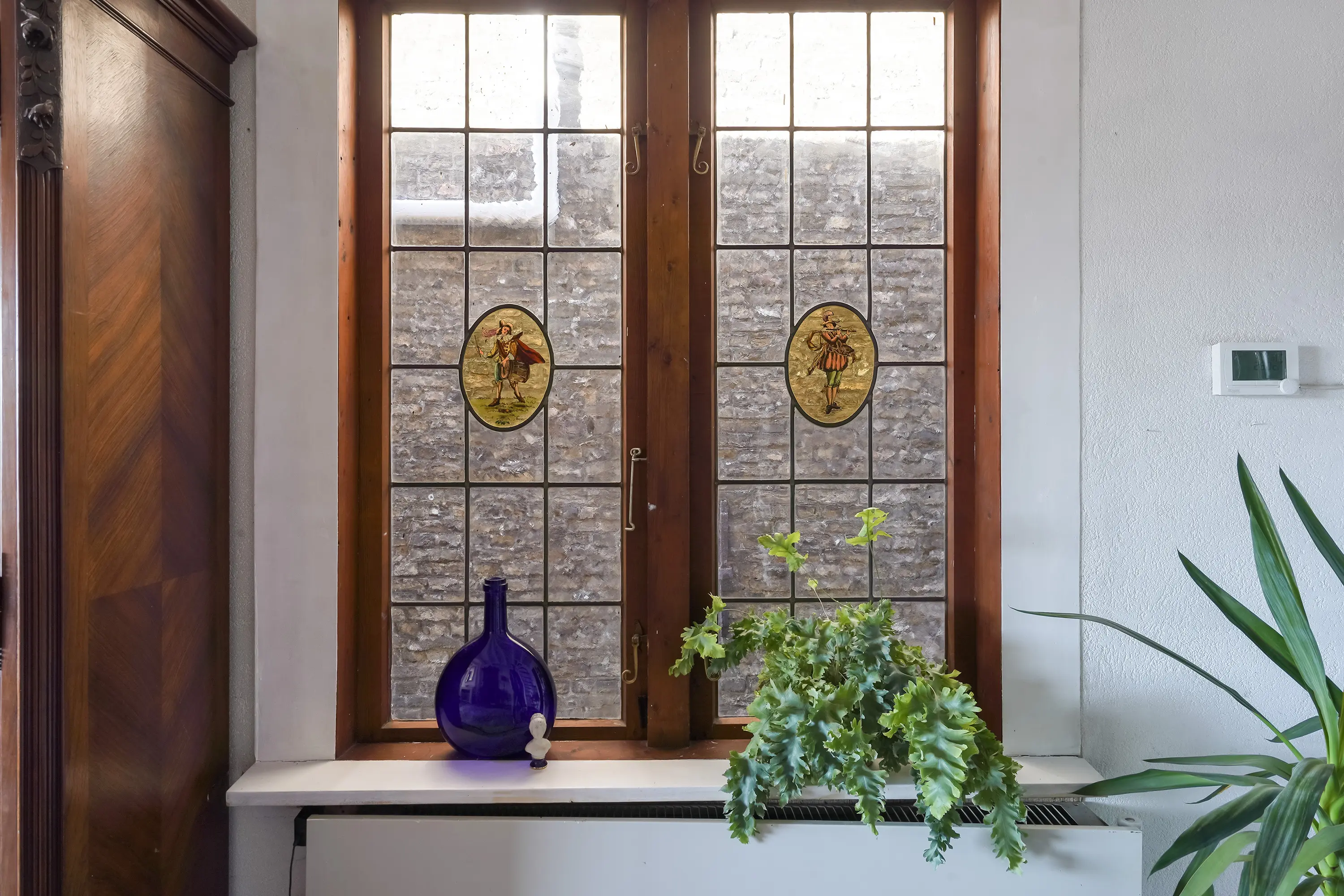 - Mooie originele details zoals glas-in-lood en balkenplafonds