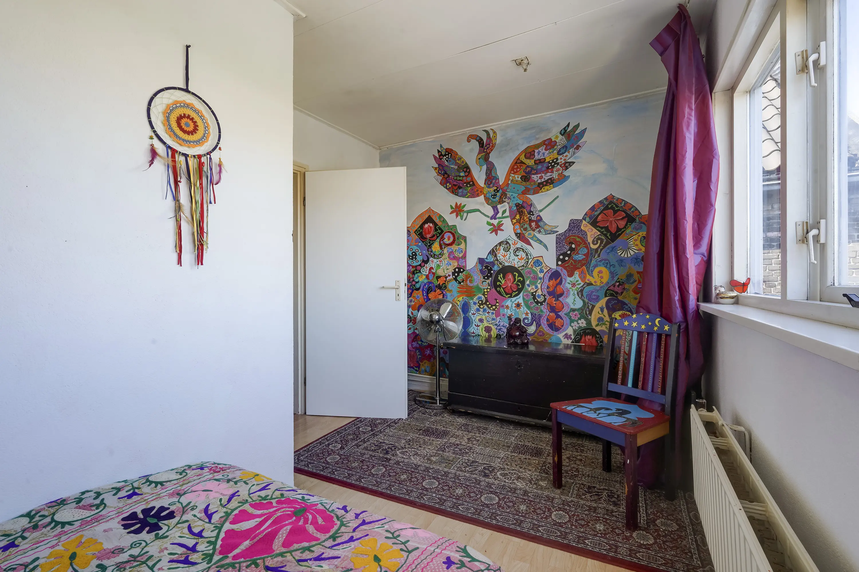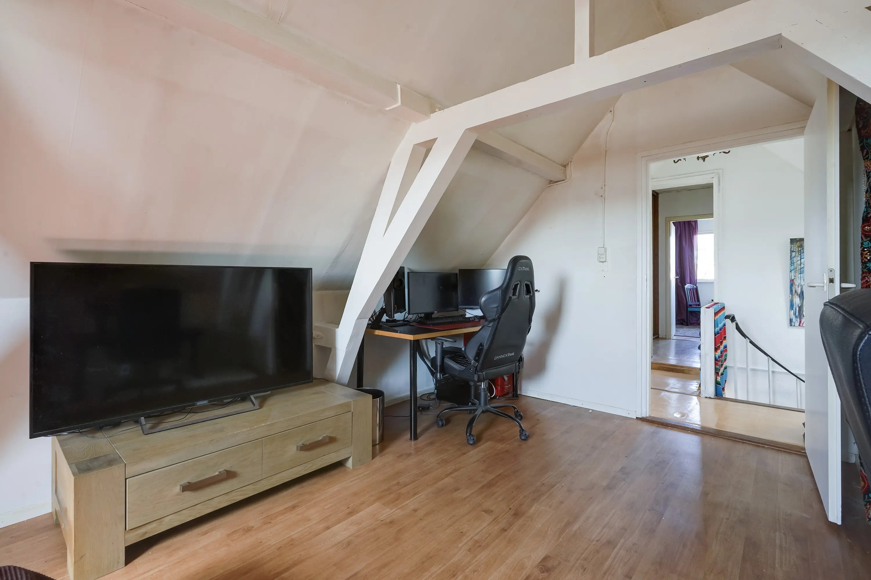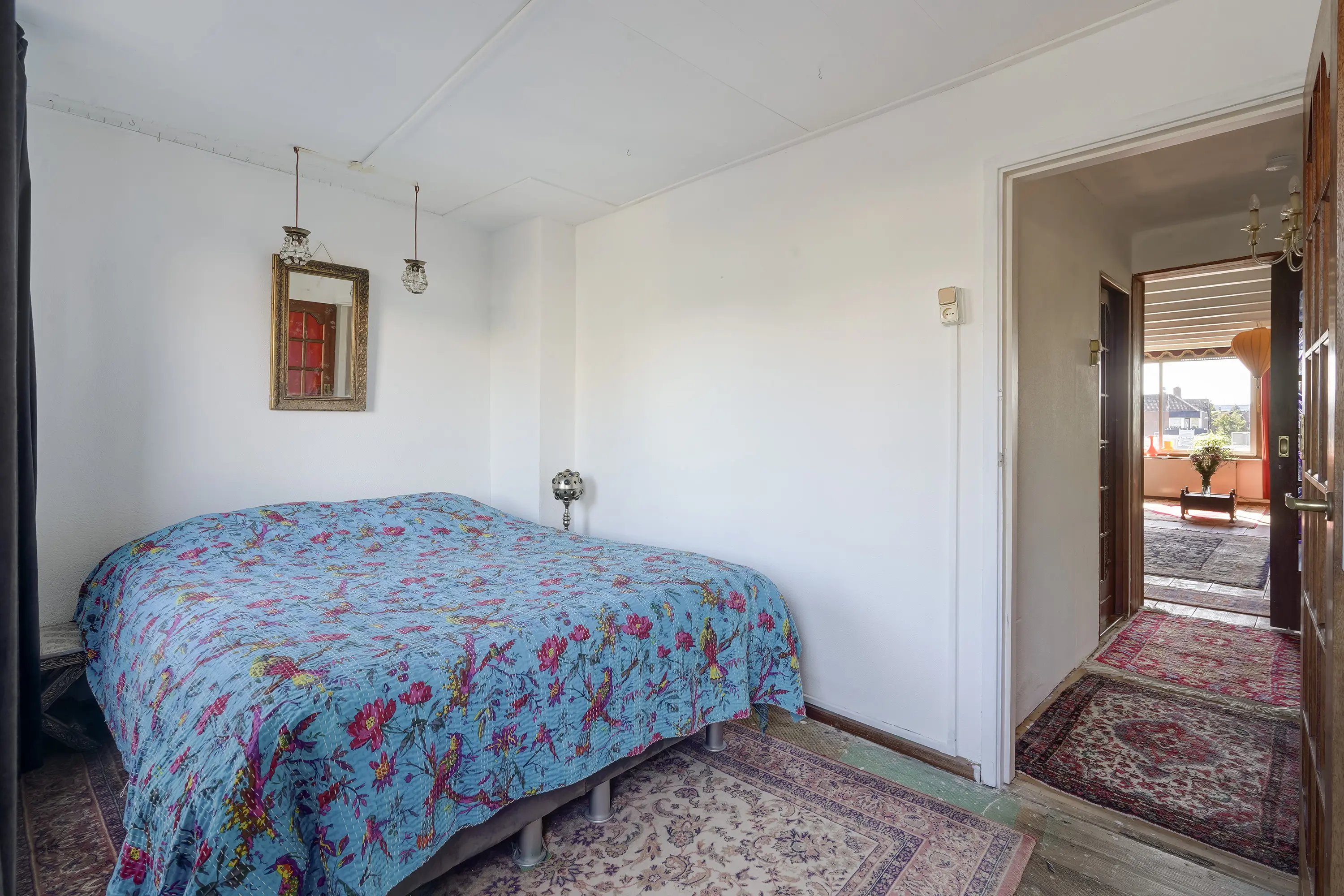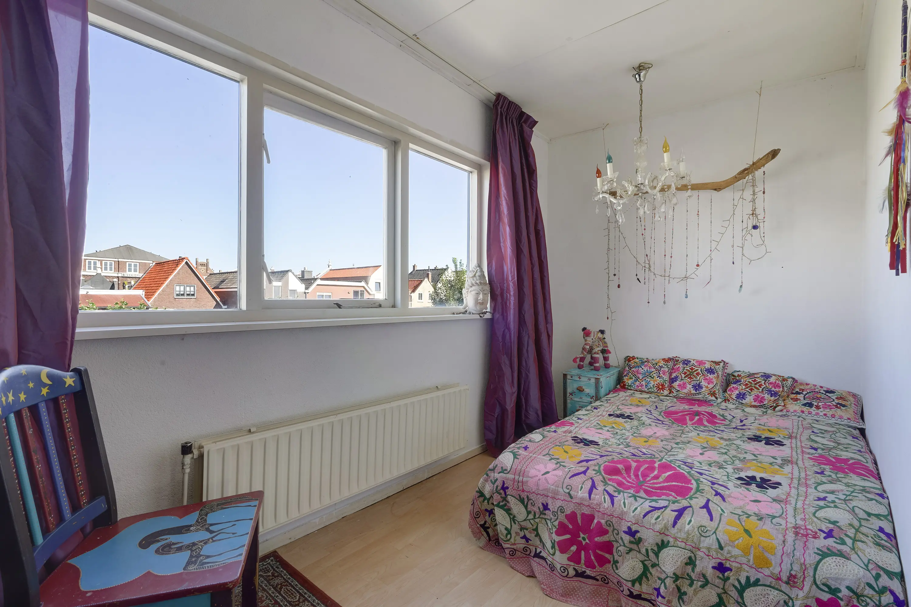 De tweede verdieping heeft een verrassende ruimte: een slaapkamer aan de voorzijde met karakteristieke balken, een royale slaapkamer aan de achterzijde en een lichte badkamer met ligbad, toilet, wastafel, vloerverwarming en een prachtige lichtkoepel.