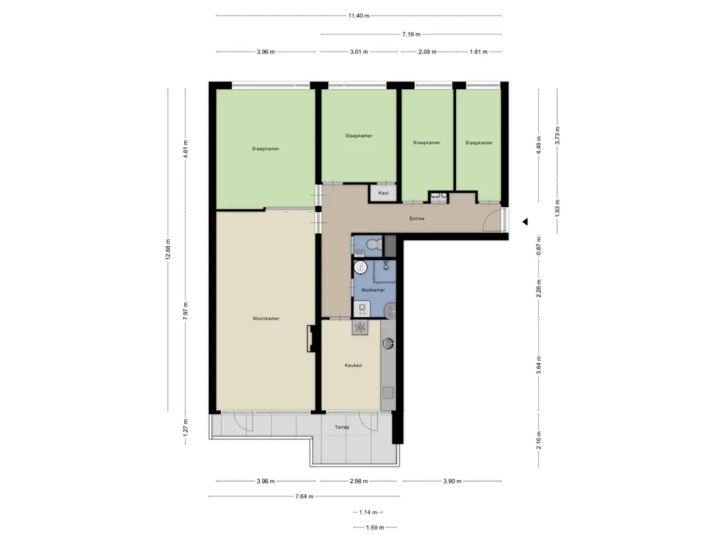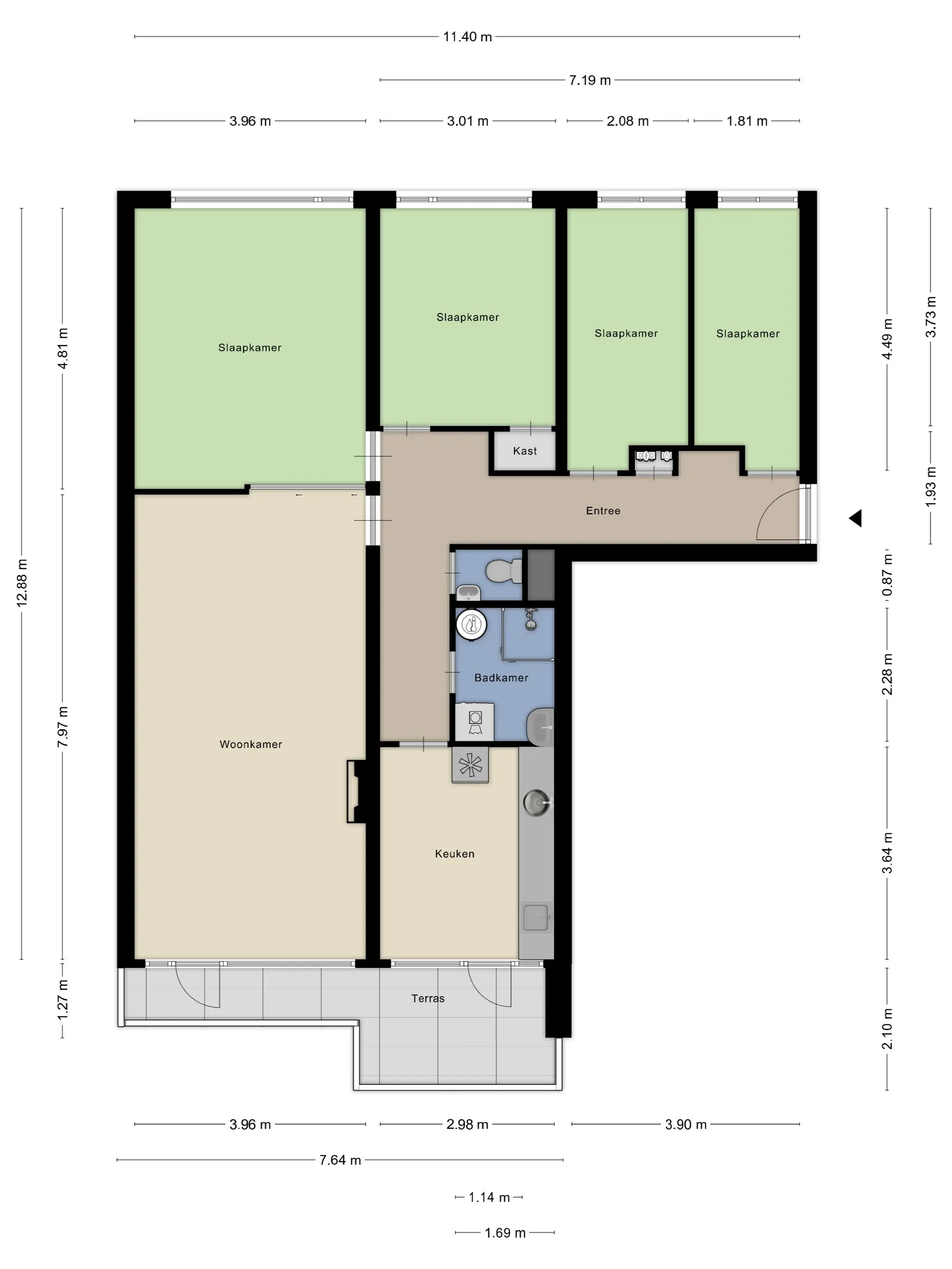 Verder zijn er 4 slaapkamers, een nette badkamer met douche en wastafelmeubel, en een separaat toilet.