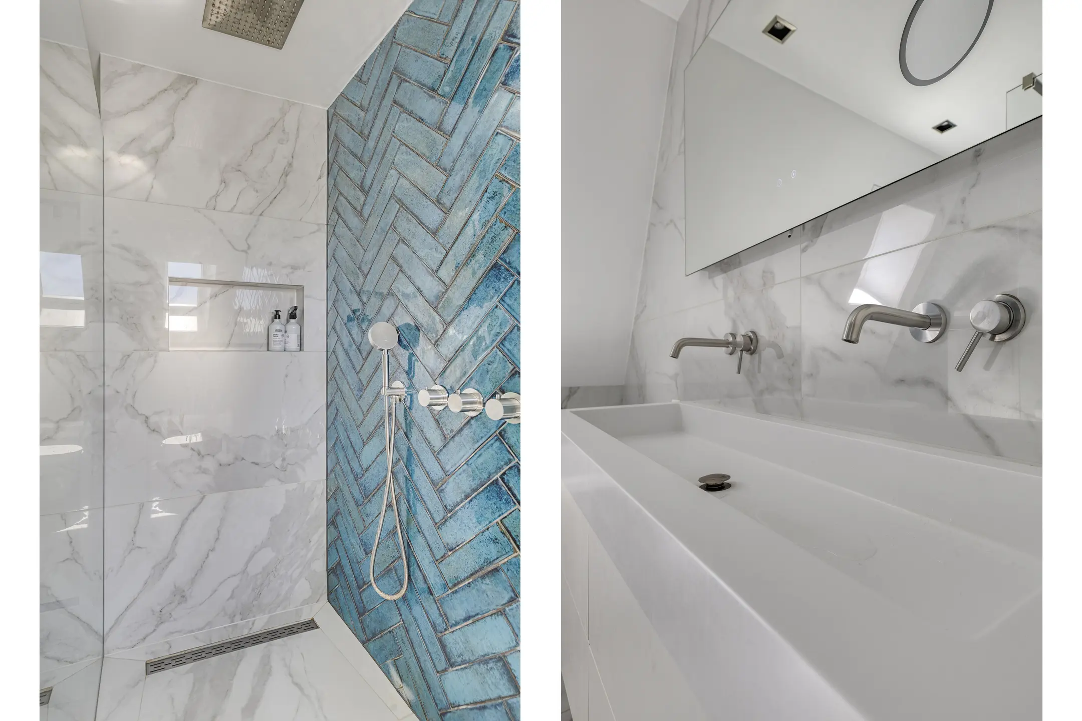 - Luxe badkamer (2023) met bad, brede wastafel, toilet, inloopdouche met plafond regendouche en vloerverwarming;