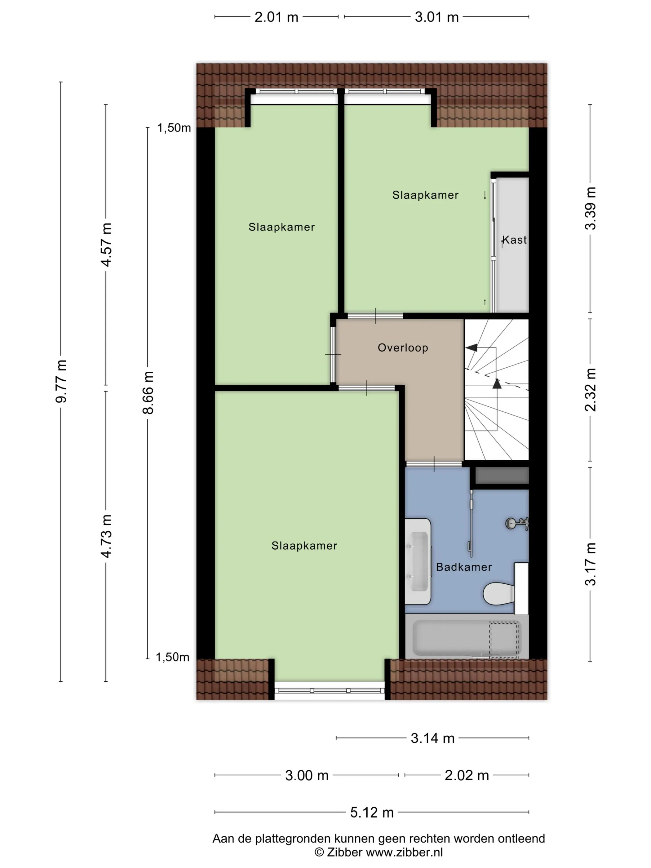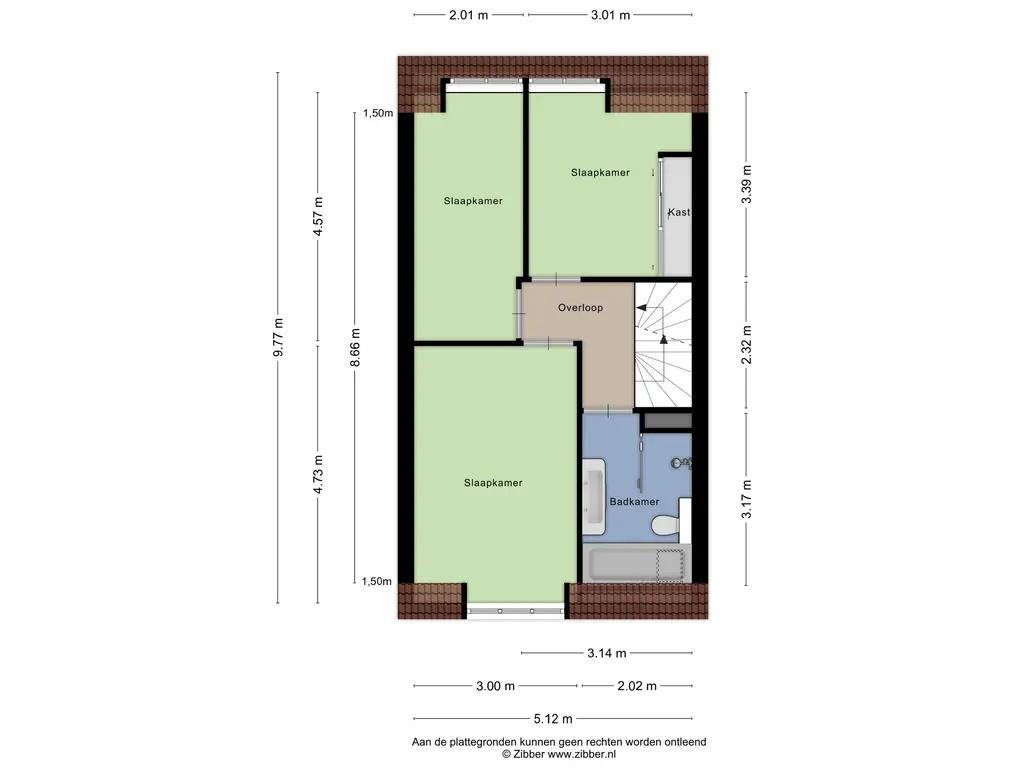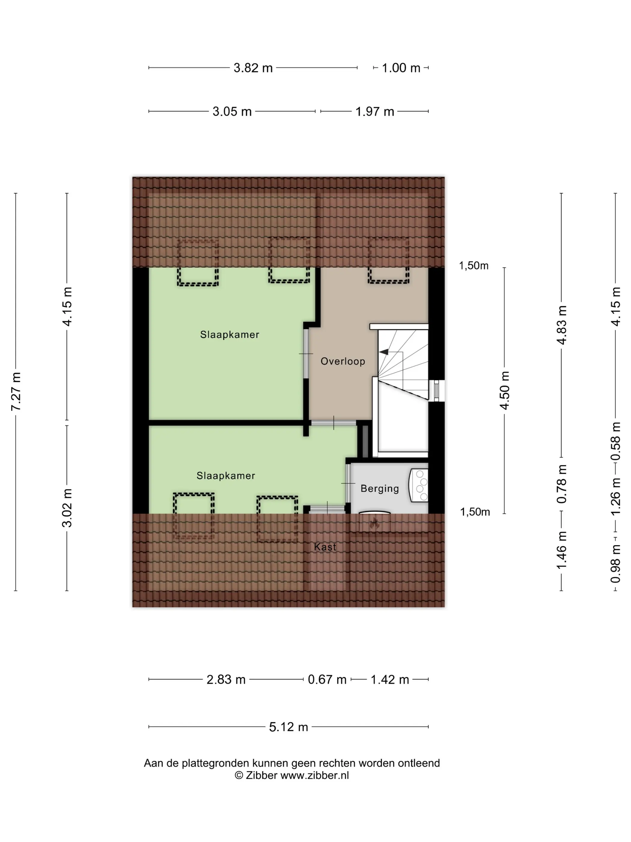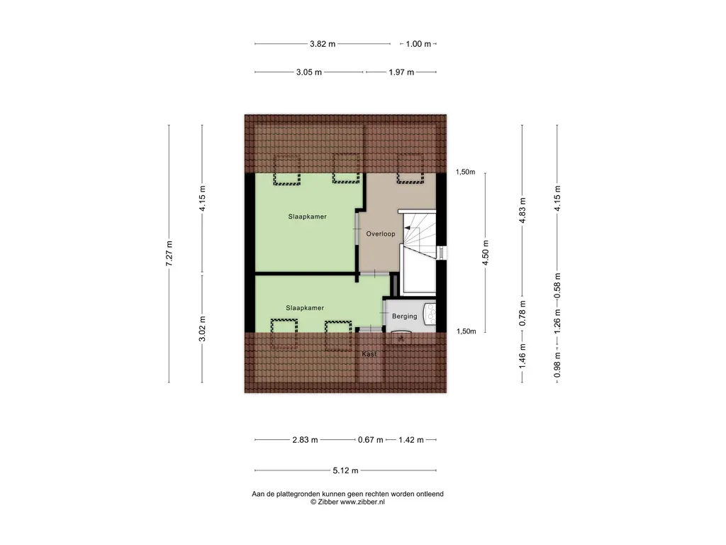 Op de tweede verdieping bevinden zich nog twee slaapkamers. De vele Velux dakramen zorgen ook hier voor voldoende lichtinval, maar zijn allemaal voorzien van verduistering. Onder de gebogen kap is nog volop bergruimte beschikbaar.