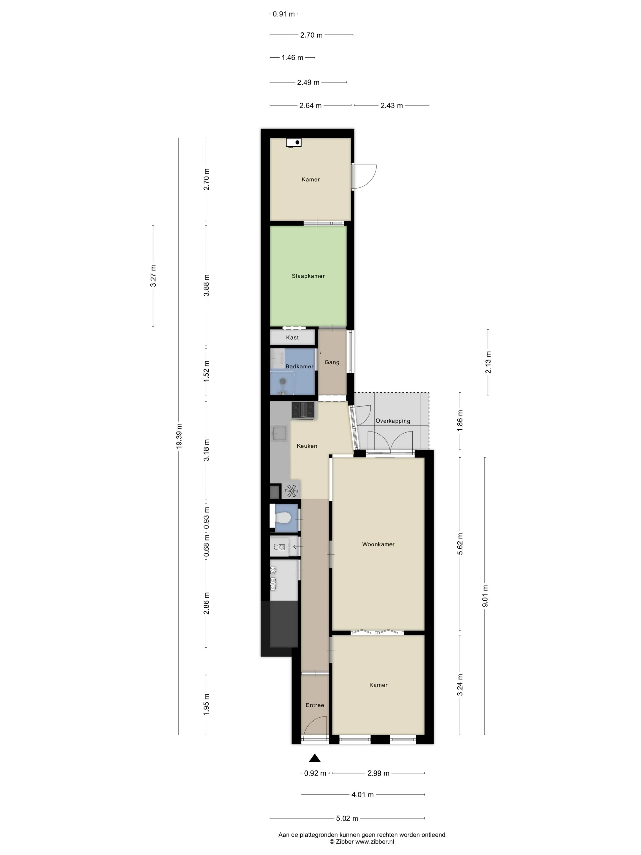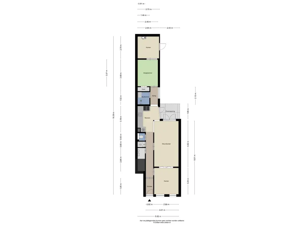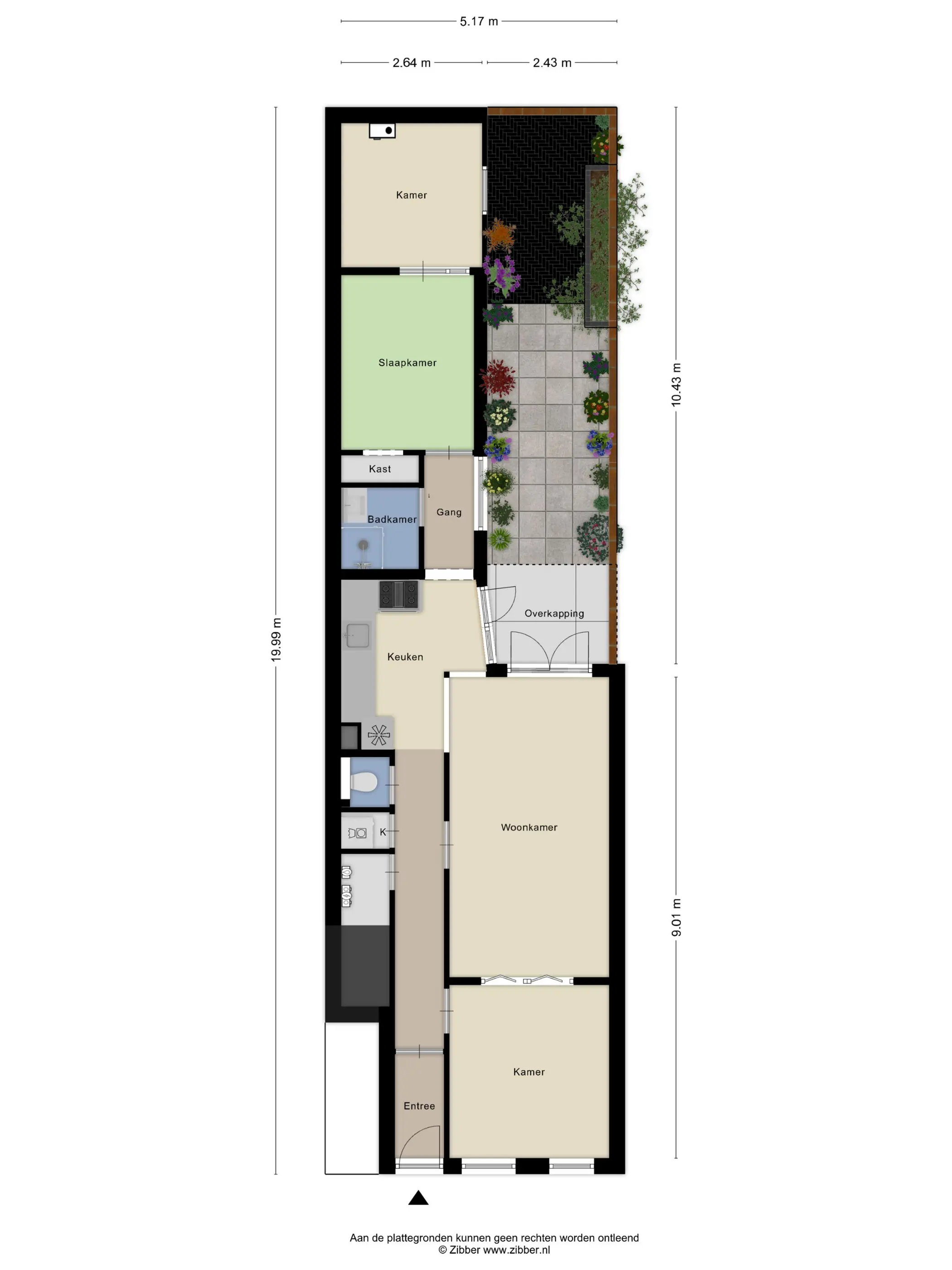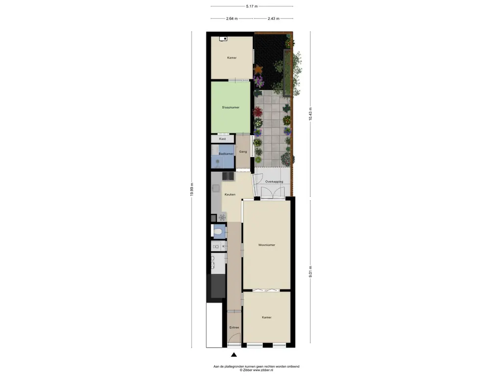 Aan de achterzijde bevindt zich de tweede slaapkamer, met wederom directe toegang tot de tuin.