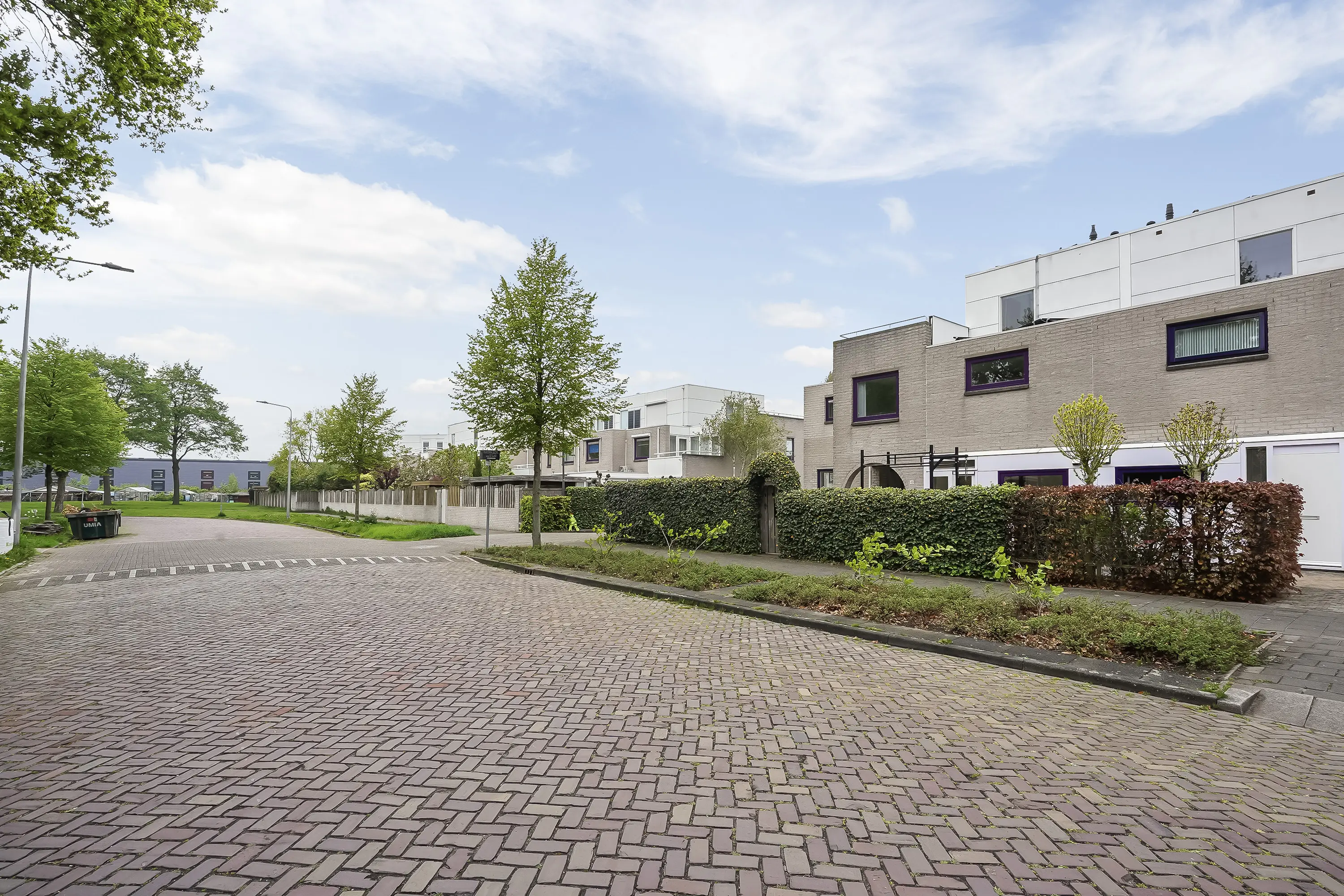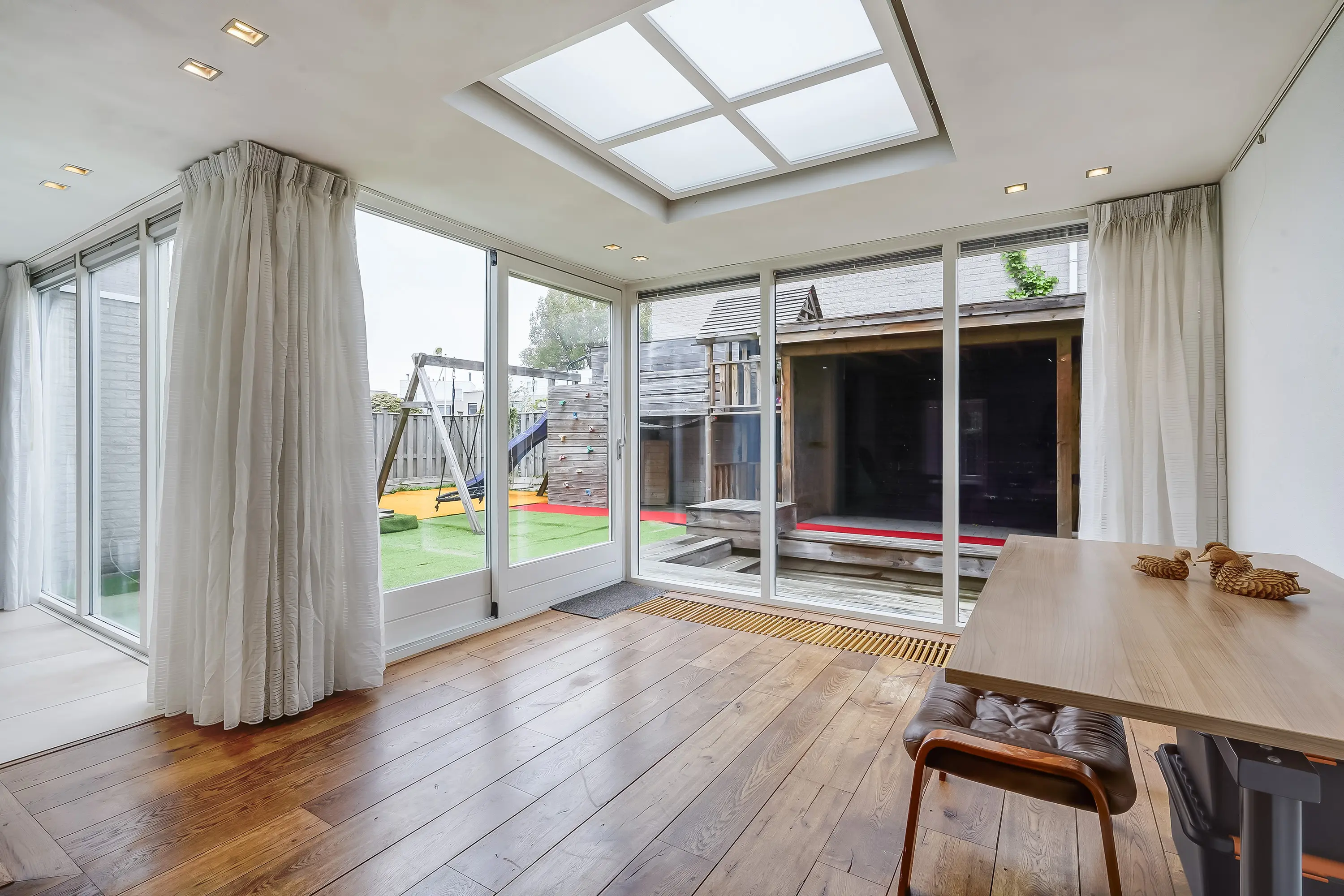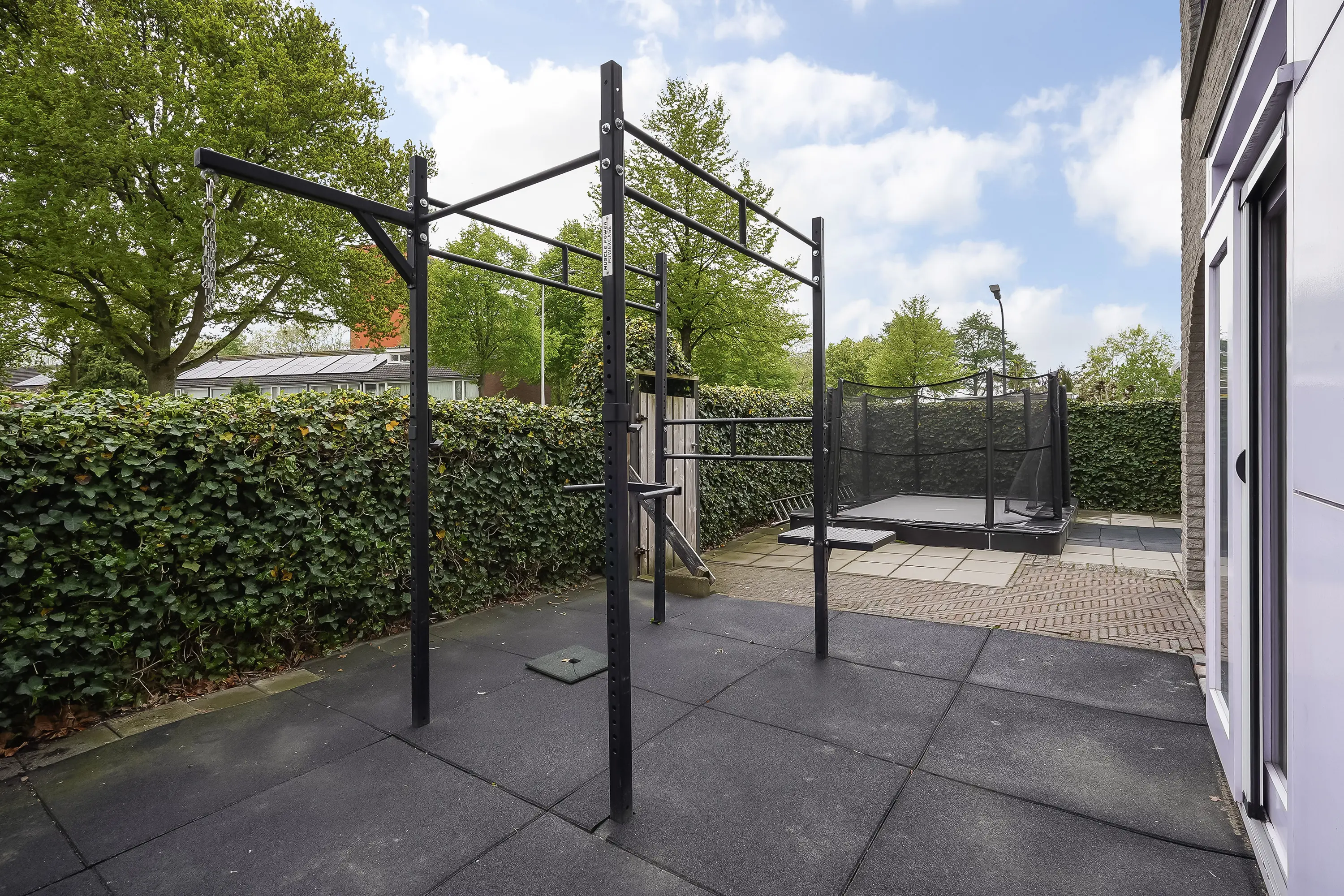De tuin is rondom de woning gelegen en volledig afgesloten — een veilige speelplek voor kinderen, met volop ruimte op de speeltoestellen. Dankzij de verbinding tussen voor-, zij- en achtertuin is er altijd een plek in de zon of juist in de schaduw te vinden.