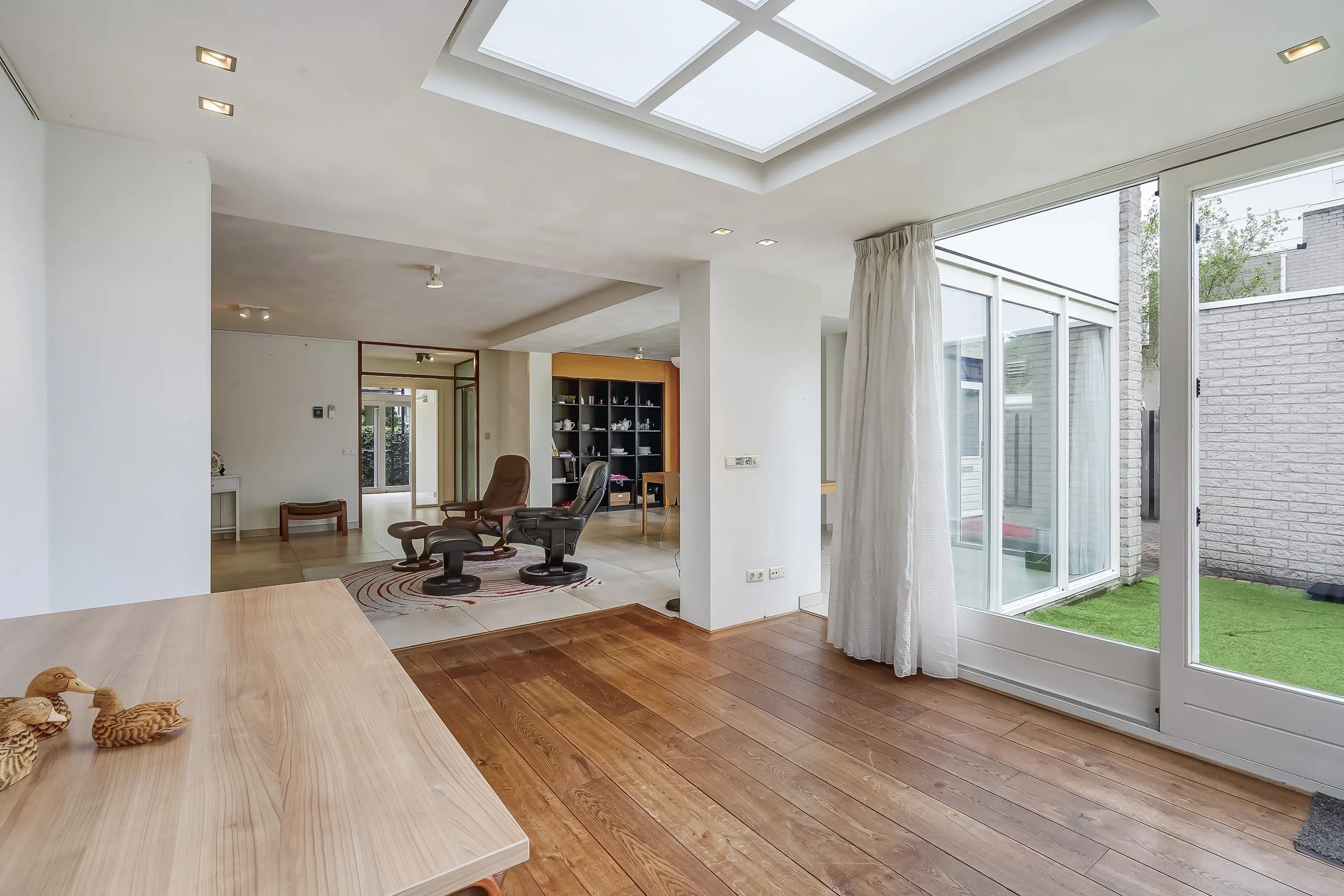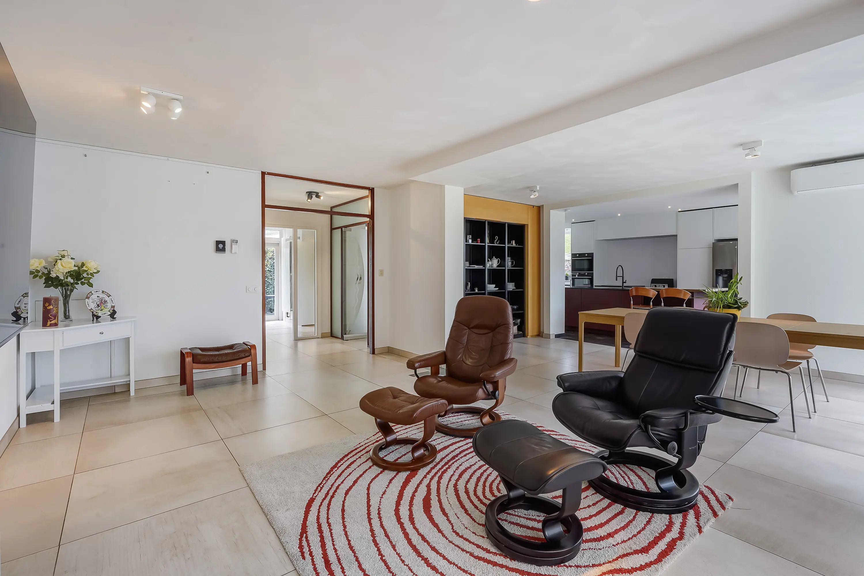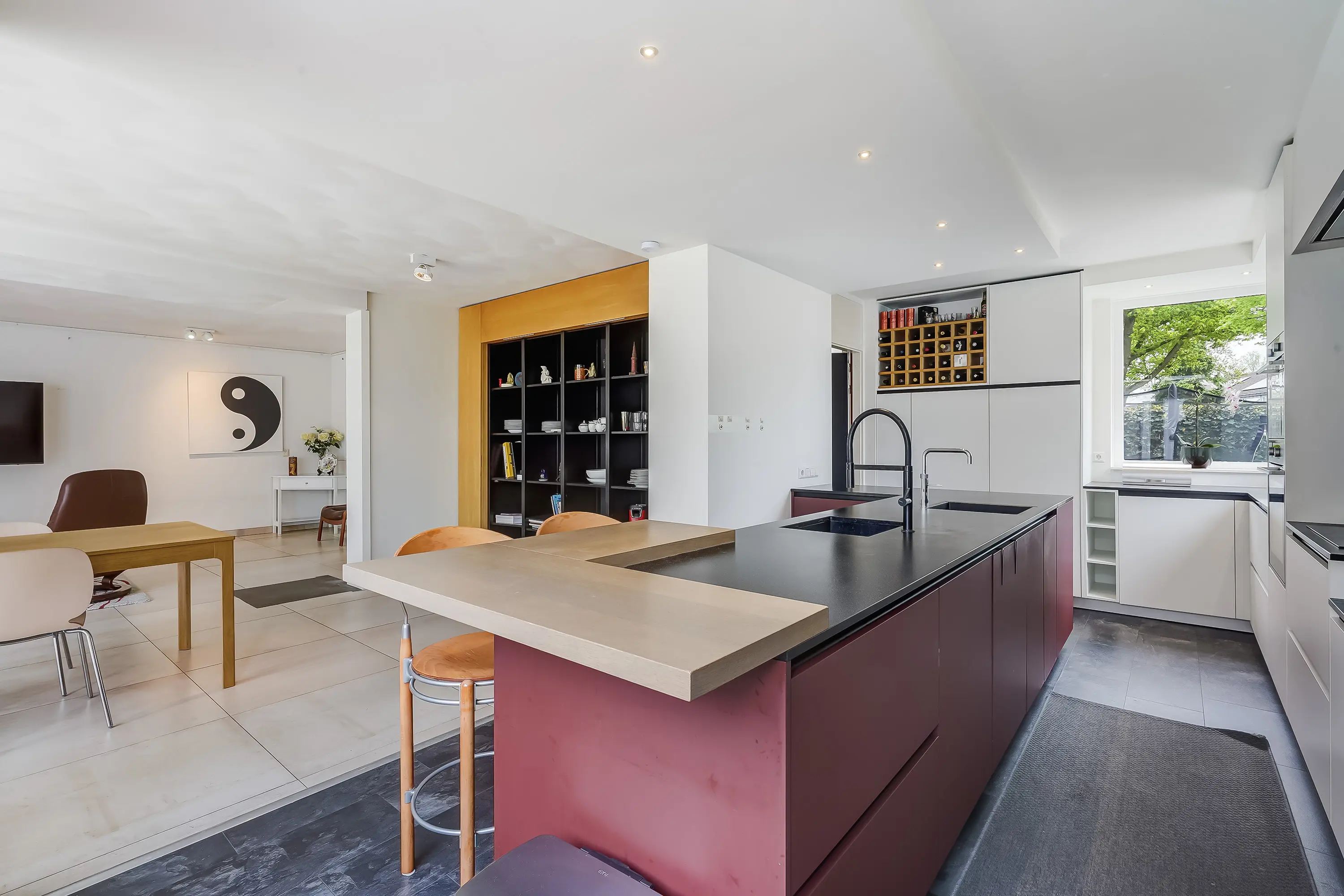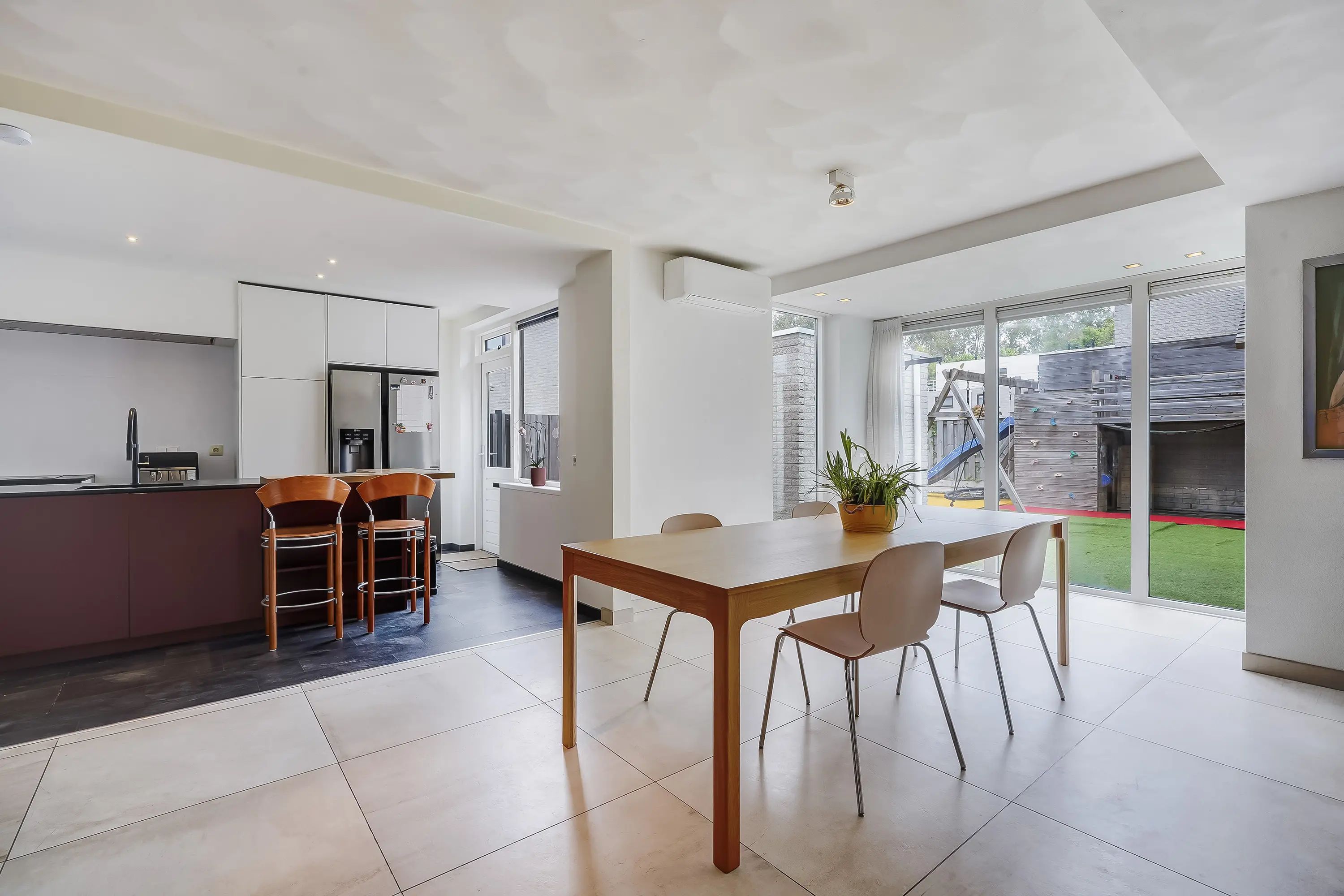 De royale woonkamer is aan de achterzijde uitgebouwd en voorzien van een lichtkoepel, wat zorgt voor een zee aan daglicht. Tevens is de woonkamer voorzien van een airiconditioning .Een stijlvolle glazen deur verbindt de hal met de living. De moderne en luxe keuken (2021) is een droom voor kookliefhebbers: twee spoelbakken, een Quooker, composiet werkblad, combimagnetron én oven, inductiekookplaat, vaatwasser en koel-vriescombinatie.