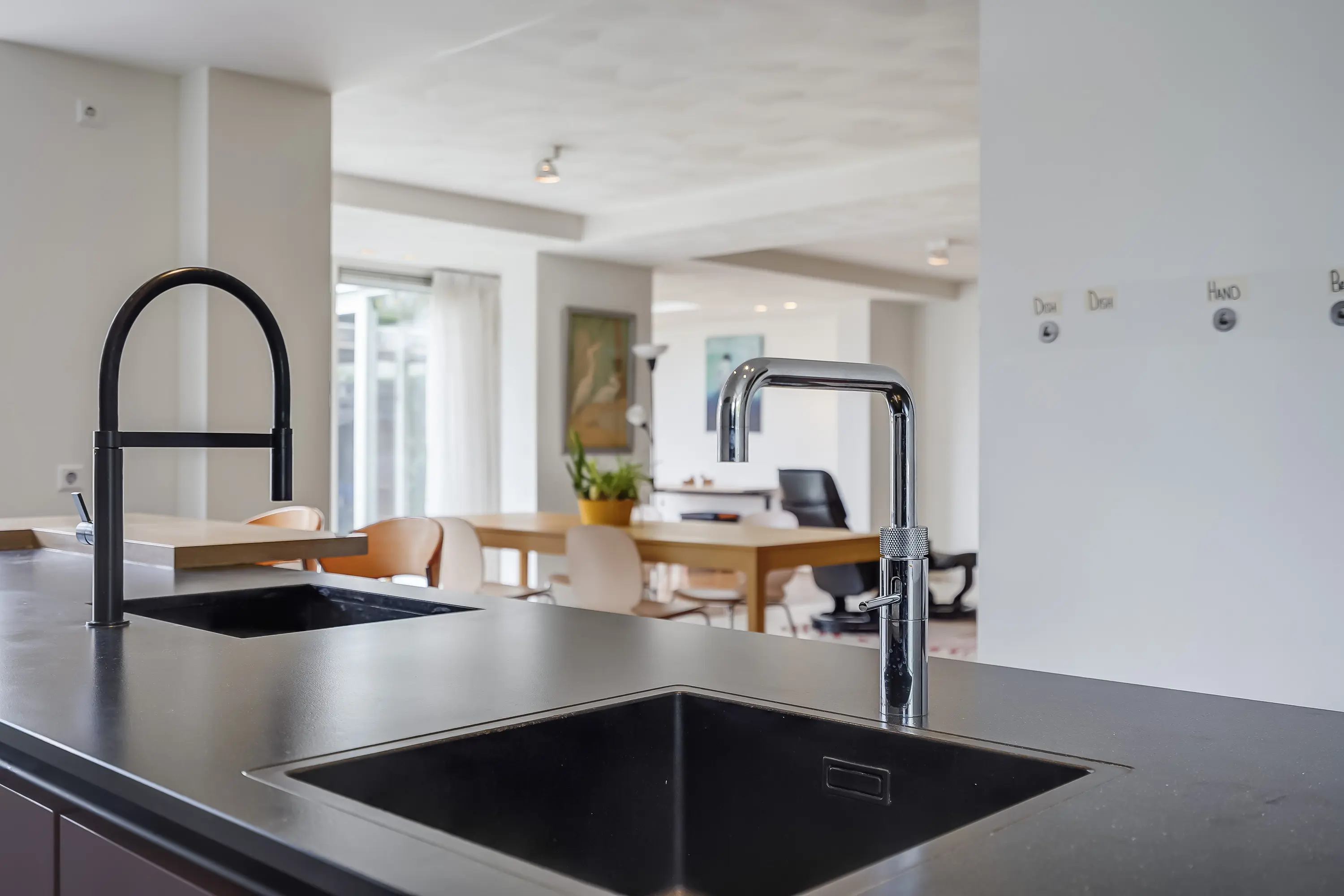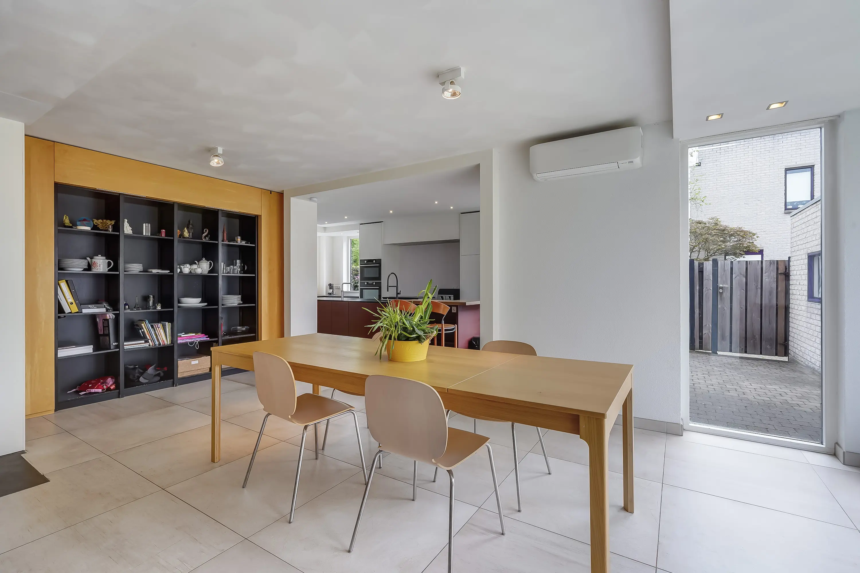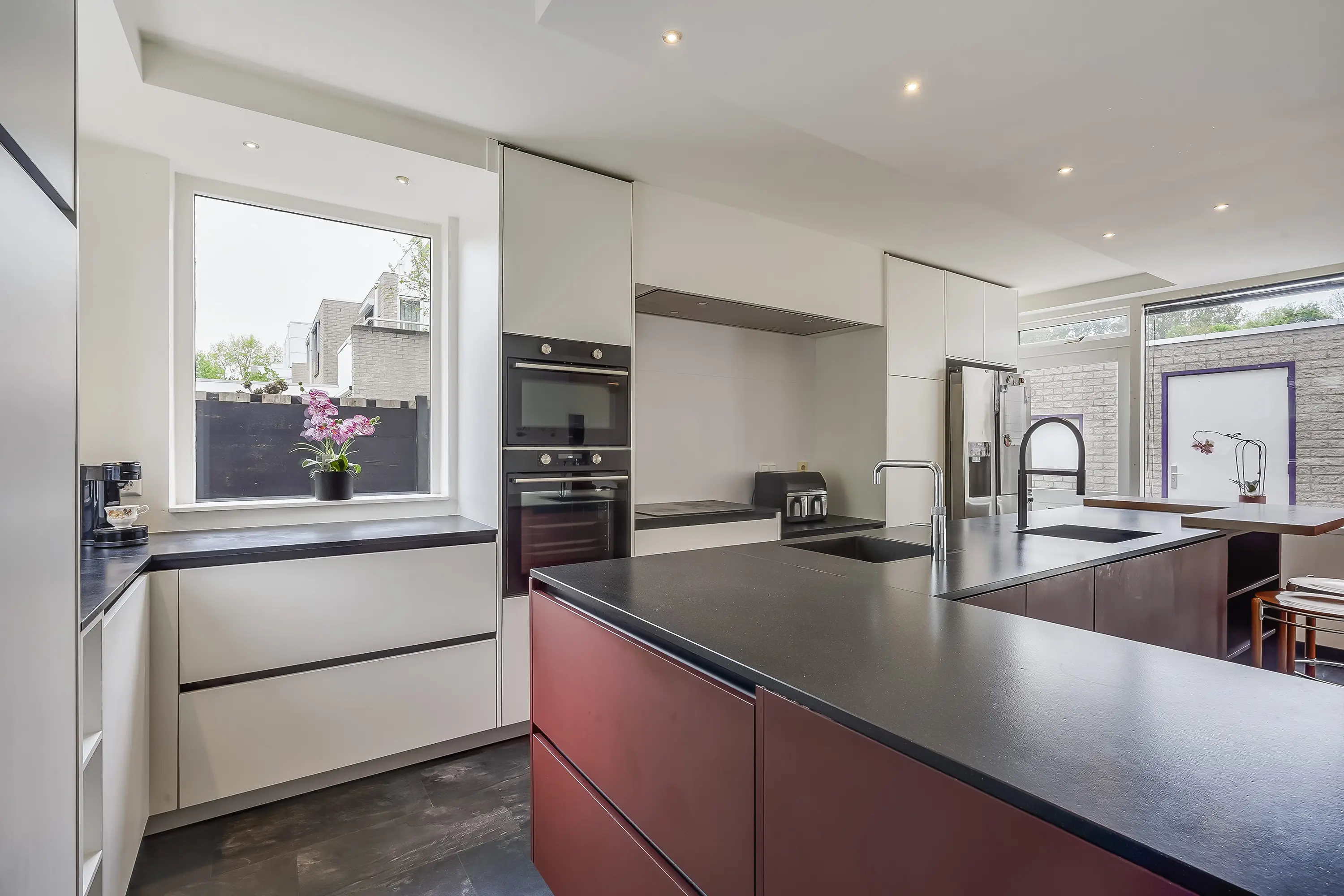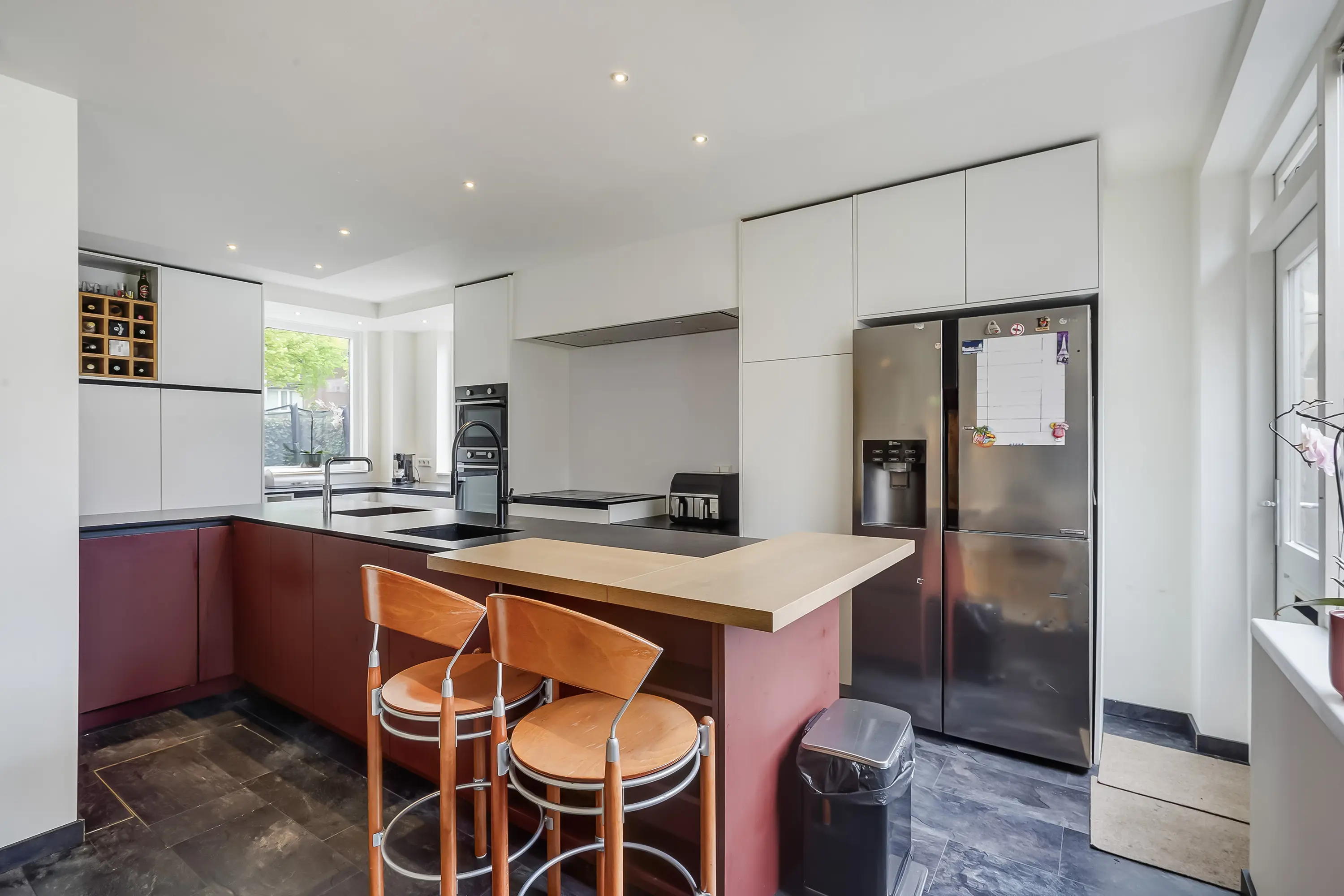 De royale woonkamer is aan de achterzijde uitgebouwd en voorzien van een lichtkoepel, wat zorgt voor een zee aan daglicht. Tevens is de woonkamer voorzien van een airiconditioning .Een stijlvolle glazen deur verbindt de hal met de living. De moderne en luxe keuken (2021) is een droom voor kookliefhebbers: twee spoelbakken, een Quooker, composiet werkblad, combimagnetron én oven, inductiekookplaat, vaatwasser en koel-vriescombinatie.