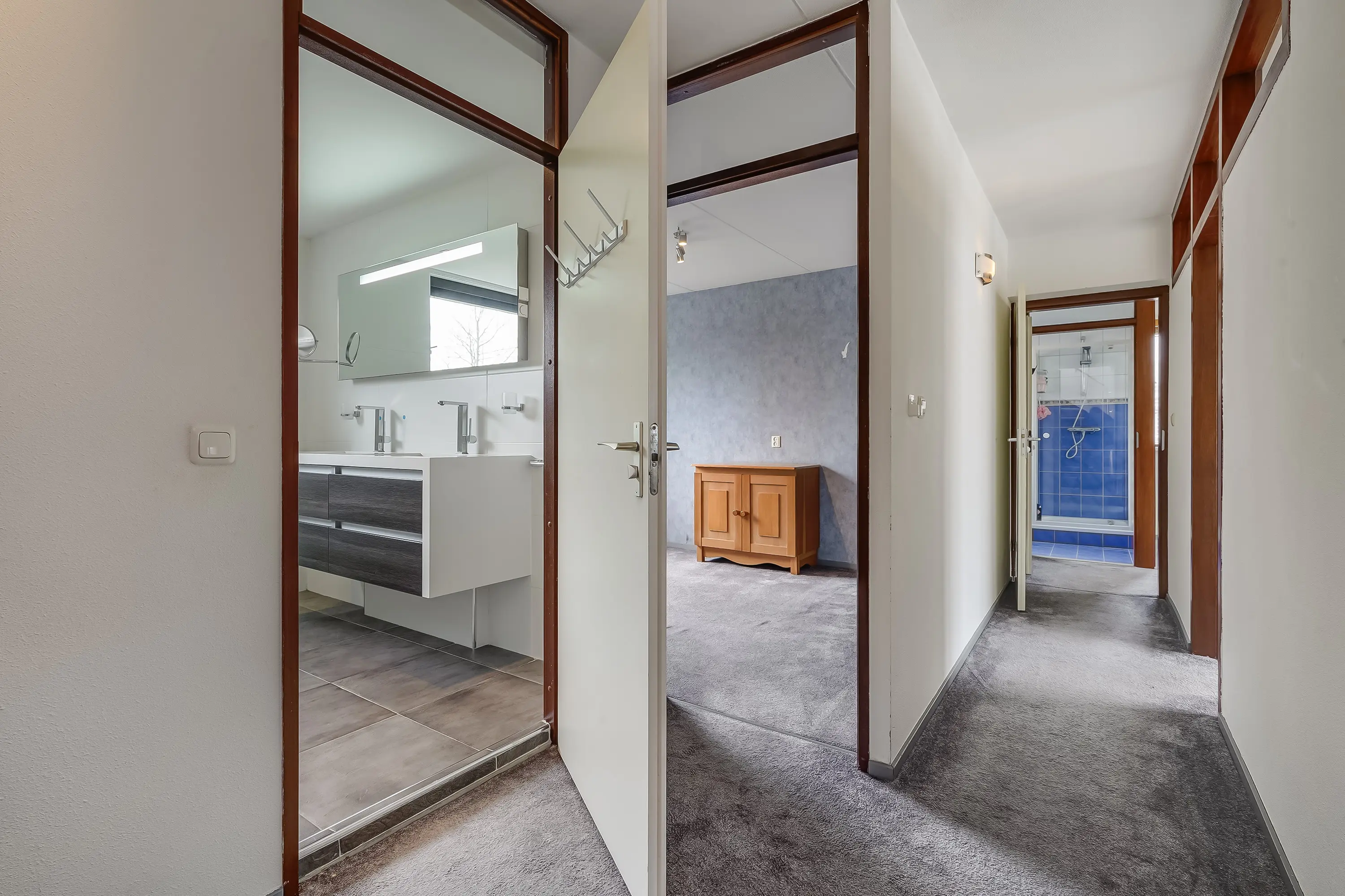 Bij binnenkomst stap je in de lichte hal met toegang tot de woonkamer, keuken, slaapkamer en een complete badkamer (2021) met inloopdouche, toilet en wastafelmeubel. De slaapkamer op de begane grond maakt de woning ook geschikt voor minder validen of gasten.
