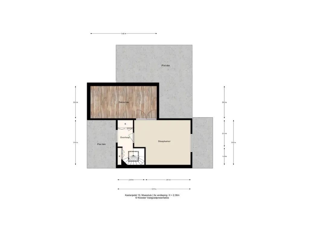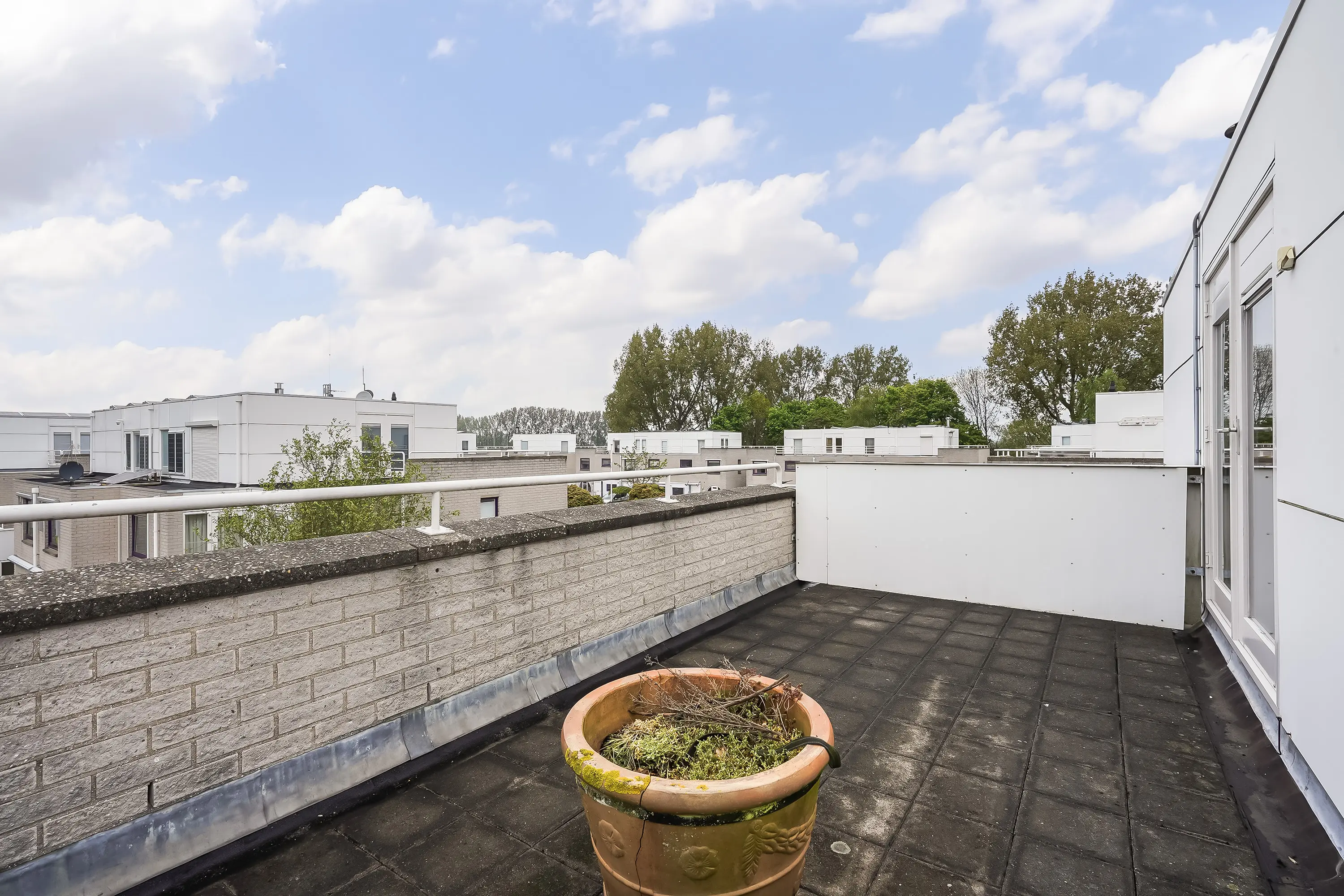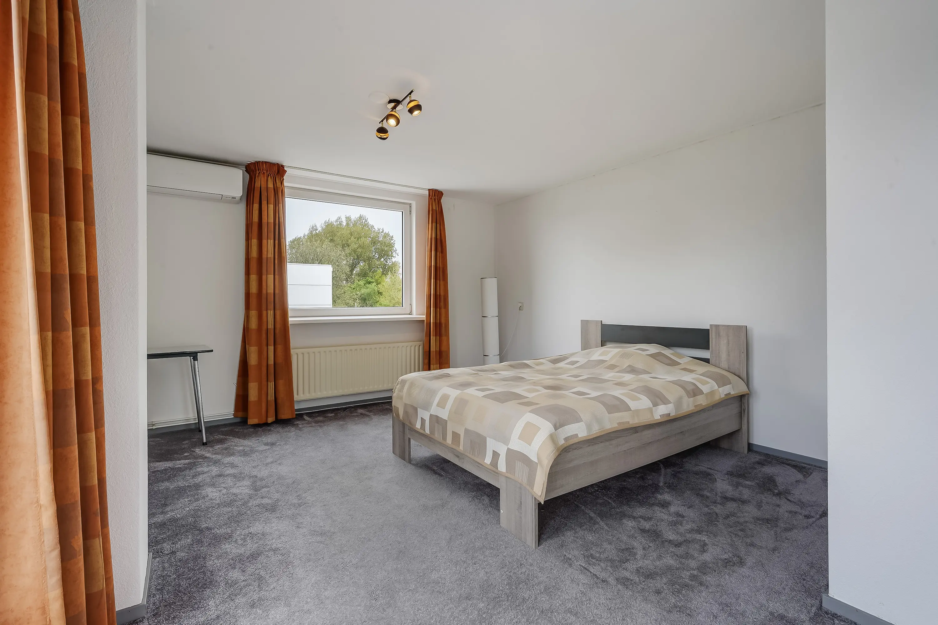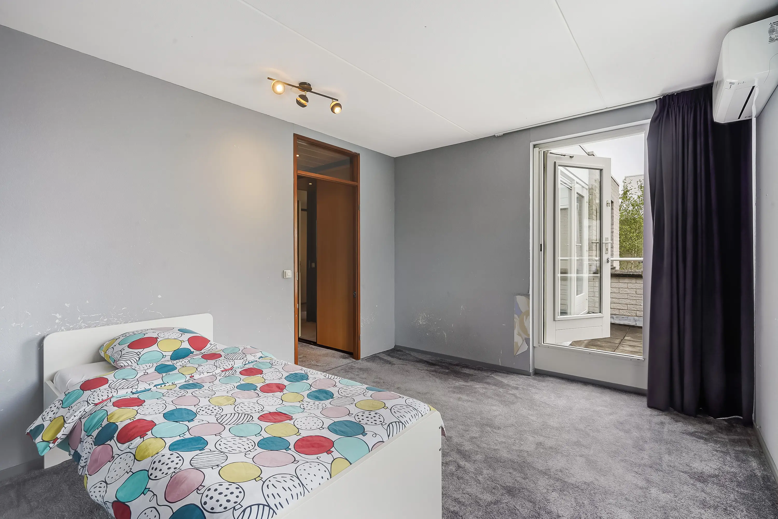 De overloop geeft toegang tot een zesde, ruime slaapkamer met openslaande deuren naar een groot zonnig dakterras. Tevens heeft deze slaapkamer heeft ook een airconditioning. Ook vind je hier de opstelplaats voor de CV-ketel.