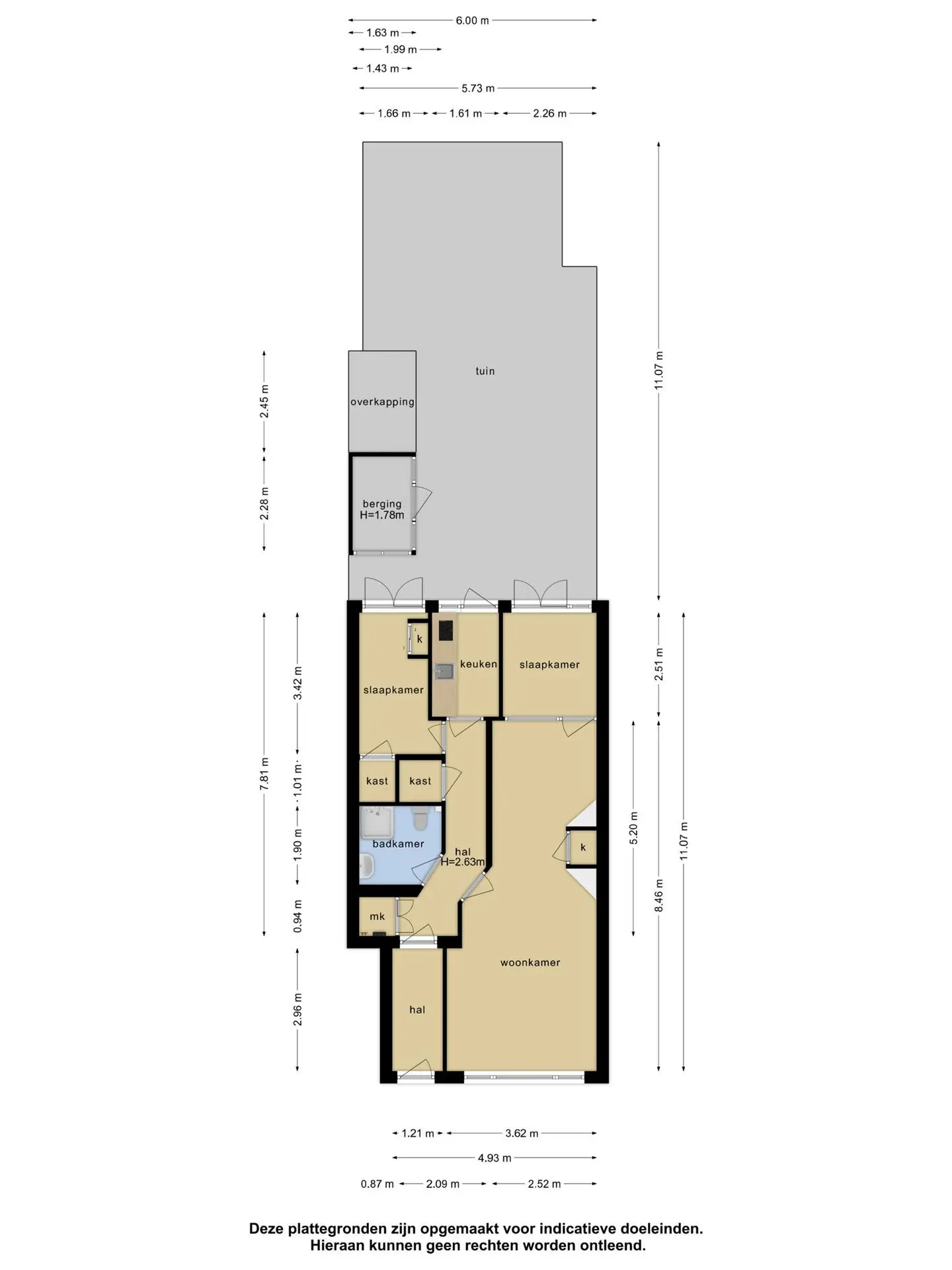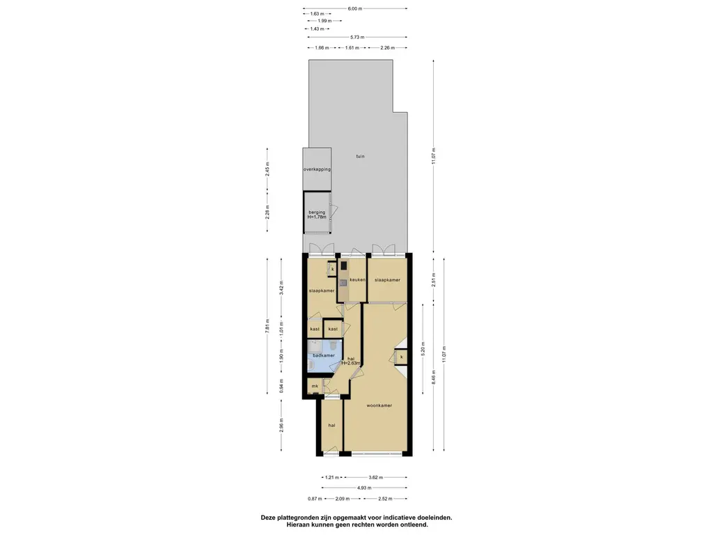 De woning beschikt over een ruime woonkamer, twee slaapkamers, een dichte keuken en een badkamer met douche en toilet. De achtertuin is bereikbaar vanuit de slaapkamers én de keuken – ideaal voor wie houdt van buitenleven in eigen tuin.