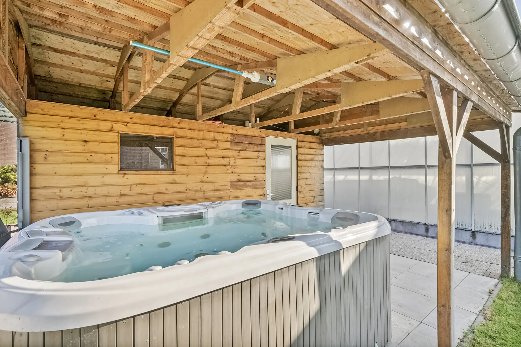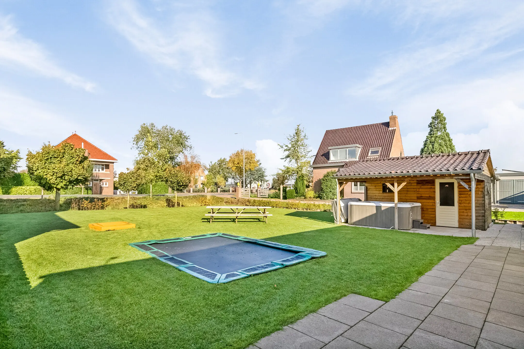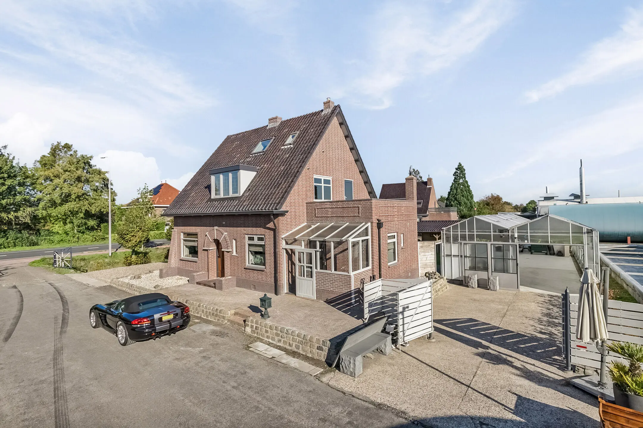 De riante tuin is deels bestraat en biedt veel zon en ruimte voor meerdere zitplekken of parkeergelegenheid. Een echte eyecatcher is de indrukwekkende druivenkas/garage van ca. 132 m², gelegen op agrarische grond – ideaal voor hobbyisten of extra opslag.