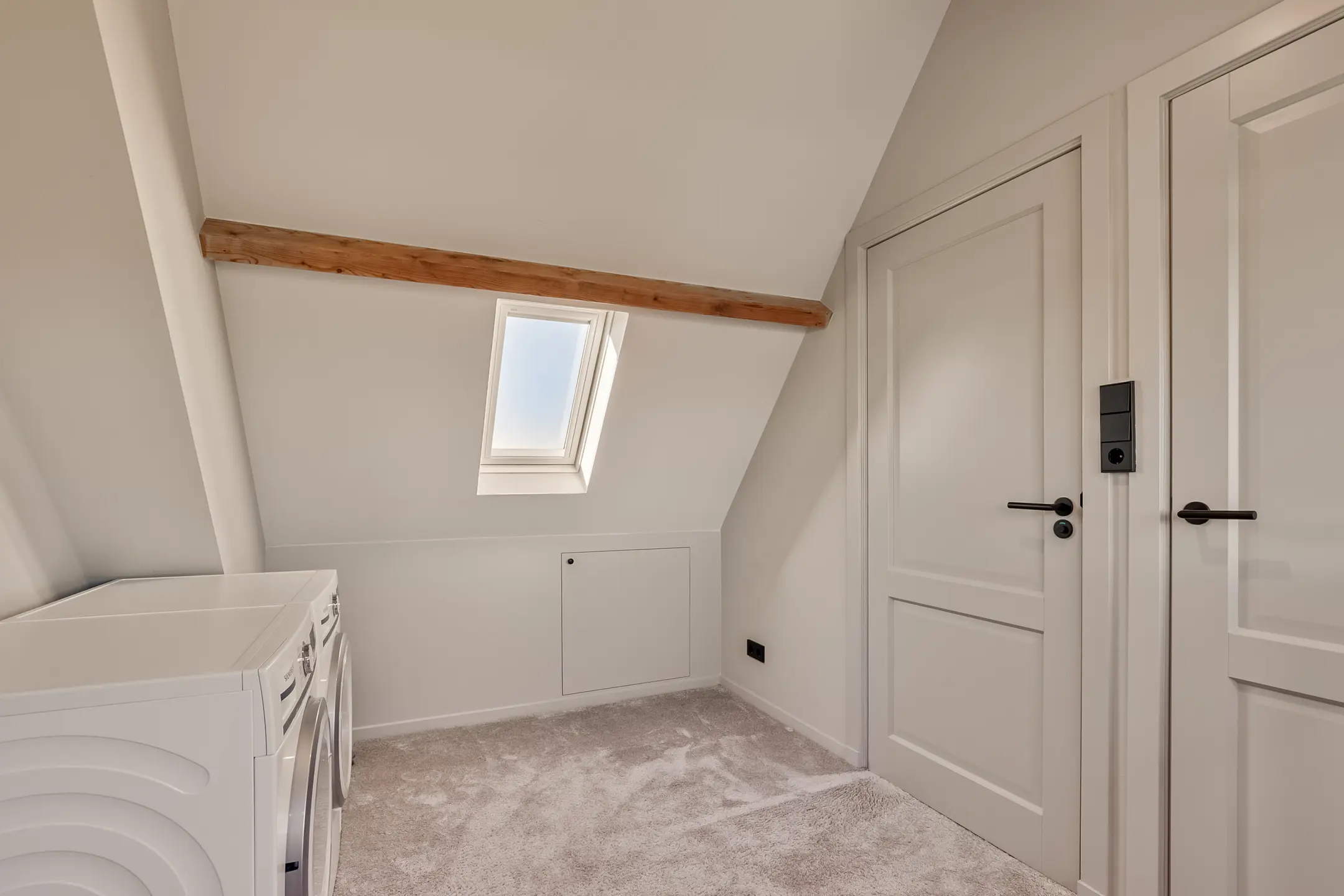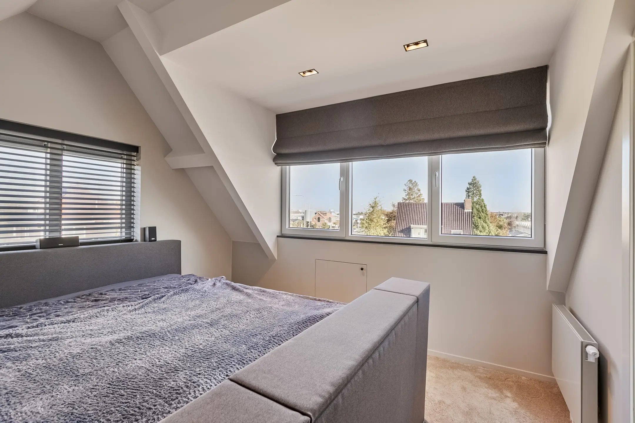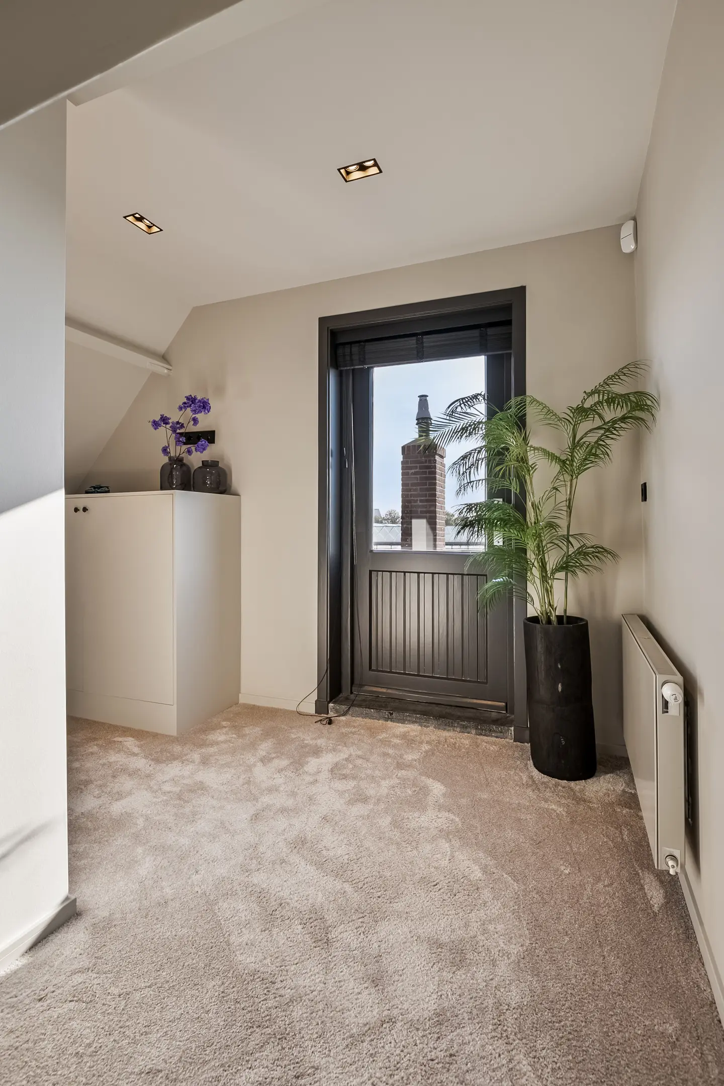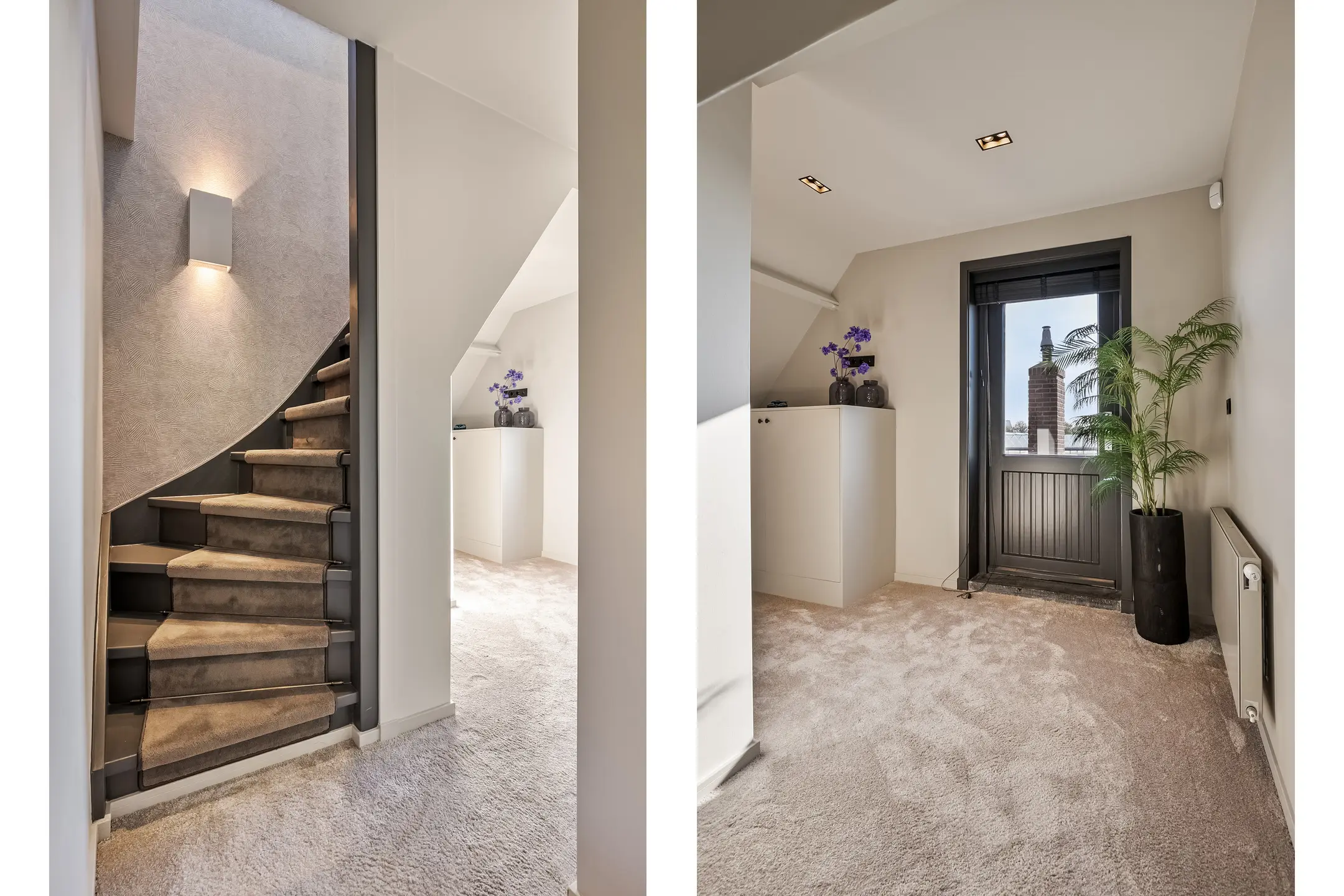 Op de 1e verdieping vindt u drie stijlvol afgewerkte slaapkamers en een moderne badkamer met luxe afwerking, waaronder een regendouche en Gessi kranen. Het ruime dakterras van ca. 16 m² ligt op het zuidoosten en biedt prachtig uitzicht – ideaal voor een borrel in de zon.