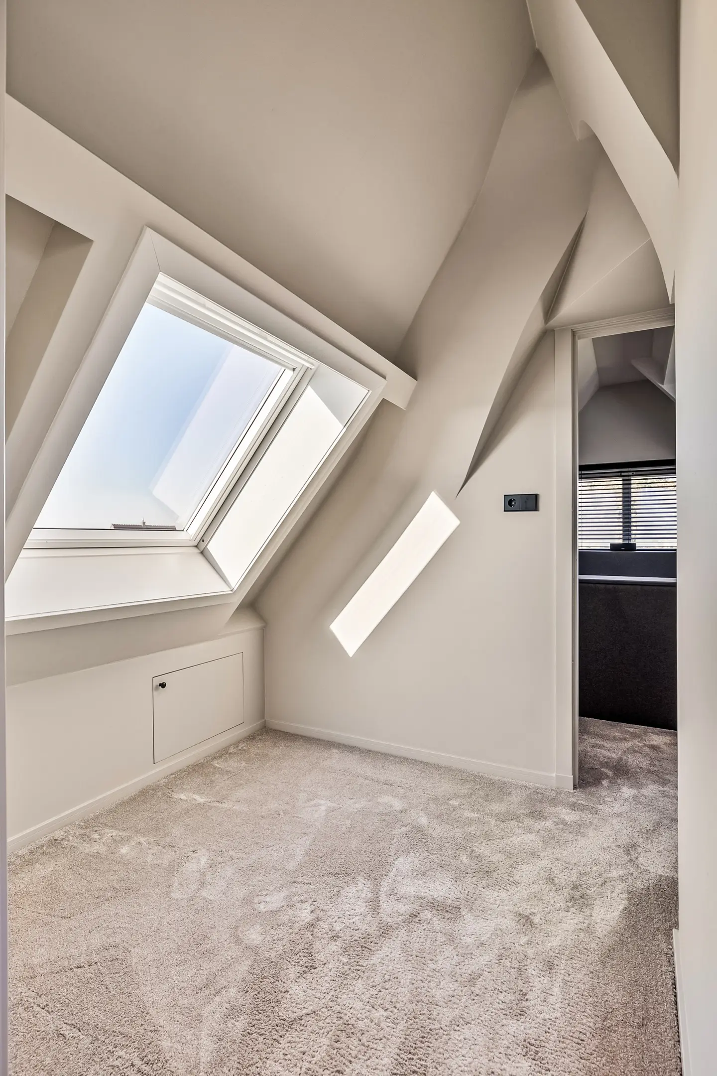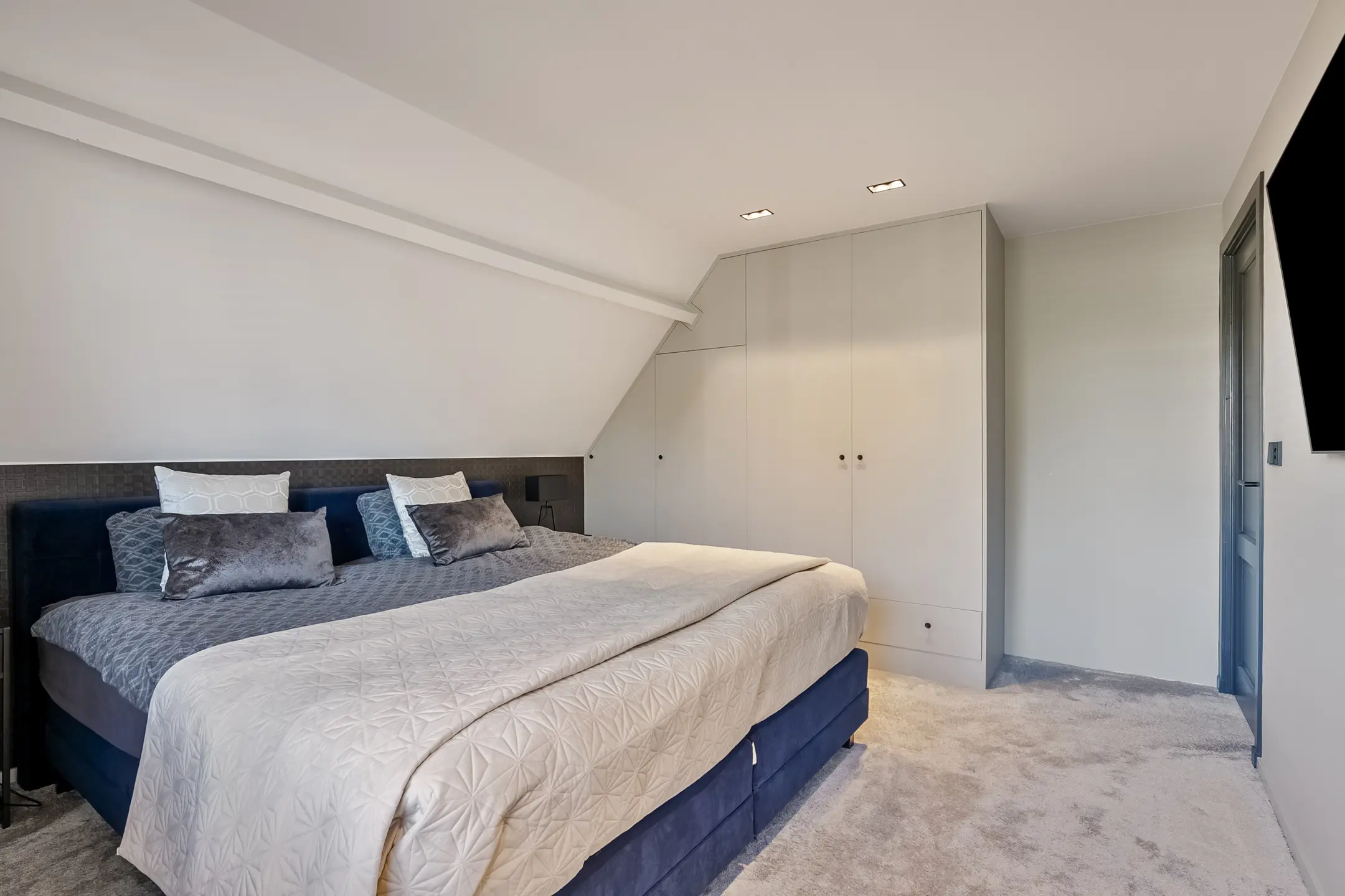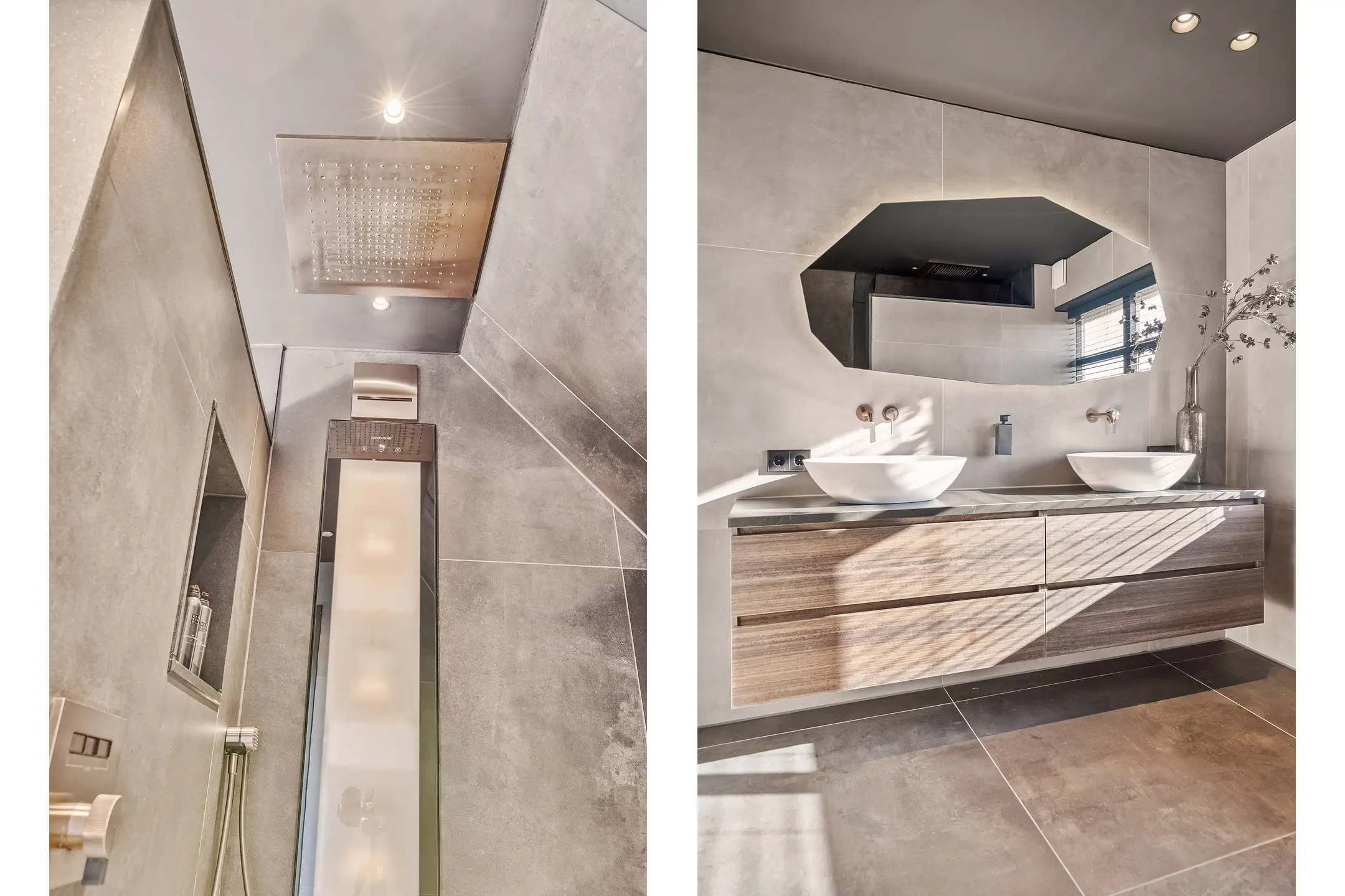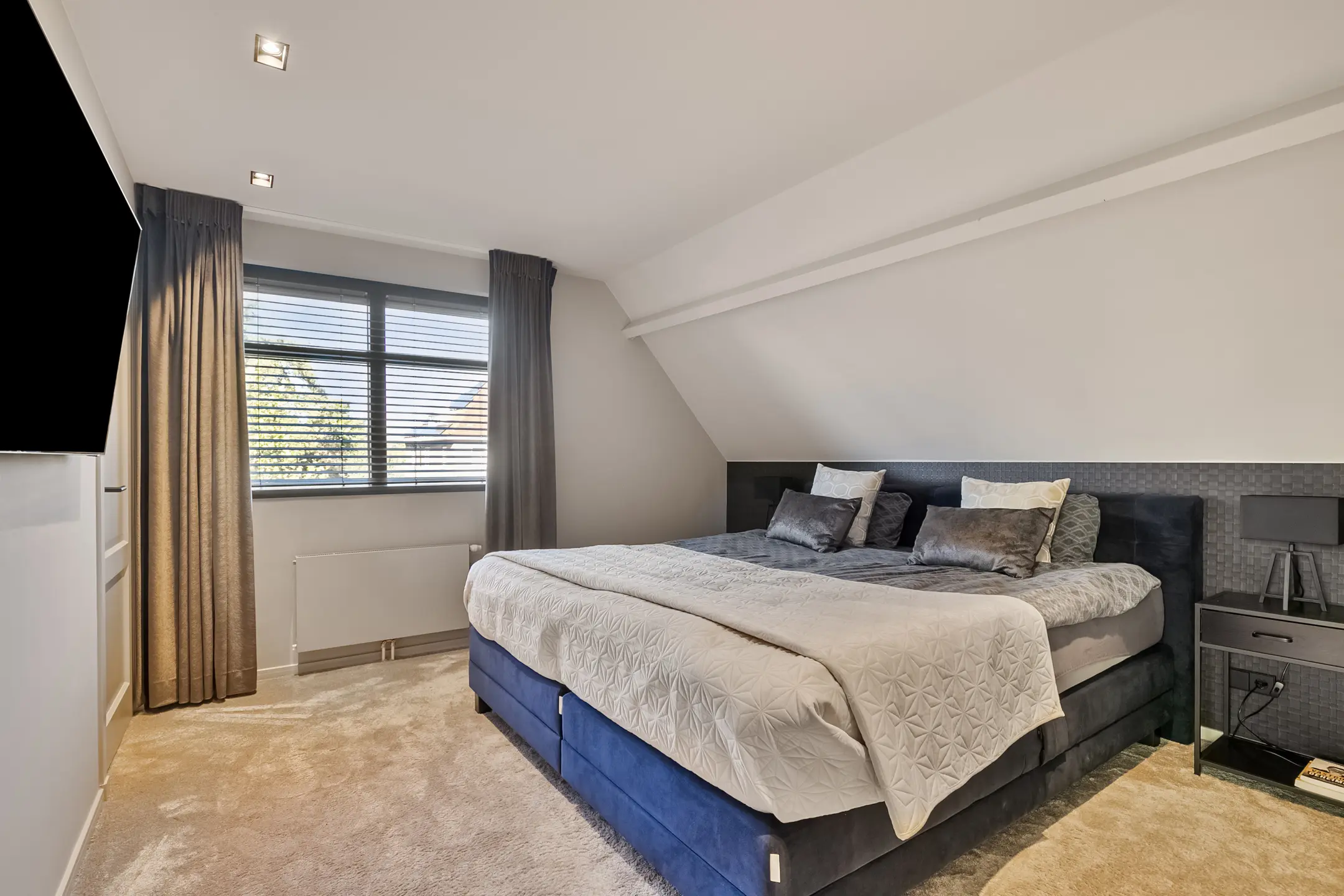 Op de 1e verdieping vindt u drie stijlvol afgewerkte slaapkamers en een moderne badkamer met luxe afwerking, waaronder een regendouche en Gessi kranen. Het ruime dakterras van ca. 16 m² ligt op het zuidoosten en biedt prachtig uitzicht – ideaal voor een borrel in de zon.