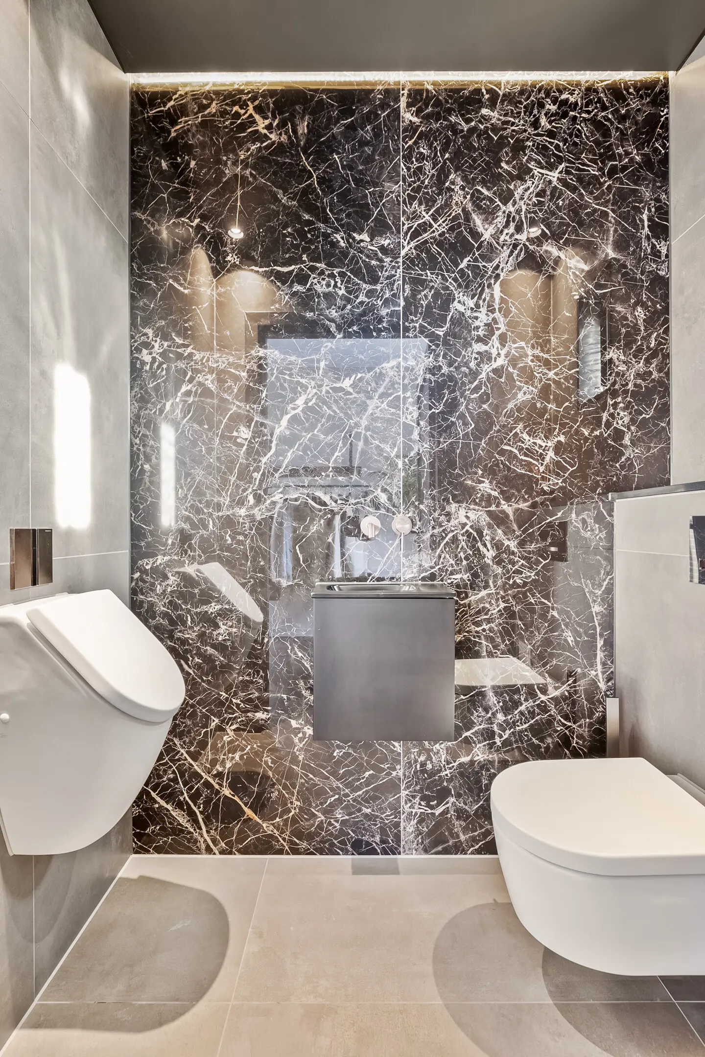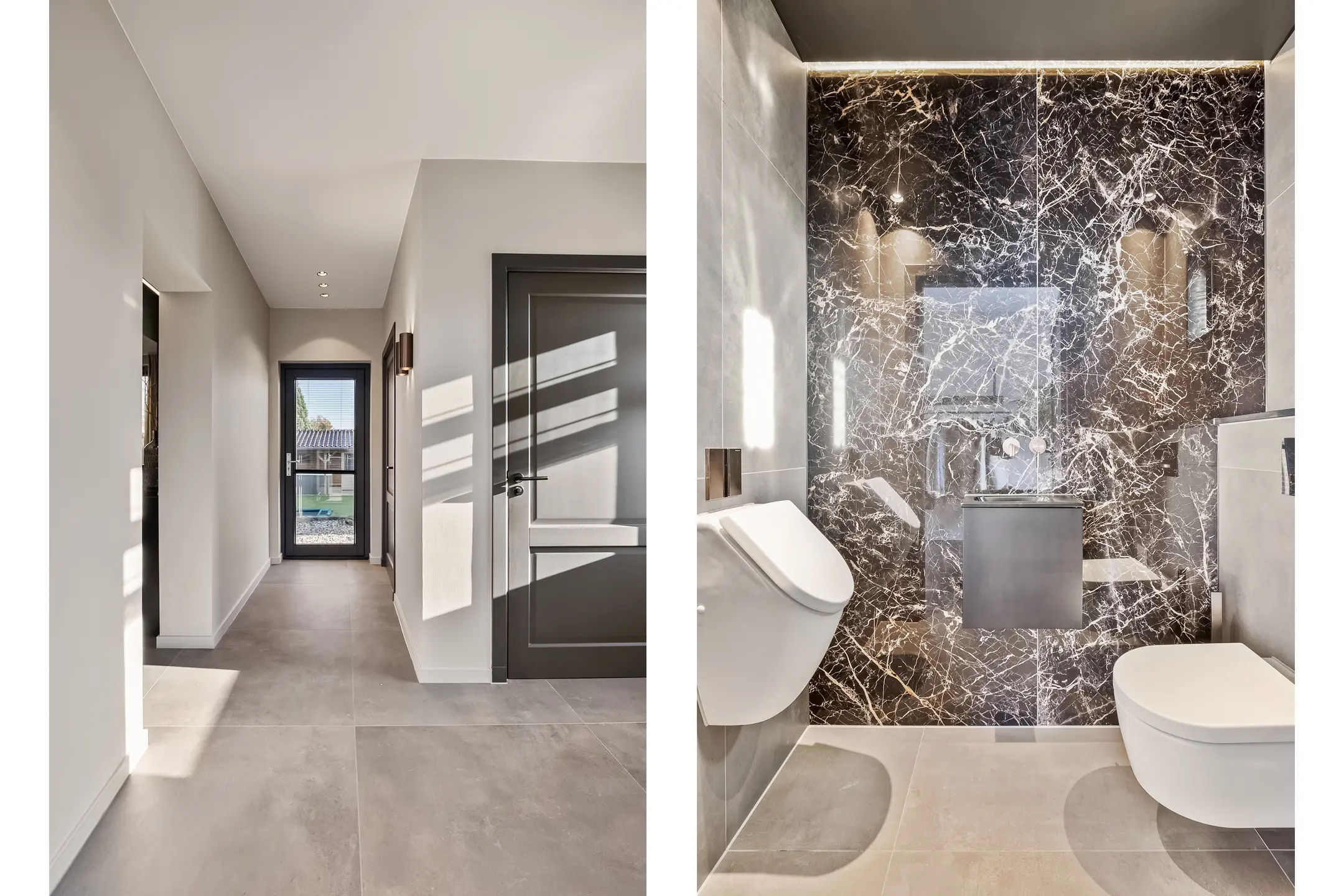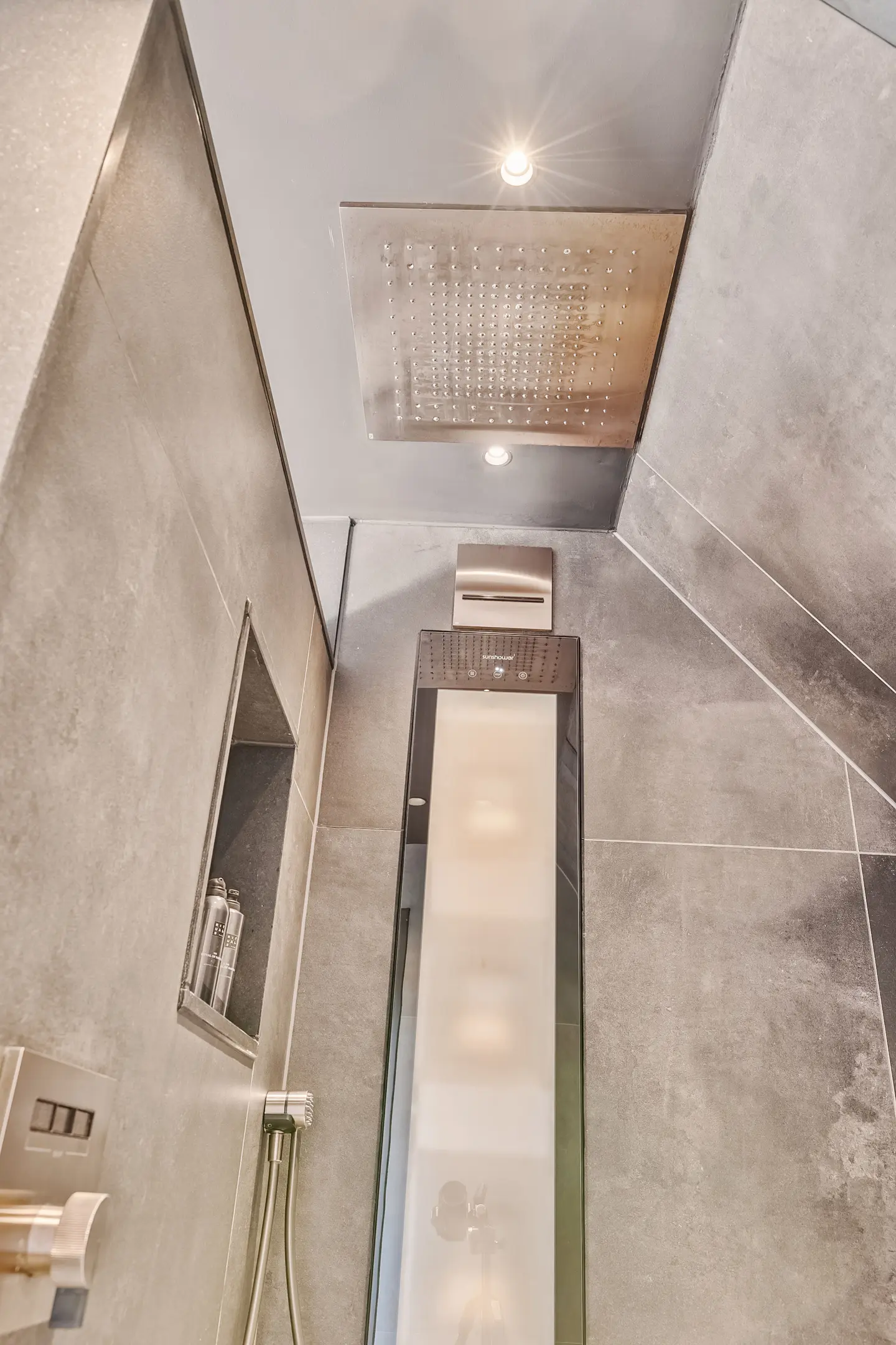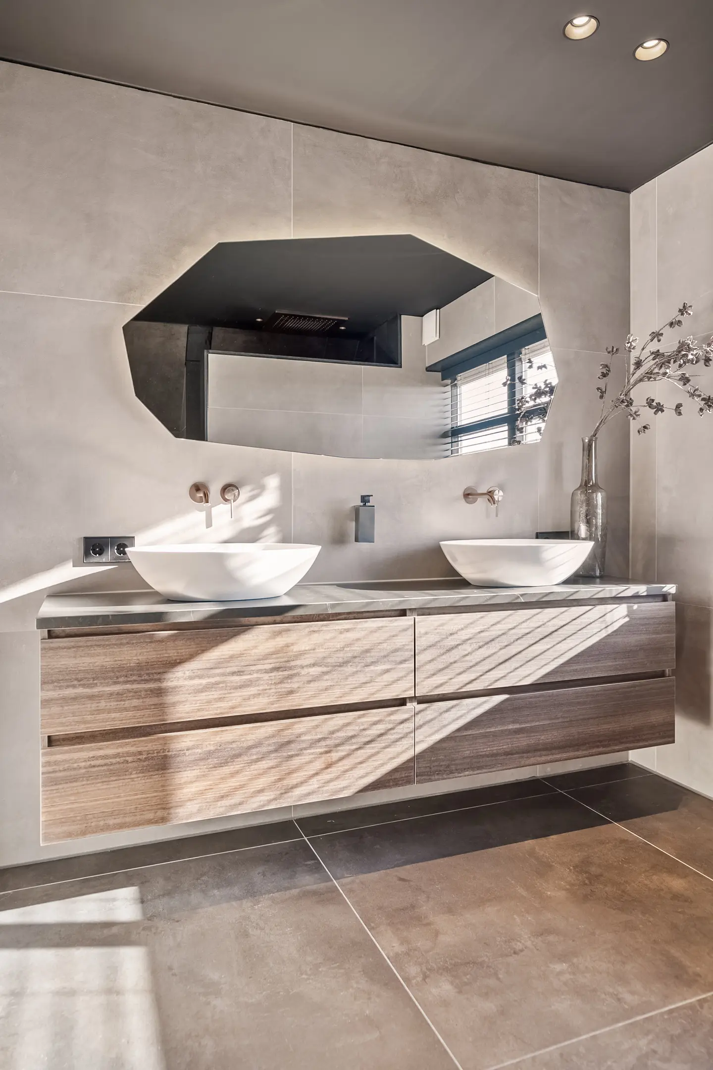 Op de 1e verdieping vindt u drie stijlvol afgewerkte slaapkamers en een moderne badkamer met luxe afwerking, waaronder een regendouche en Gessi kranen. Het ruime dakterras van ca. 16 m² ligt op het zuidoosten en biedt prachtig uitzicht – ideaal voor een borrel in de zon.
