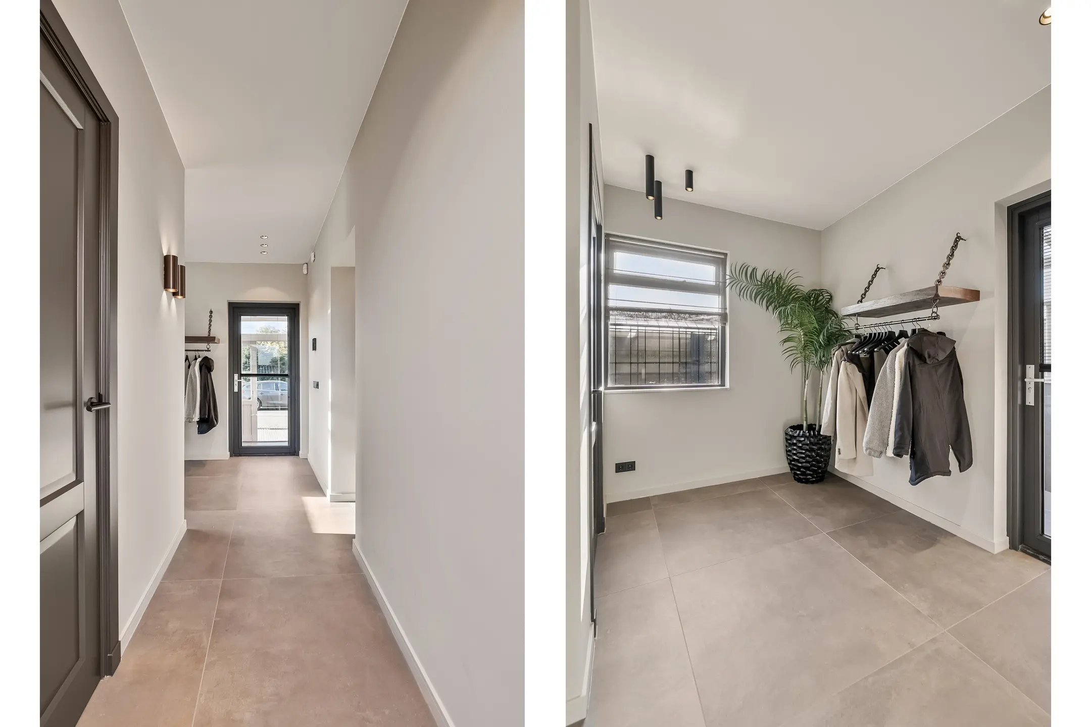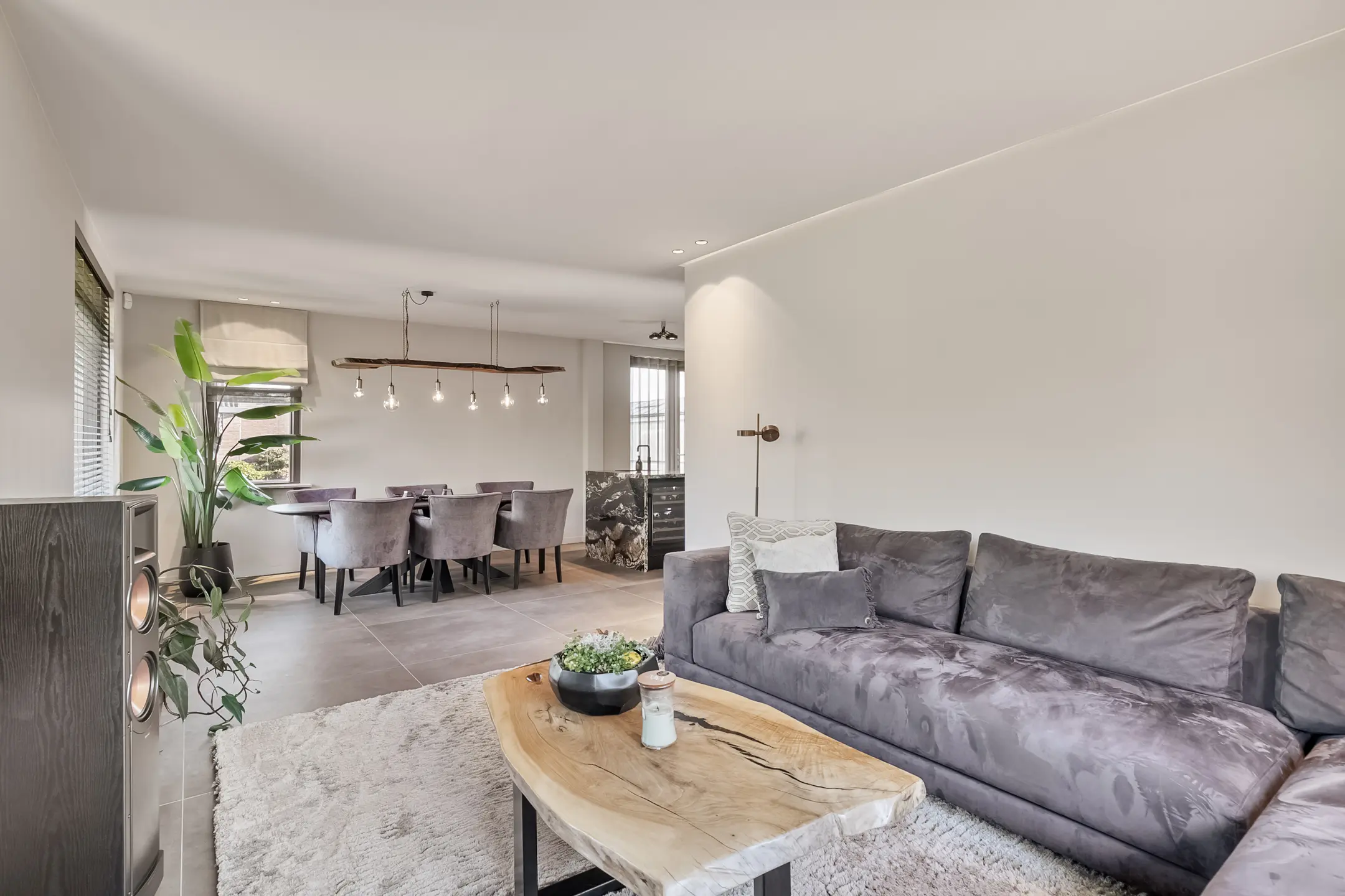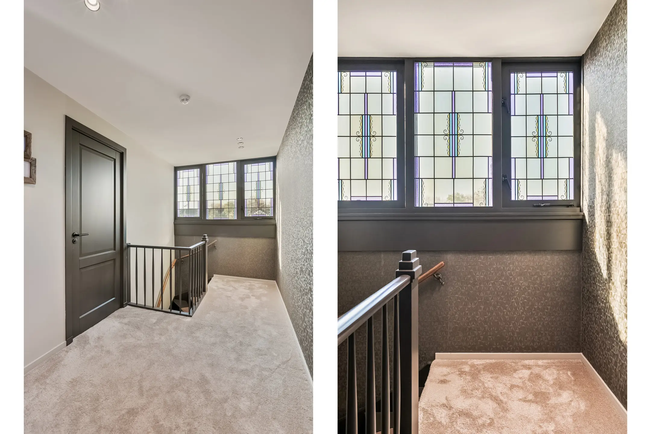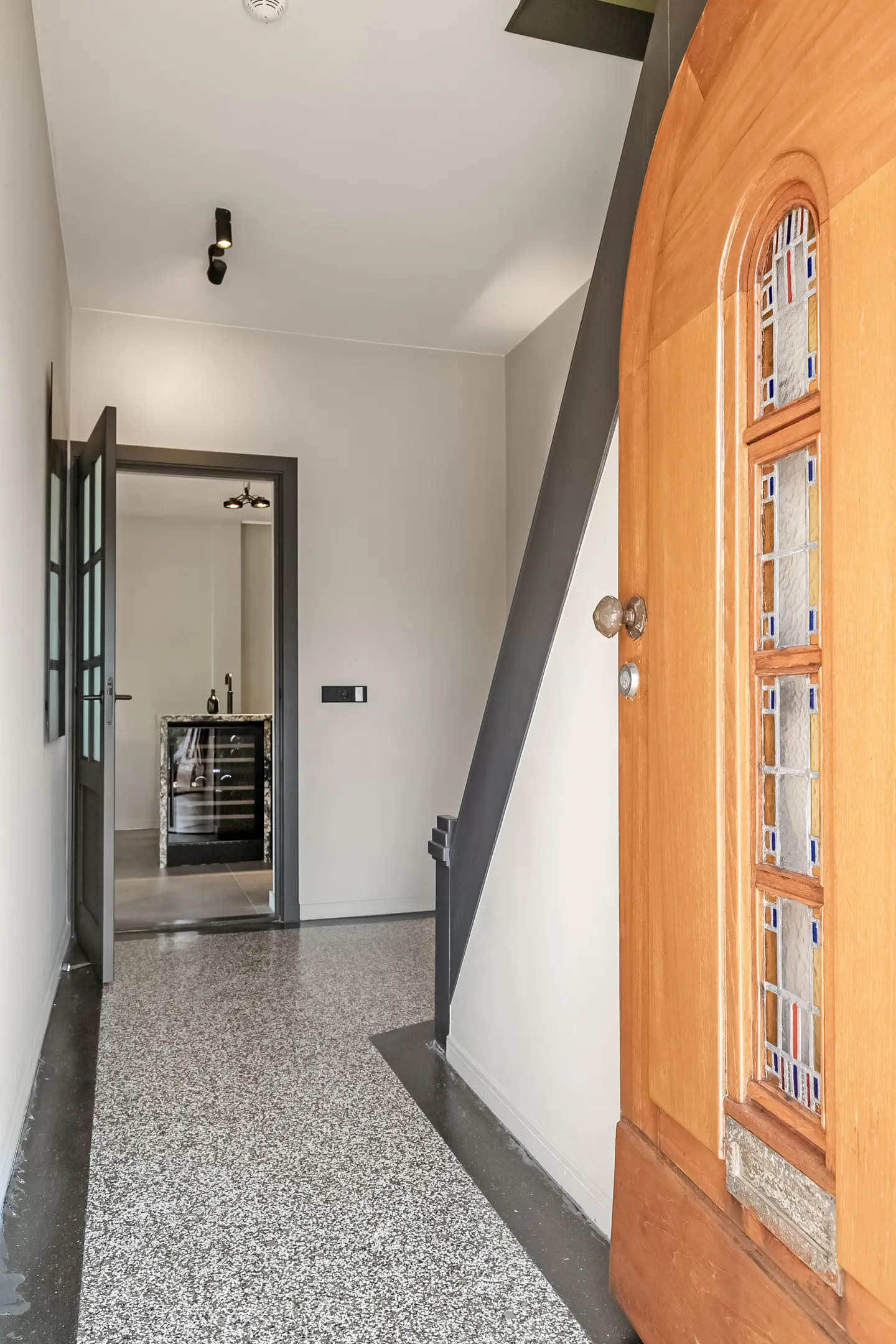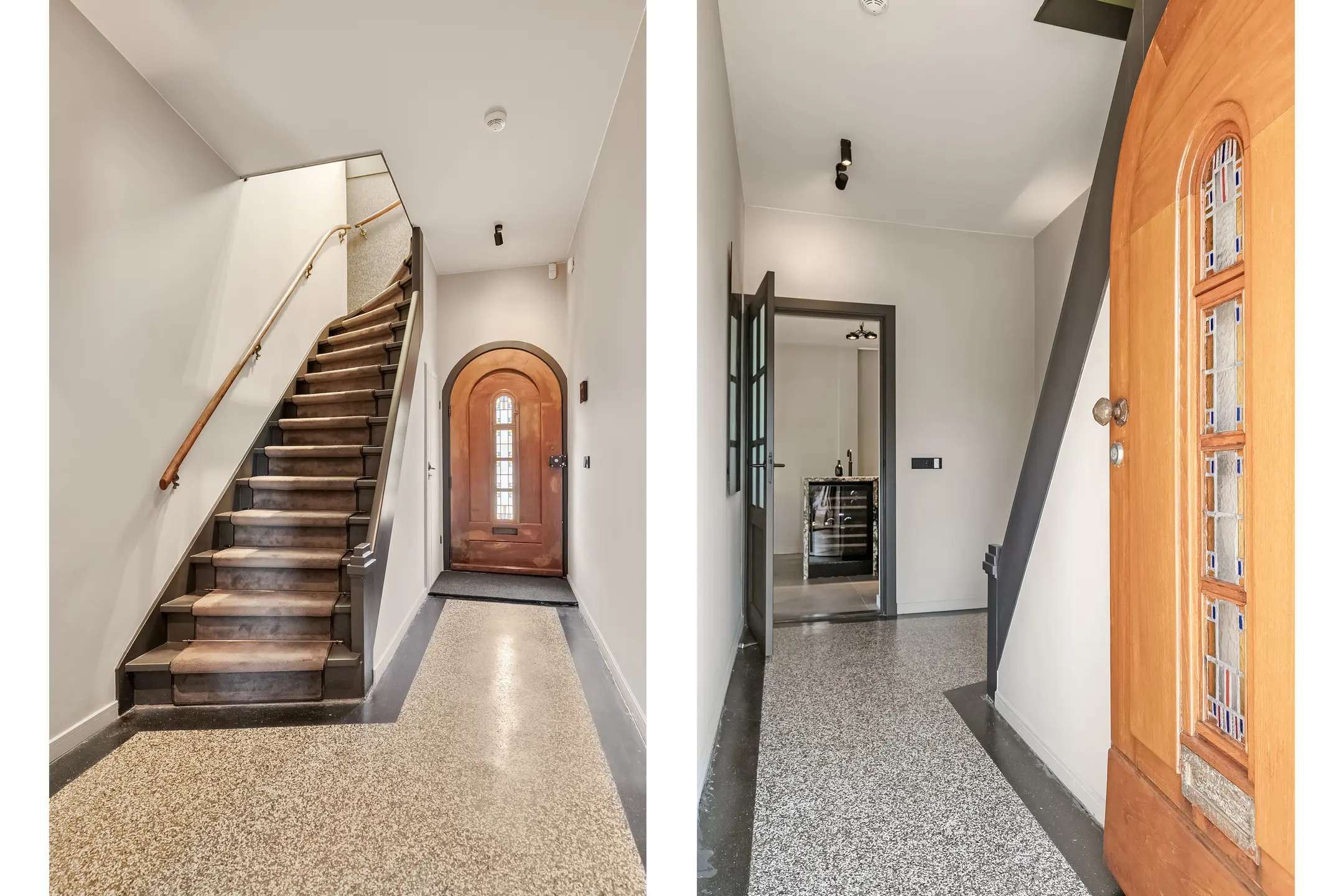 Met een woonoppervlakte van ca. 176 m², is deze woning met oog voor detail en gevoel voor stijl ingericht door een interieurstylist. U wordt verwelkomd in een charmante hal met garderobe en toegang tot de sfeervolle woonkamer van ca. 35 m². Hier vindt u prachtige glas-in-loodramen, een stijlvolle plavuizen vloer en een warme ambiance.