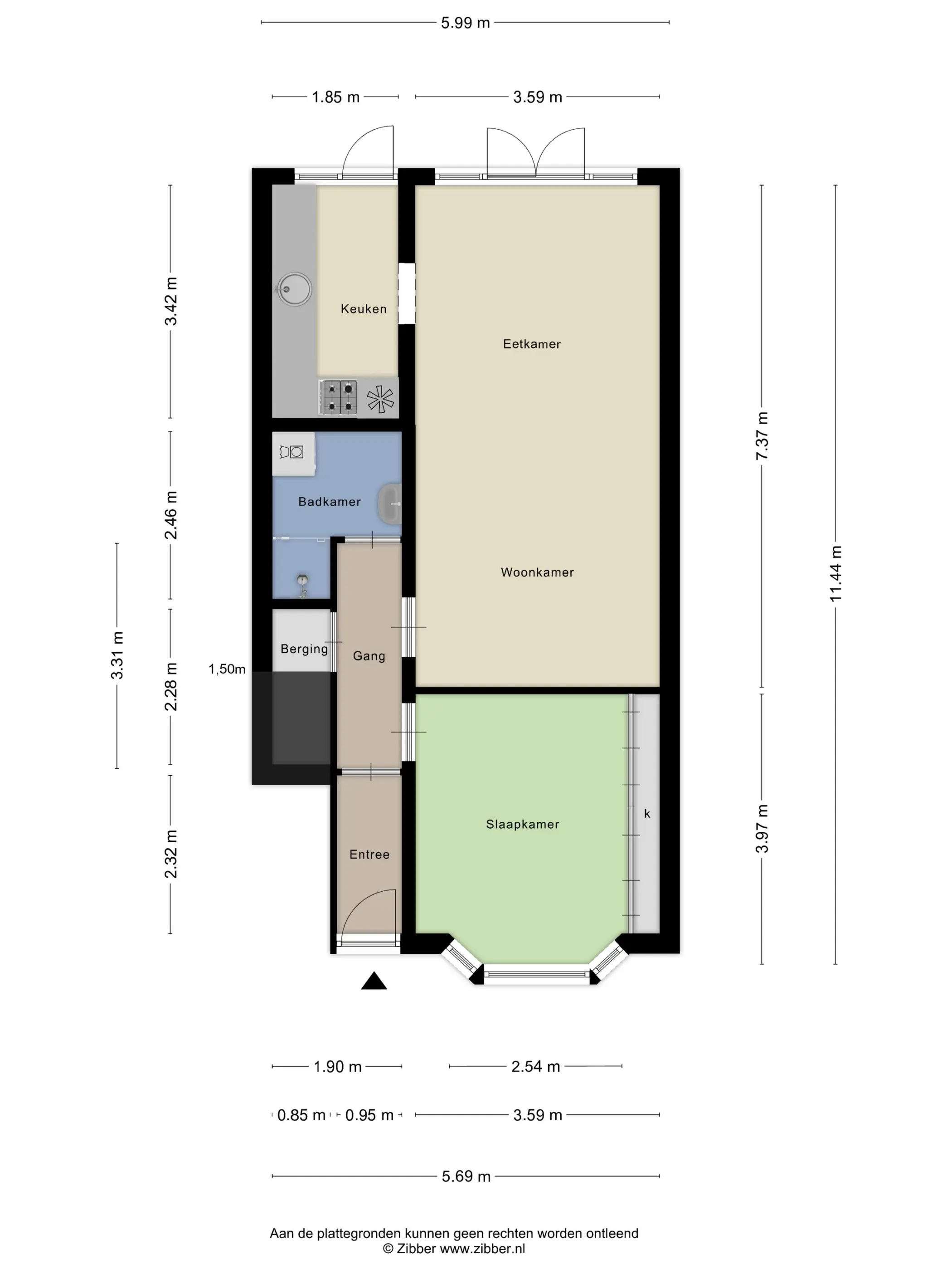De slaapkamer bevindt zich aan de voorzijde , De keuken kijkt uit op de tuin. een rustige plek om te slapen of te werken. De badkamer is netjes en compact. En dan de tuin: een zeldzame bonus bij een appartement als dit! Gelegen op het zuidwesten en groot genoeg voor een eettafel, loungehoek en planten – hier geniet je volop van het buitenleven.