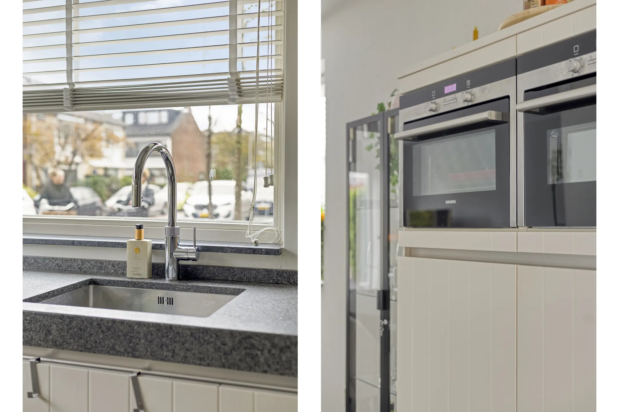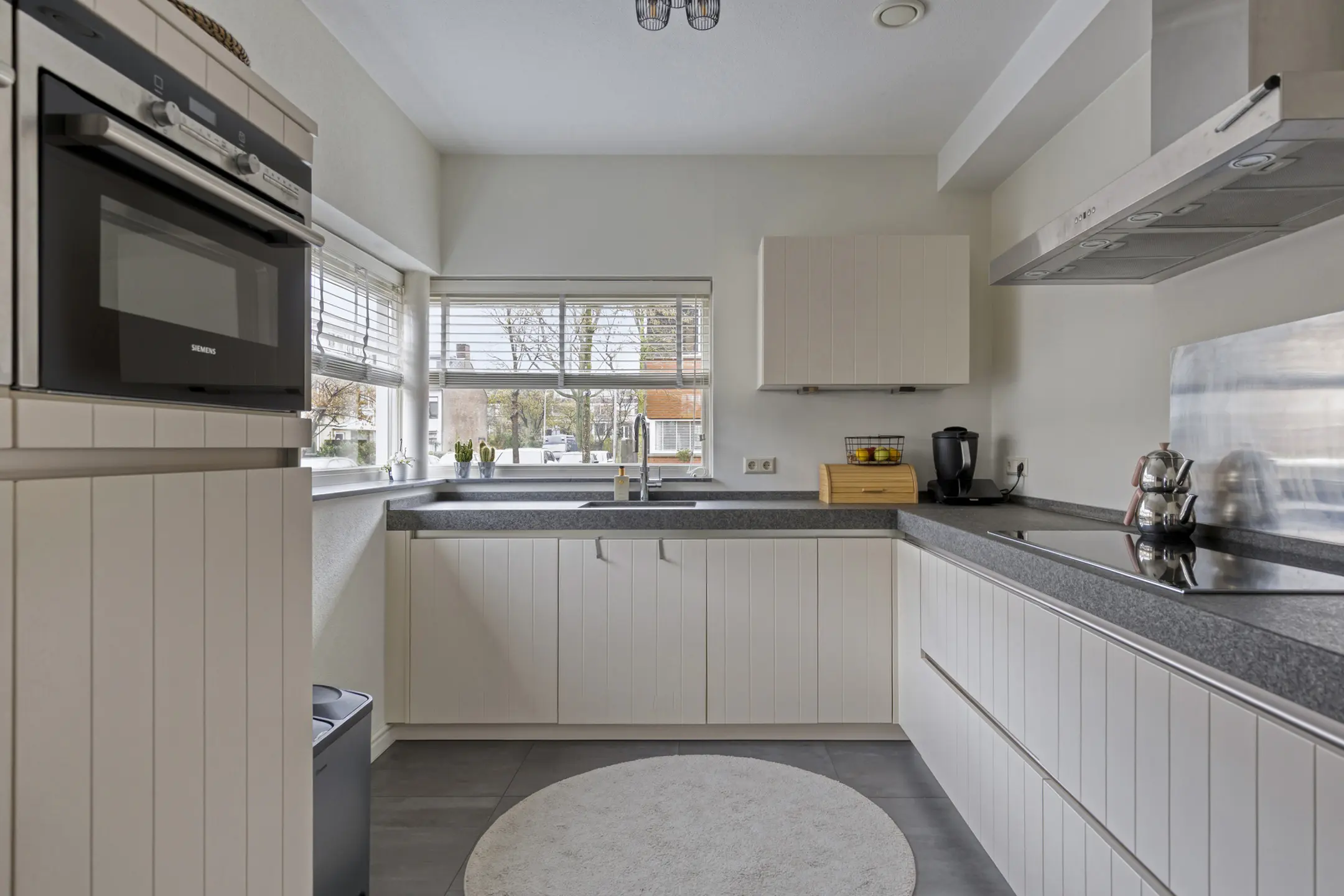 - Moderne open keuken, voorzien van diverse inbouwapparatuur. Veel lichtinval en leuk uitzicht door het voor- en zijraam;