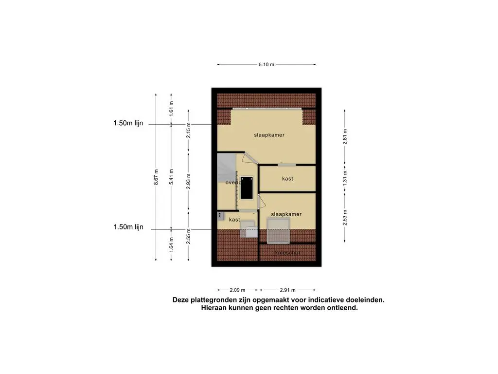 - De slaapkamer aan voorzijde is voorzien van een dakraam;