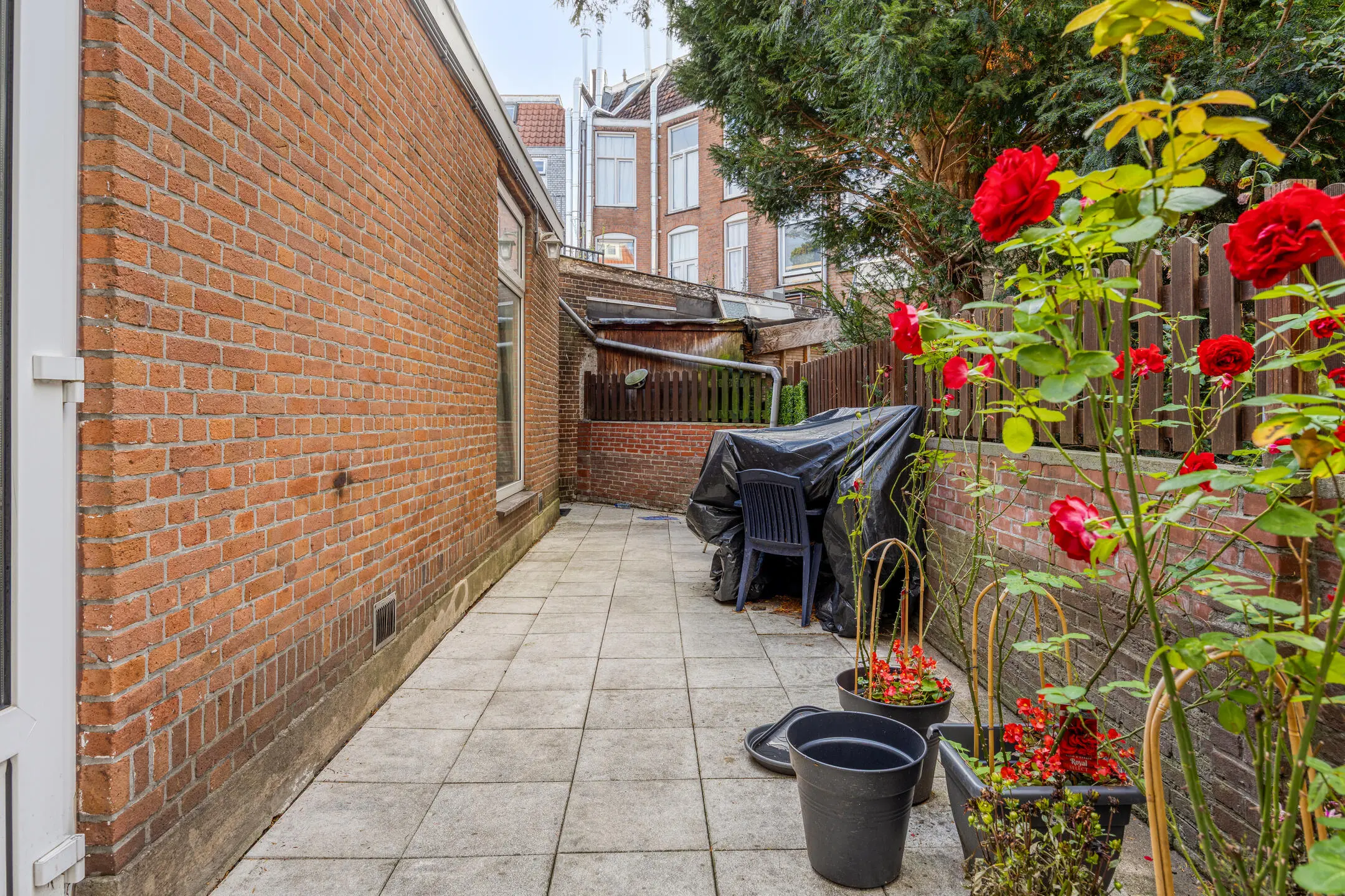 Achter de woning bevindt zich een diepe en zonnige achtertuin, waar je in alle rust kunt genieten van buitenleven in de stad.