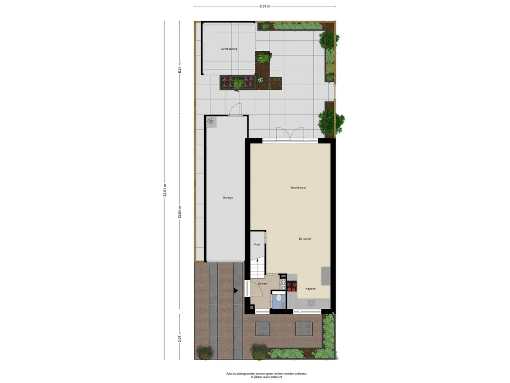 Bij aankomst valt direct de verzorgde voortuin op, met stijlvolle rode waalklinkers, een groene border en schaduwrijke dakplatanen boven de oprit. U parkeert hier altijd voor de deur – de luxe van een eigen oprit én verlengde garage.