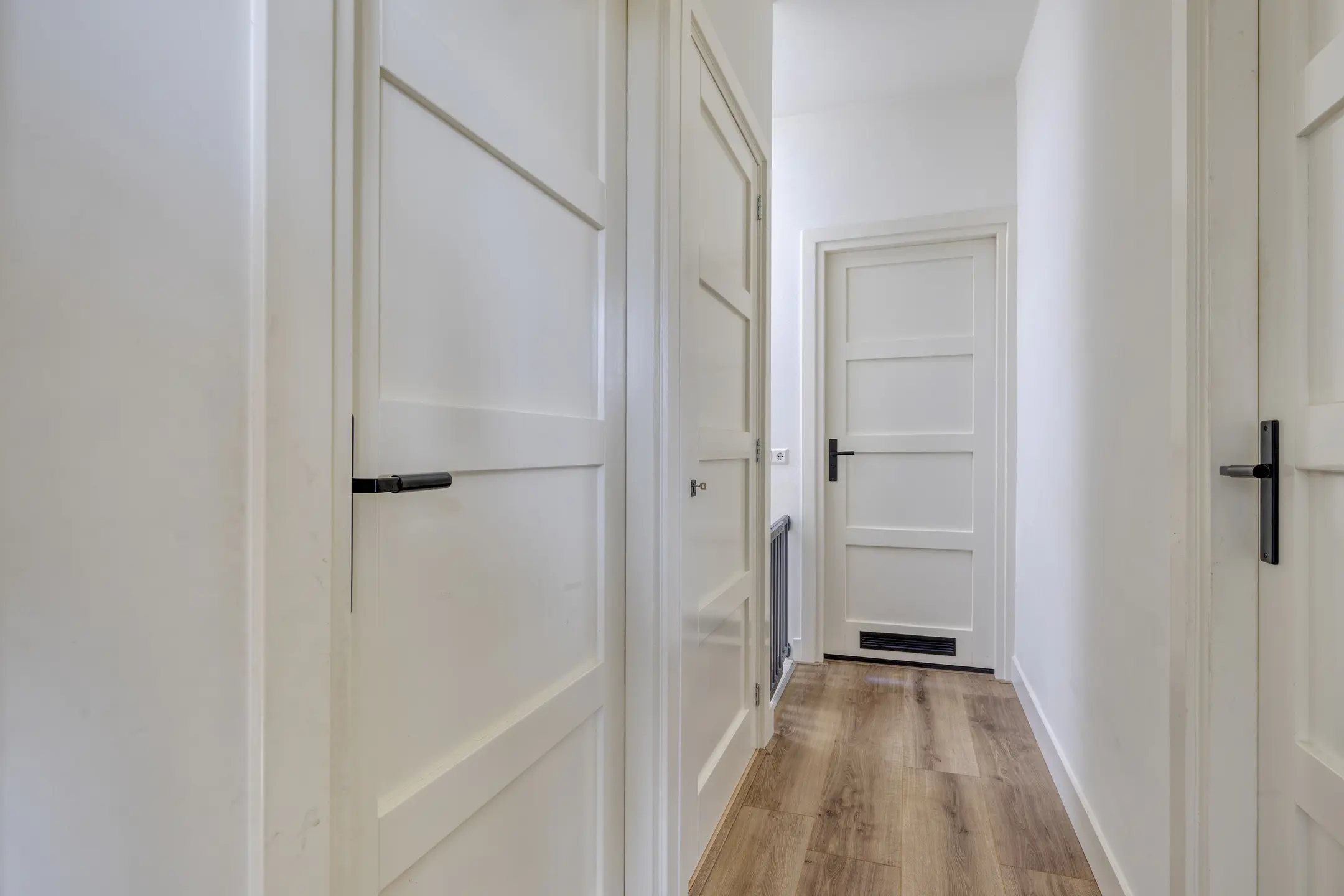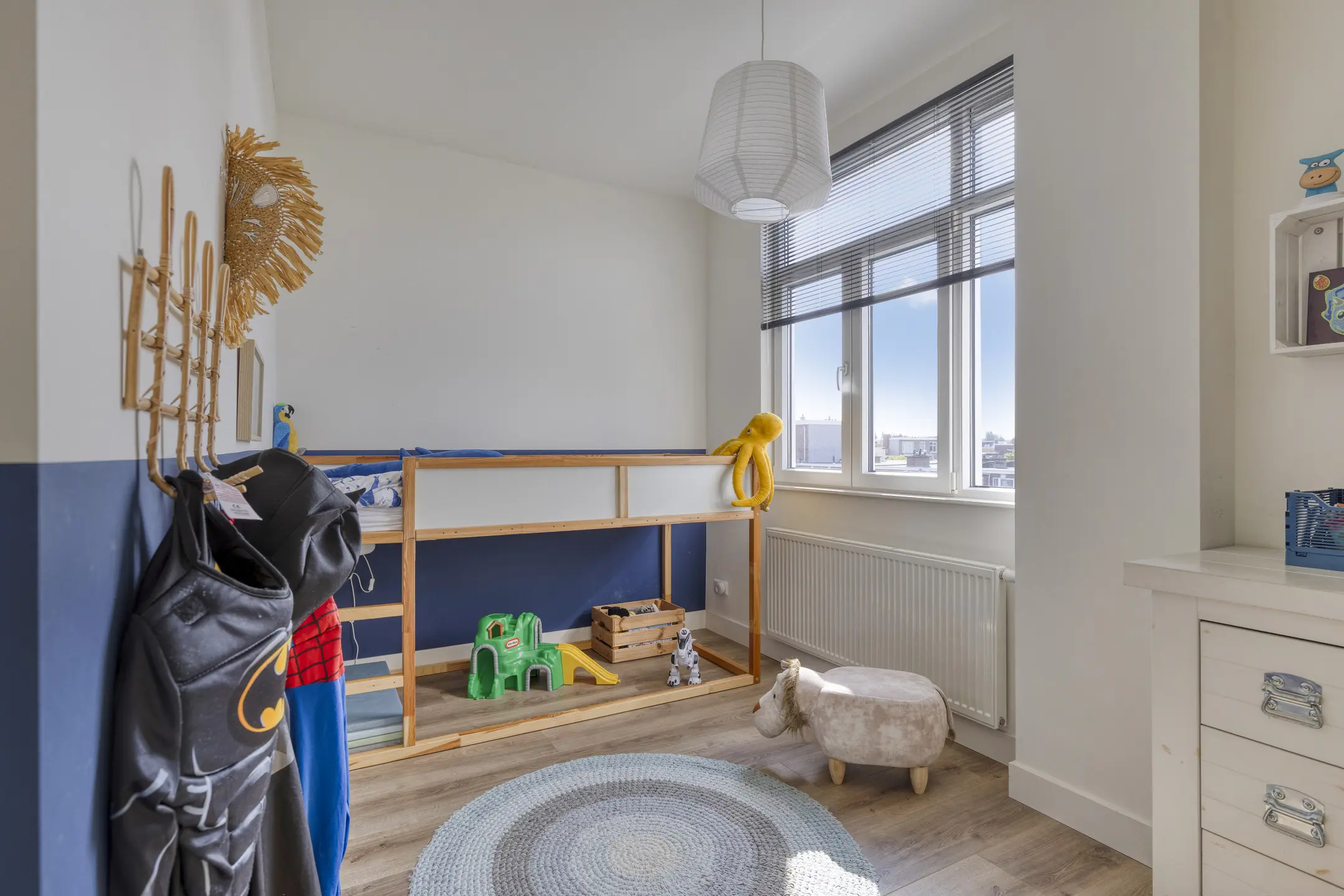 Aan de voorzijde van de eerste verdieping bevindt zich nog een slaapkamer die toegang geeft tot de tweede verdieping, welke in 2019 is gerealiseerd. Dankzij deze dakopbouw zijn er drie royale slaapkamers ontstaan van respectievelijk zestien, veertien en tien vierkante meter, alle keurig afgewerkt met een fraaie laminaatvloer. De overloop op deze verdieping biedt naast de toegang tot de kamers ook plaats aan de cv-ketel. Aan de voorzijde van de woning bevindt zich een moderne tweede badkamer, eveneens in 2019 gerealiseerd, half betegeld en voorzien van een wastafelmeubel, douche, tweede toilet en ligbad. Op deze verdieping vindt u bovendien een fraai dakterras aan de voorzijde, waar u tijdens de zomeravonden heerlijk kunt vertoeven.