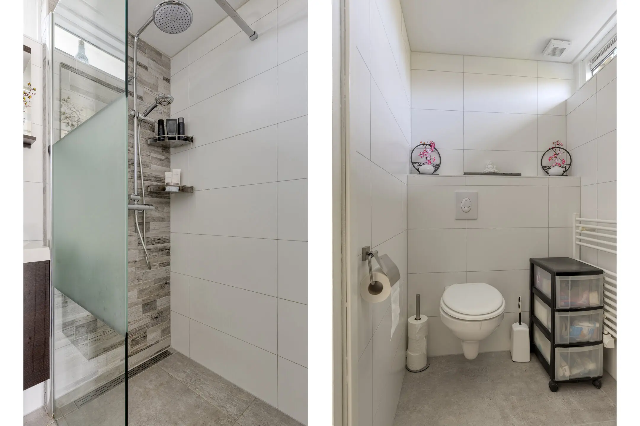 Via de trapopgang bereikt u de eerste verdieping, waar drie slaapkamers zijn gesitueerd van respectievelijk zes, negen en vijftien vierkante meter. Alle kamers zijn voorzien van een nette laminaatvloer. De badkamer op deze verdieping is in 2017 vernieuwd en volledig betegeld. Deze beschikt over een douche, een wastafelmeubel en een tweede toilet.