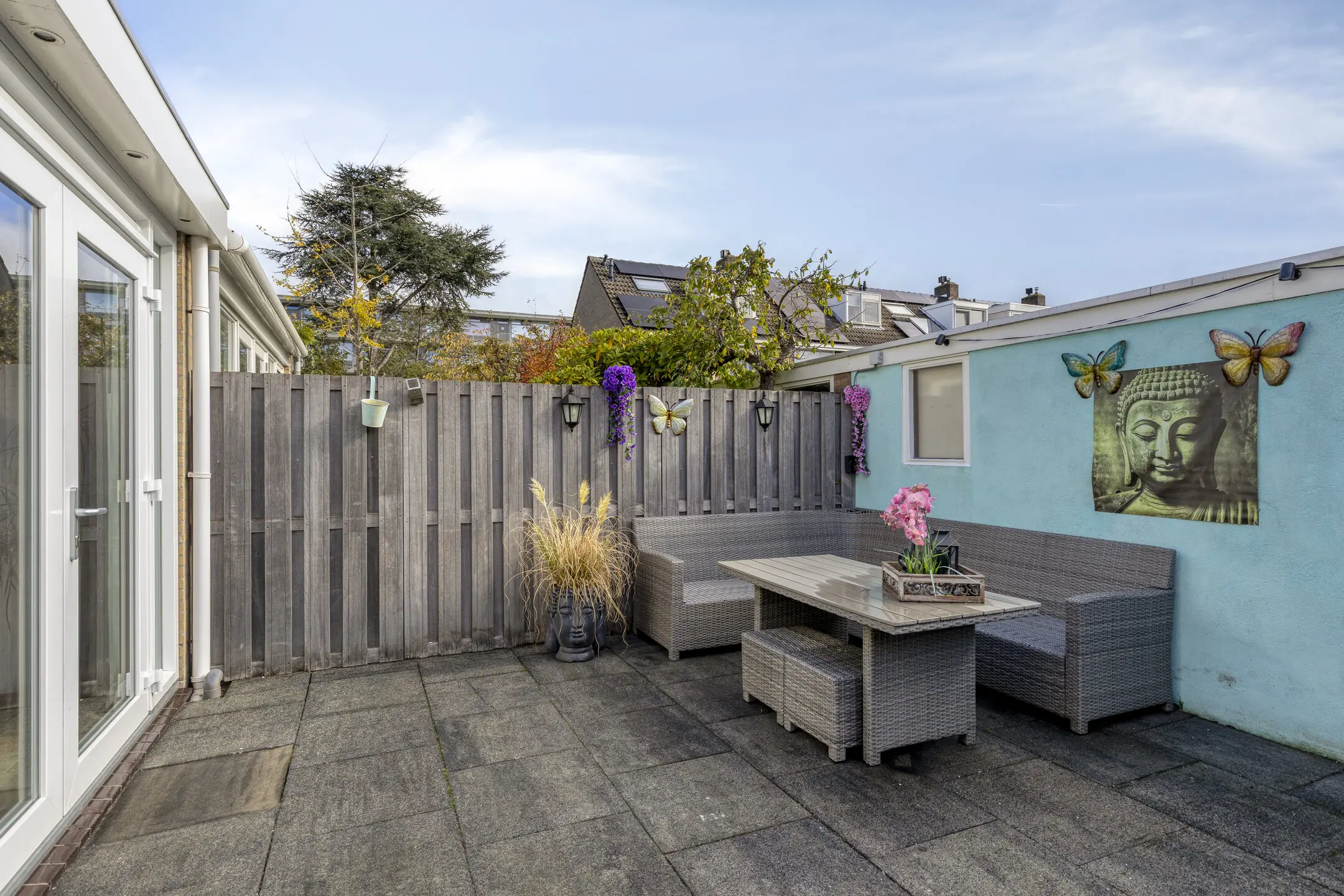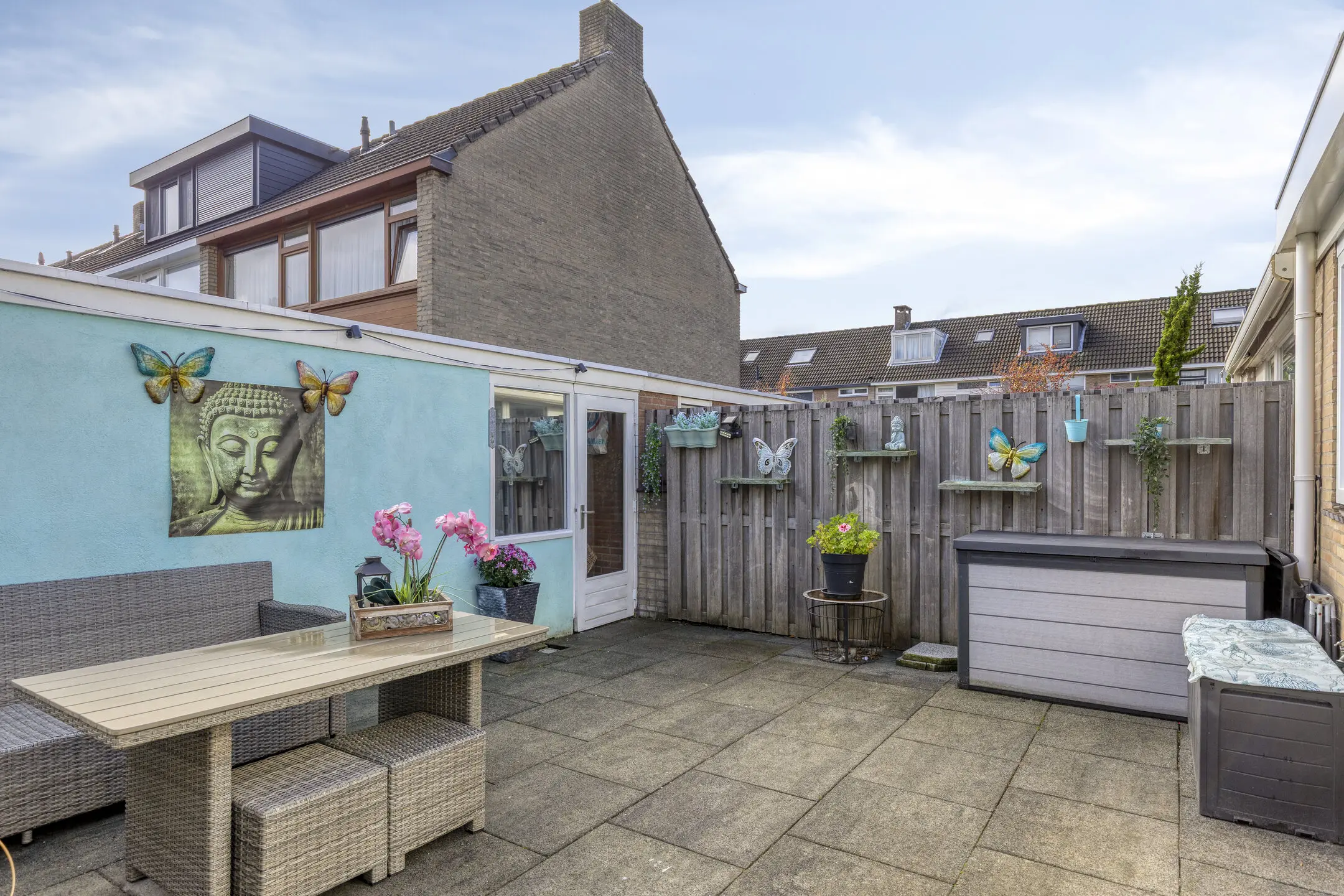 De achtertuin is gelegen op het zuidoosten, waardoor u vrijwel de hele dag van de zon kunt genieten. De tuin is verzorgd aangelegd en beschikt over een ruime berging over de volledige breedte van het perceel, met daarin tevens een praktische achterom.