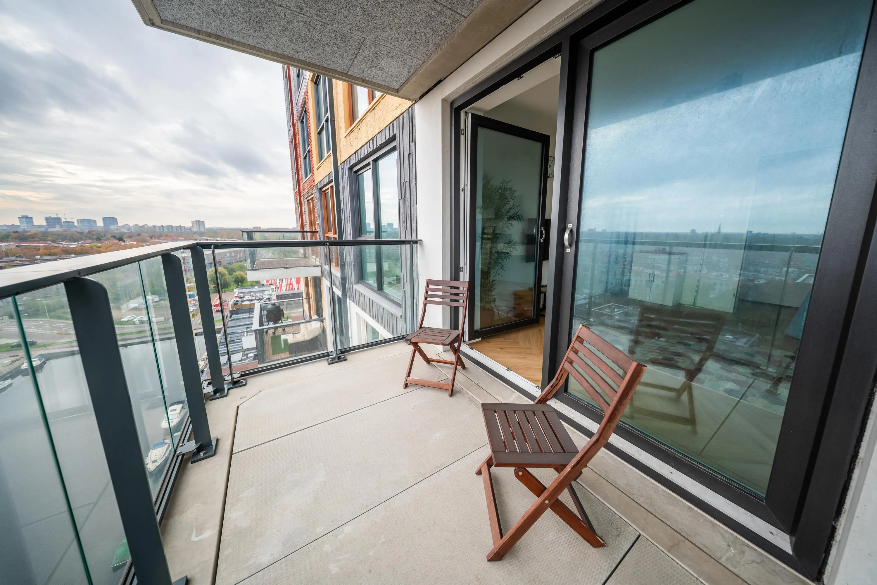 - Ruim en zonnig balkon met uitzicht op de toekomstige haven