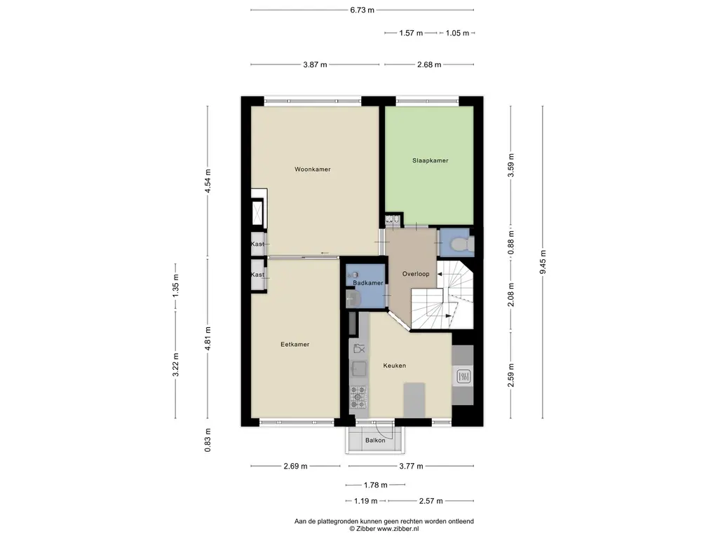 Naast de woonkamer ligt de eerste slaapkamer van ruim negen vierkante meter, praktisch en ruim van opzet. Op de overloop bevinden zich verder een separaat toilet, de badkamer met inloopdouche en wastafel, en de luxe keuken. De keuken is modern ingericht en uitgerust met een vijfpits gaskookplaat, afzuigkap, vaatwasser, koelkast en vriezer. Vanuit de keuken is bovendien toegang tot het balkon. De gehele verdieping is voorzien van een fraaie laminaatvloer die de ruimtes een warme uitstraling geeft.