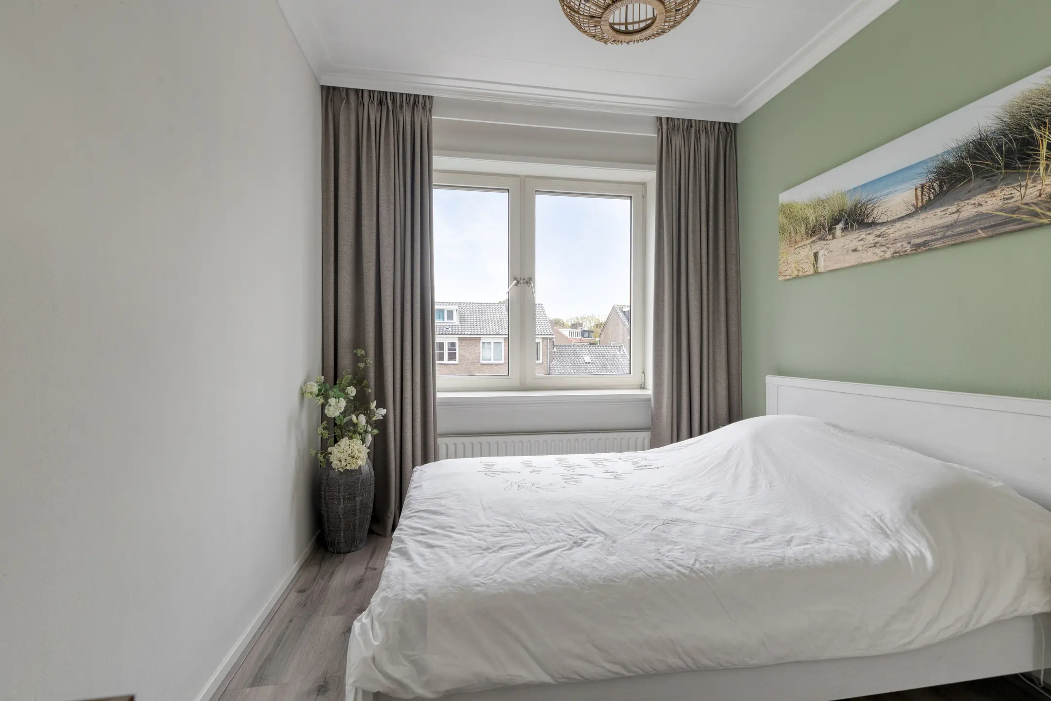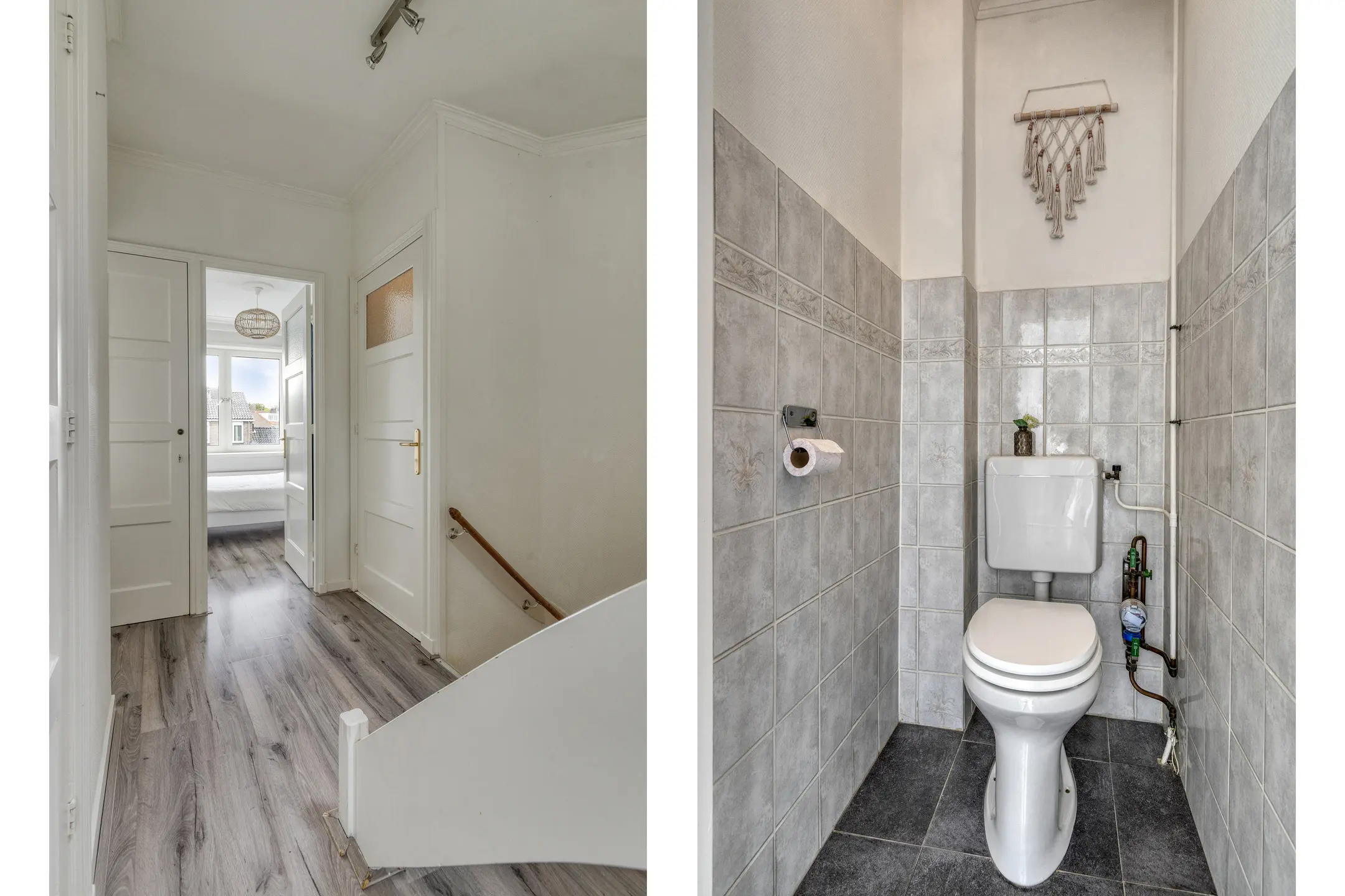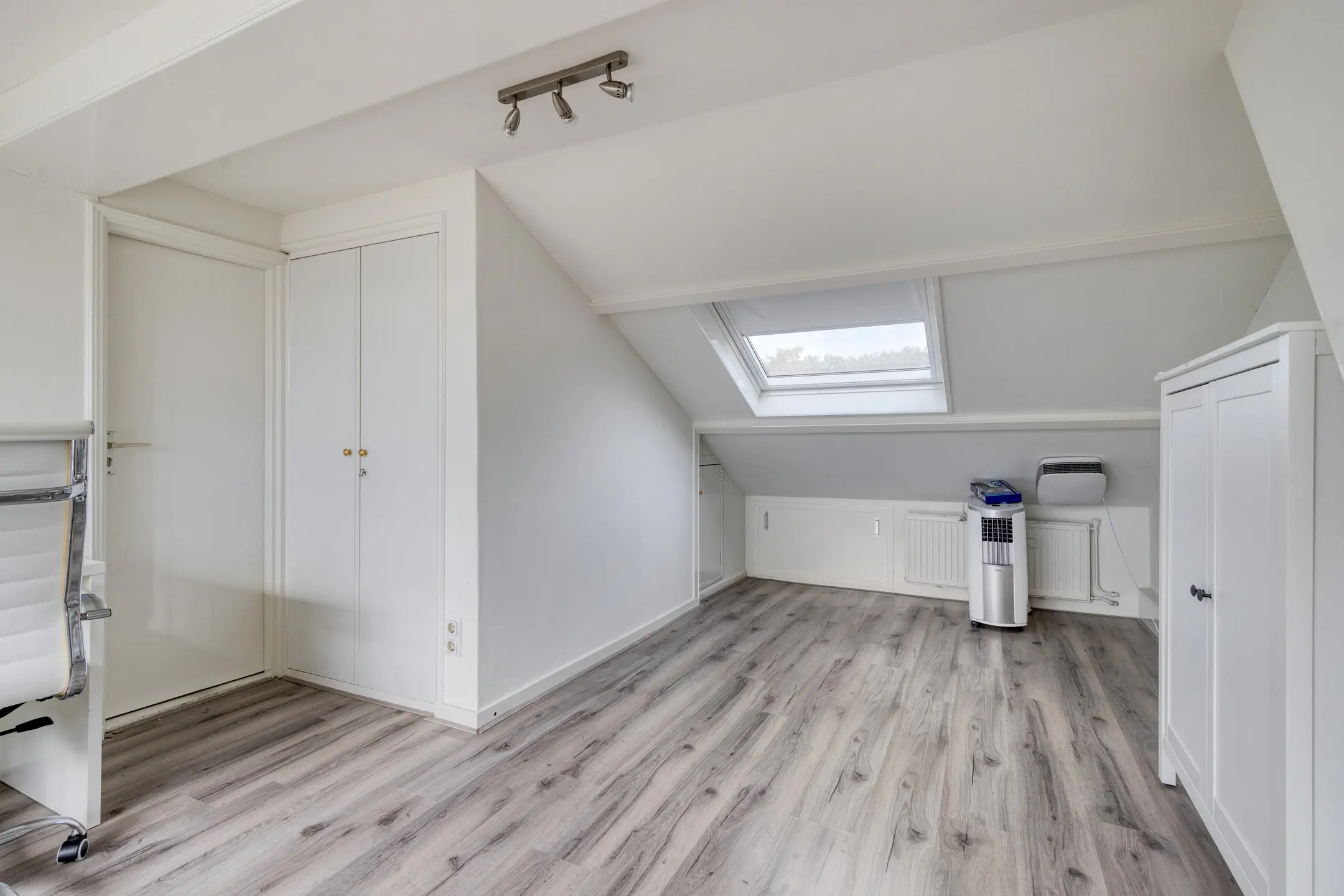 De trapopgang loopt door naar de tweede verdieping. Hier bevindt zich een ruime overloop met de opstelplaats voor de wasmachine en droger en veel praktische kastruimte. Vanuit de overloop is de tweede slaapkamer bereikbaar. Deze kamer, met een oppervlakte van veertien vierkante meter, is voorzien van een dakkapel waardoor de ruimte licht en ruimtelijk aanvoelt. De gehele bovenverdieping is in 2024 opnieuw geisoleerd.