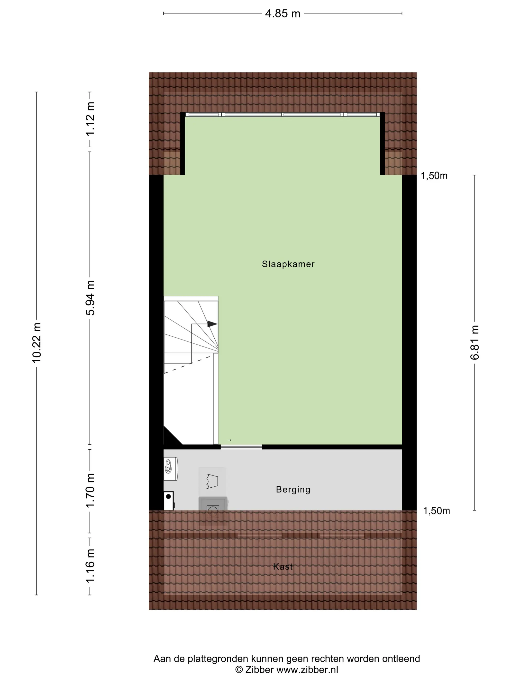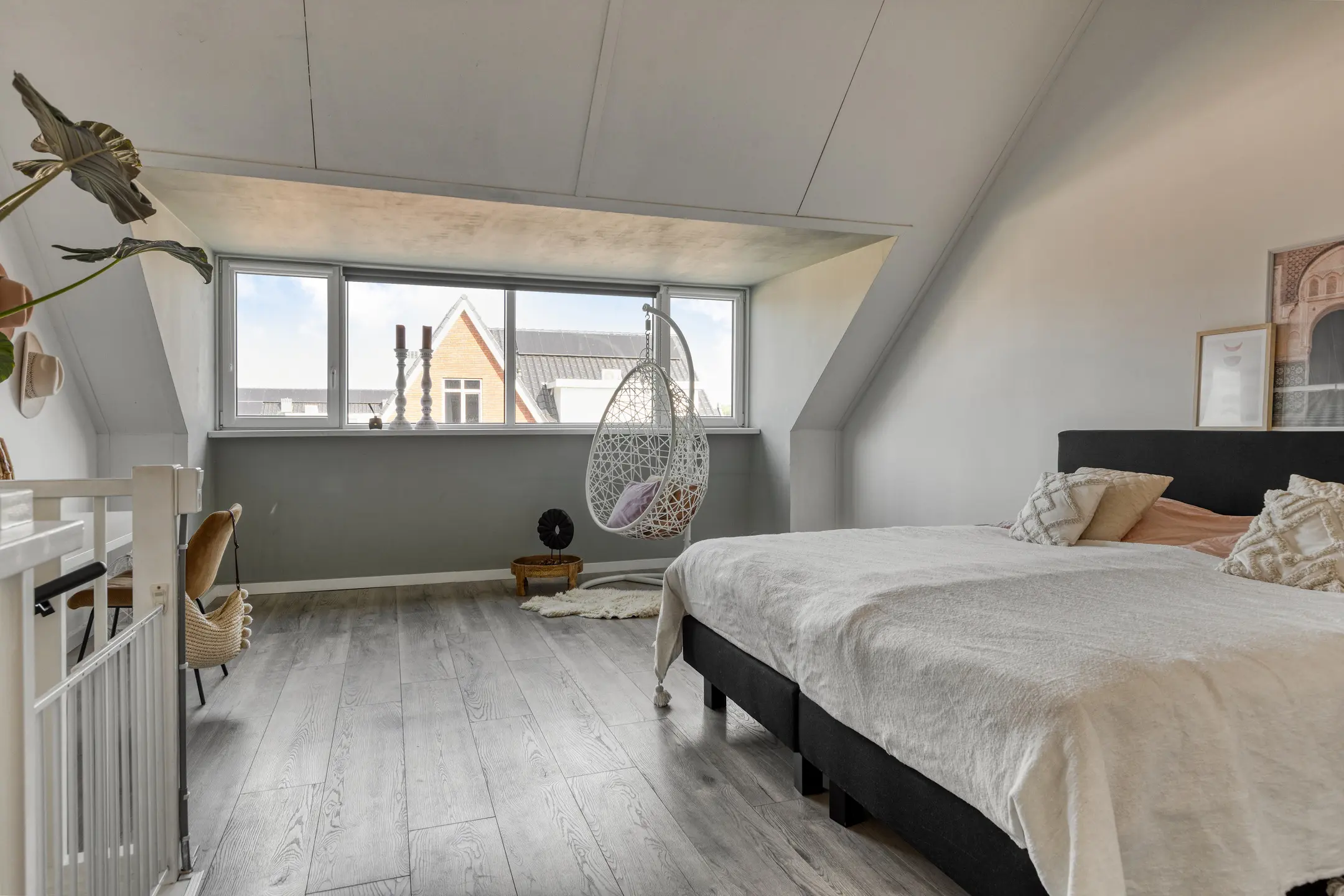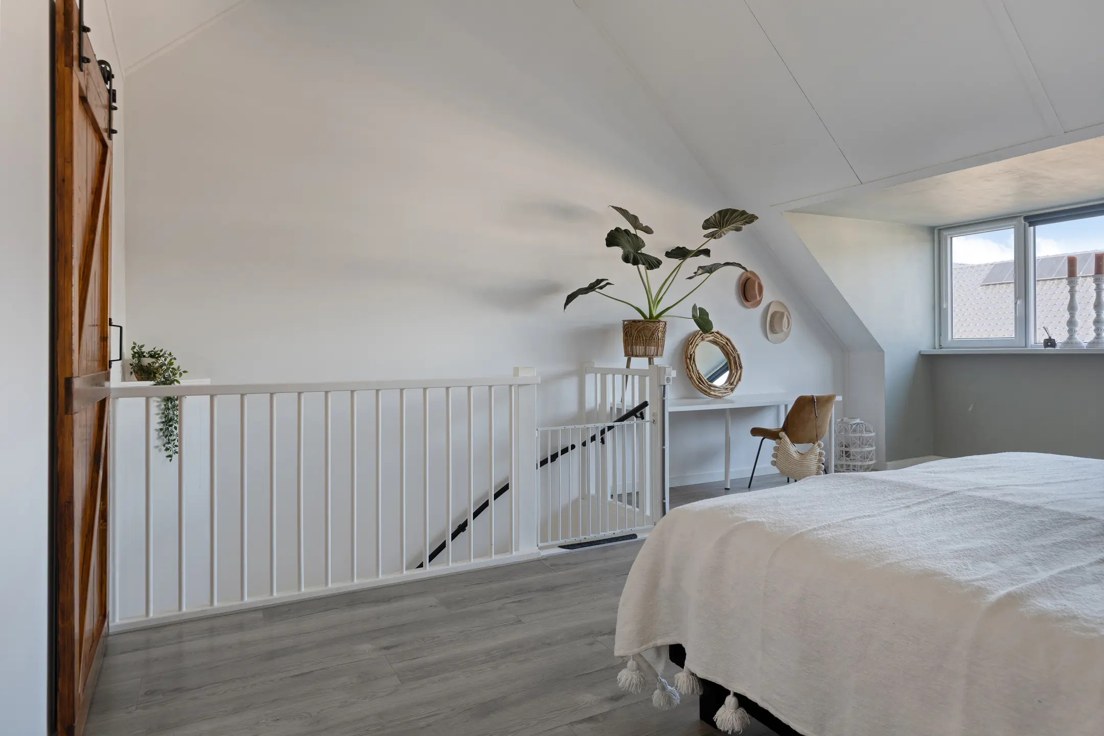 De tweede verdieping is een ware verrassing. Hier bevindt zich een zeer ruime slaapkamer van maar liefst 28 vierkante meter, dankzij een royale dakkapel over de volle breedte van de woning. Deze verdieping beschikt bovendien over een praktische inloopkast en biedt plaats aan de wasmachine, droger en de cv-ketel.