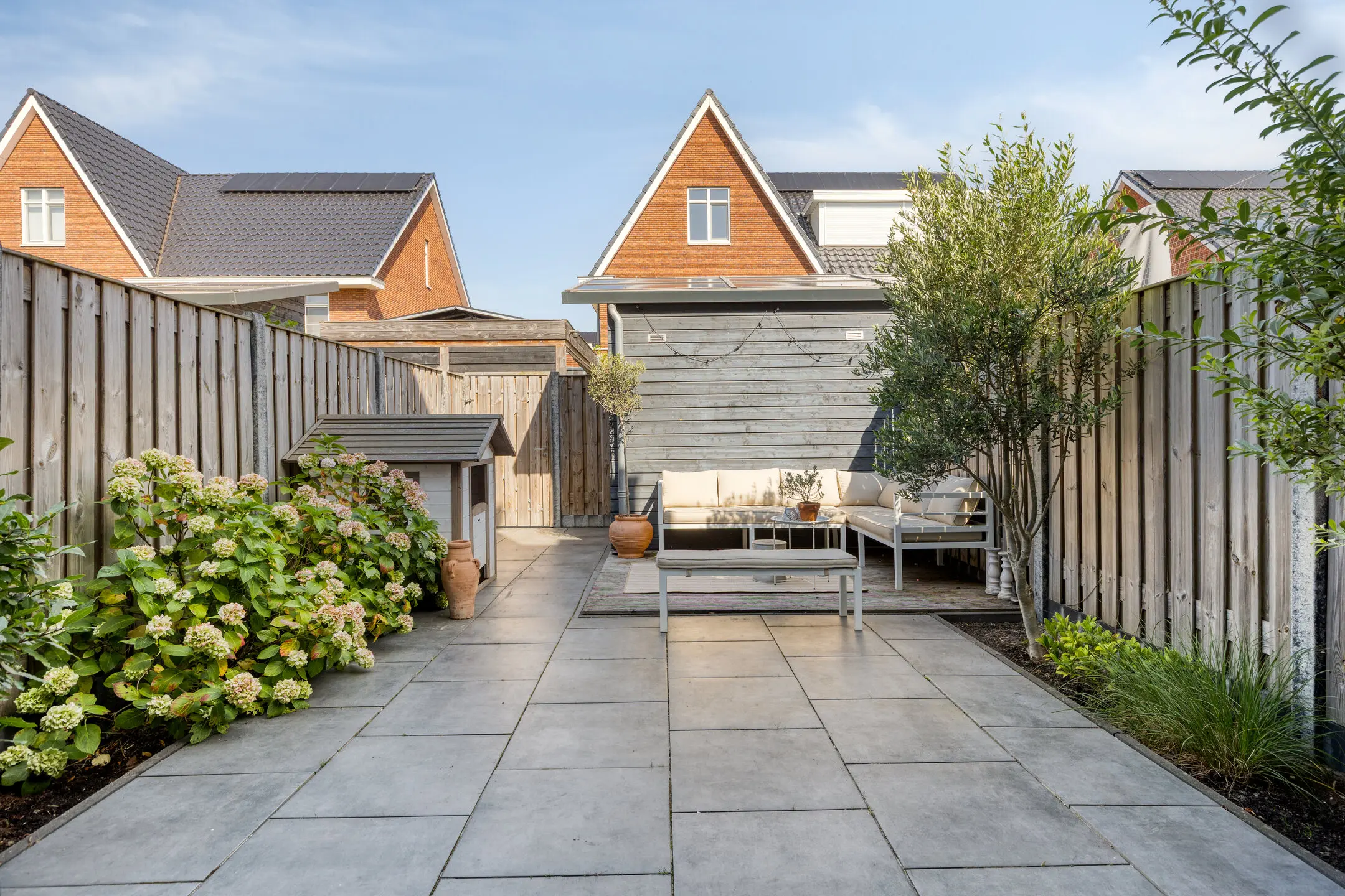 De achtertuin is gelegen op het noordwesten, waardoor u in de zomer tot in de avond van de zon kunt genieten. Achterin de tuin bevinden zich een separate berging en een achterom. Op het dak van de berging liggen vier zonnepanelen, die bijdragen aan de energiezuinigheid van de woning en zorgen voor het gunstige energielabel A. Dankzij de rustige ligging en de opzet van de wijk, met veel groen en speelgelegenheden, is dit bovendien een perfecte woonomgeving voor gezinnen met kinderen.